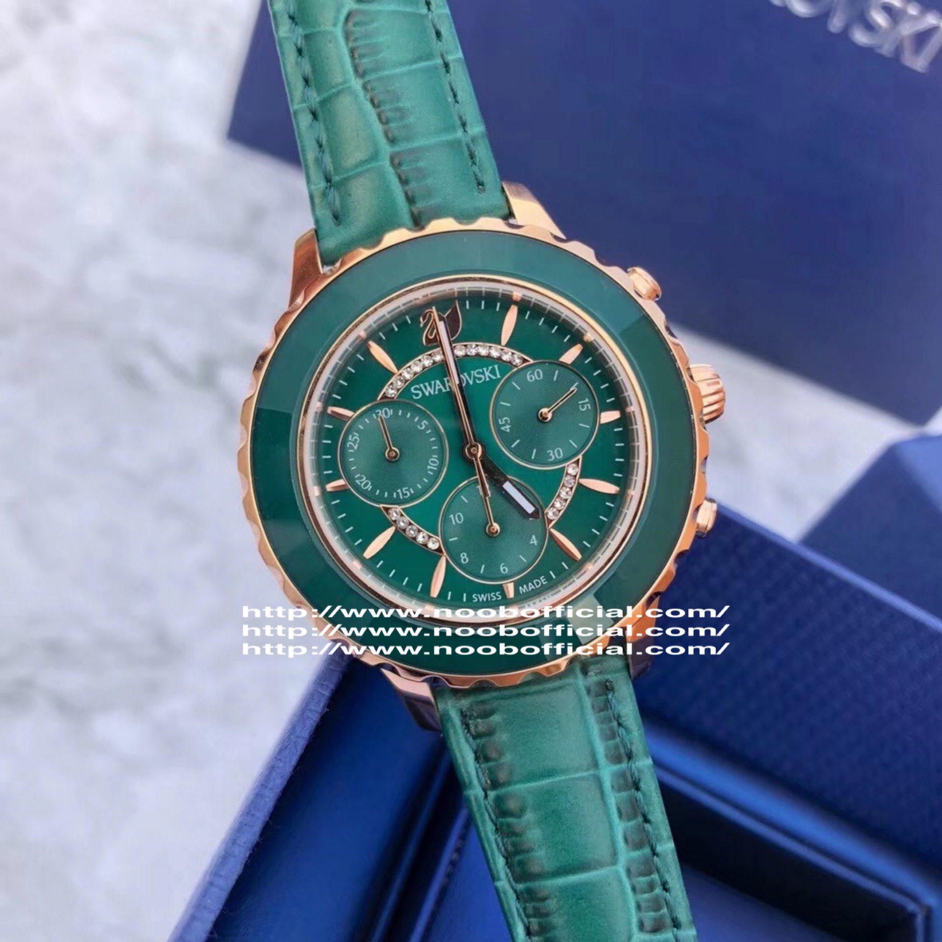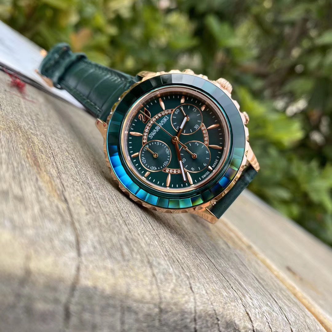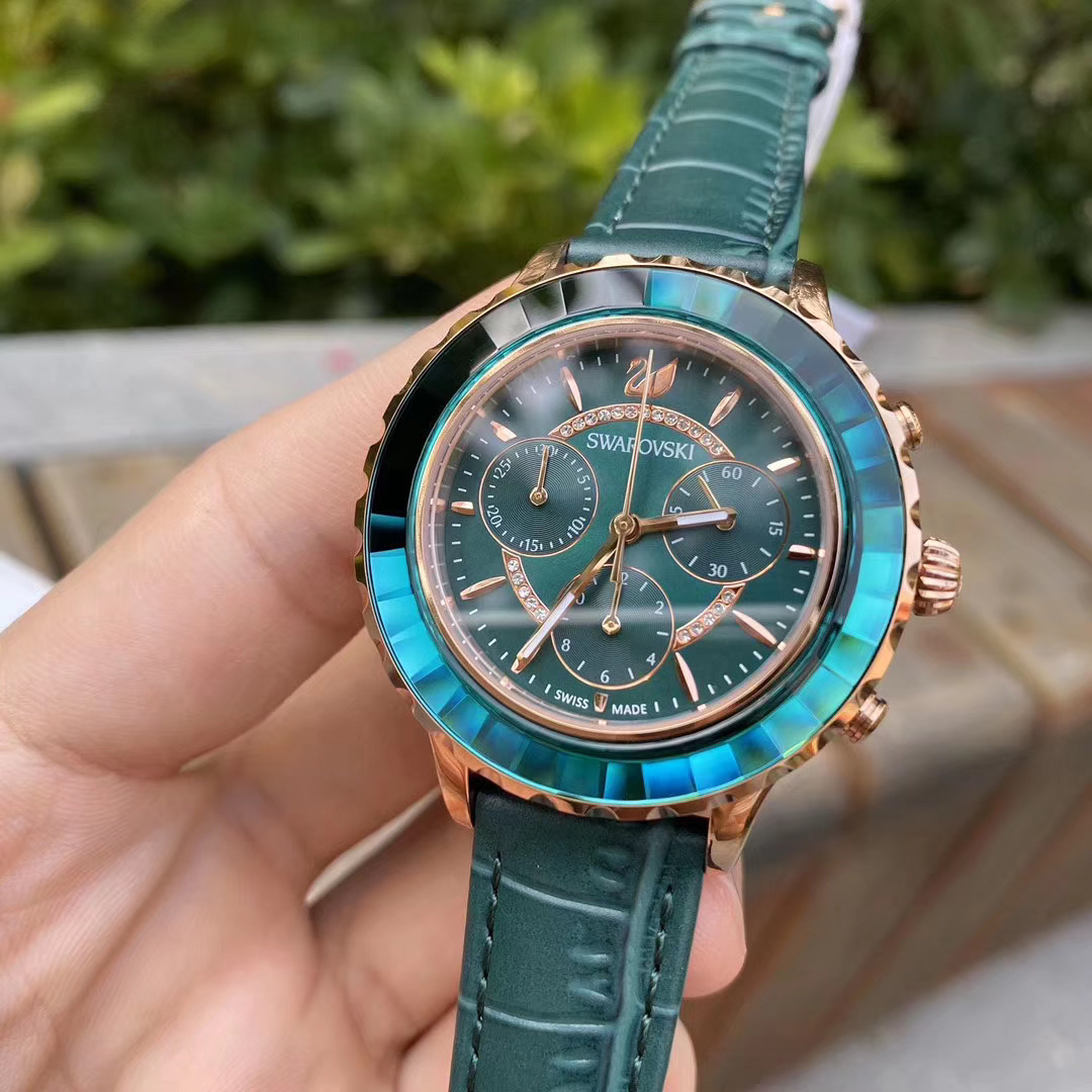 《下单备注颜色》支持专柜验货,原单货,SWAROVSKI【施华洛世奇】现货现货🔥Swarovski Octea的新作 绿水鬼水晶三眼 彰显了精准的制表技术及品牌的专业工艺 适合日常佩戴的设计,同时具有累计和间隔计时的秒表功能。玫瑰金色全钢表壳与切割Swarovski水晶表圈互相辉映 蓝宝石玻璃 瑞士5030D原装机芯 进口意大利牛皮 尺寸:39mm#c