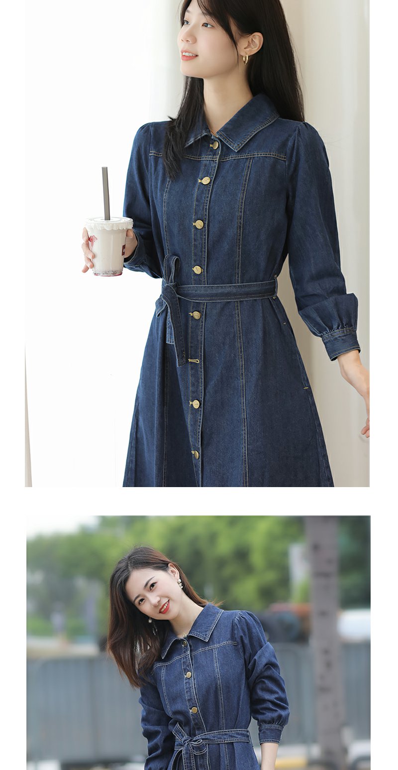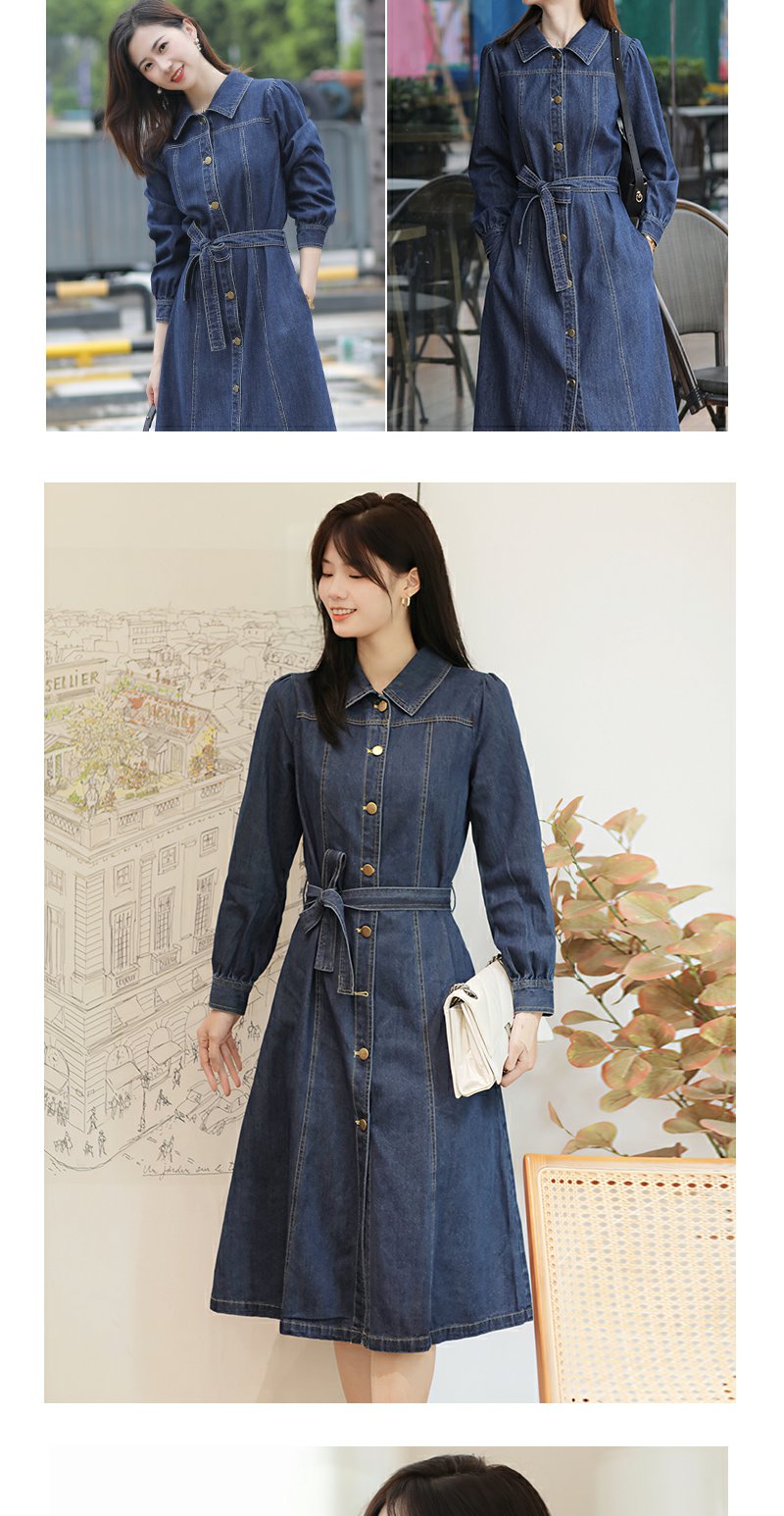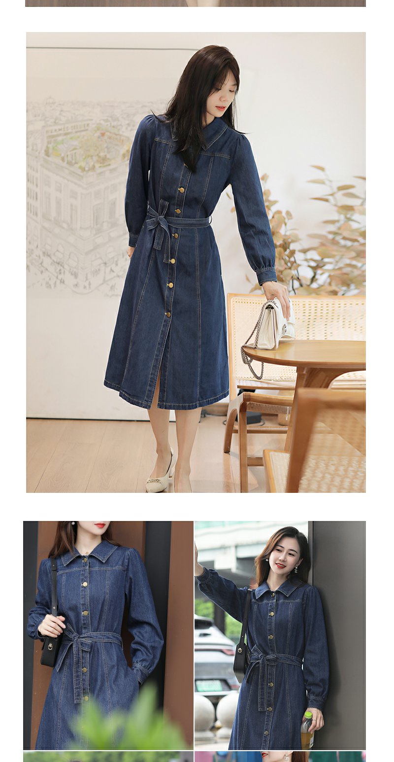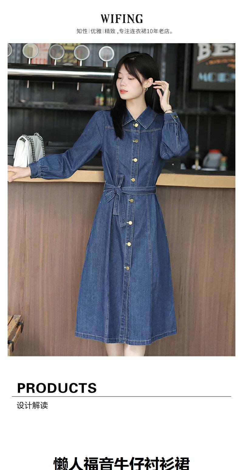 未风牛仔翻领连衣裙春季新款女装气质高腰今年流行裙子