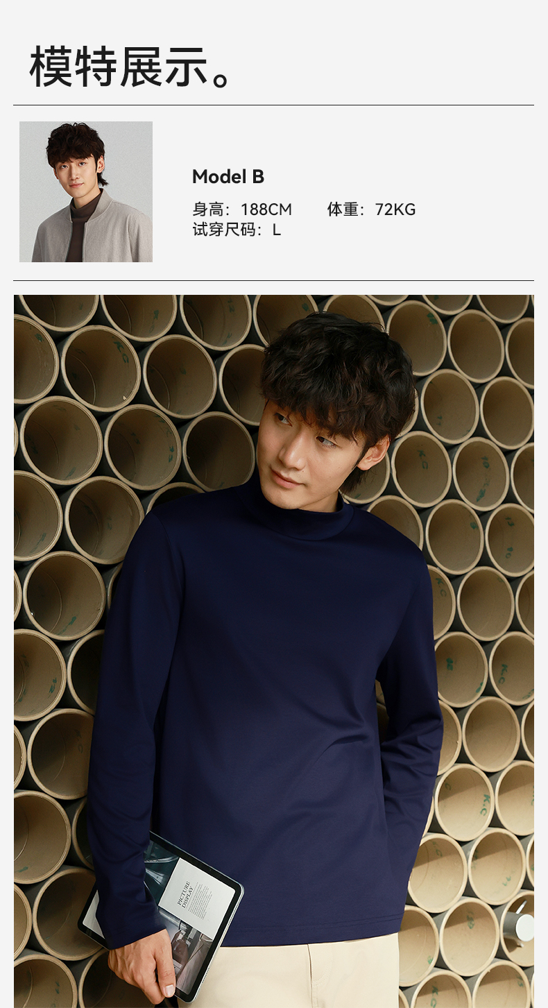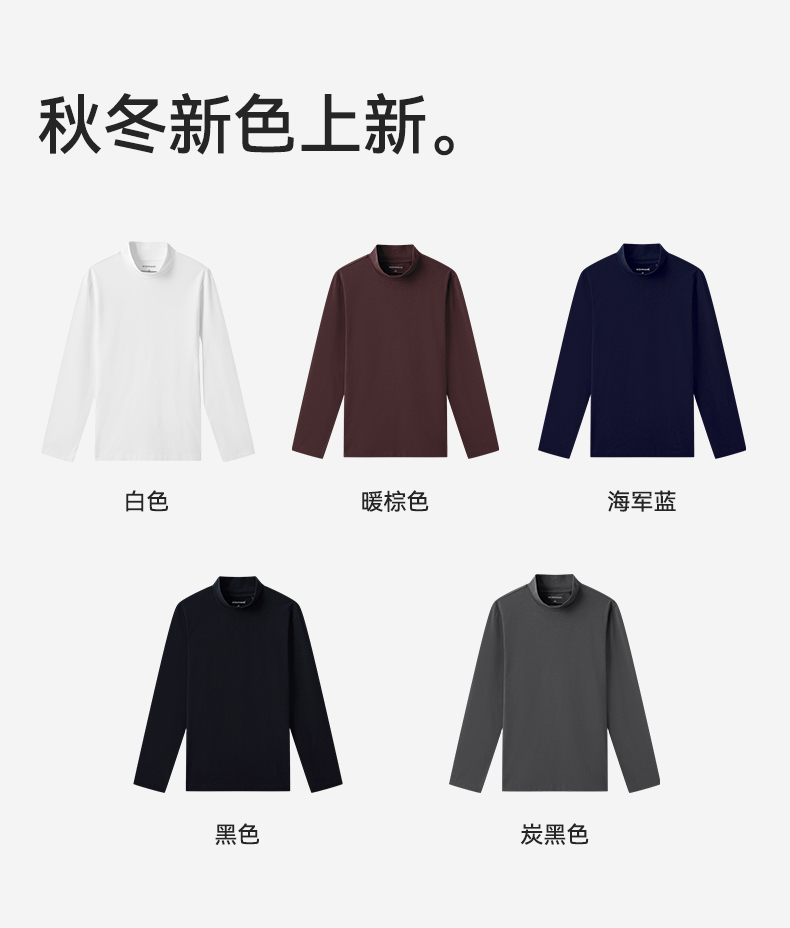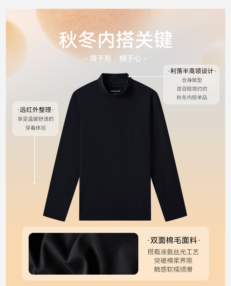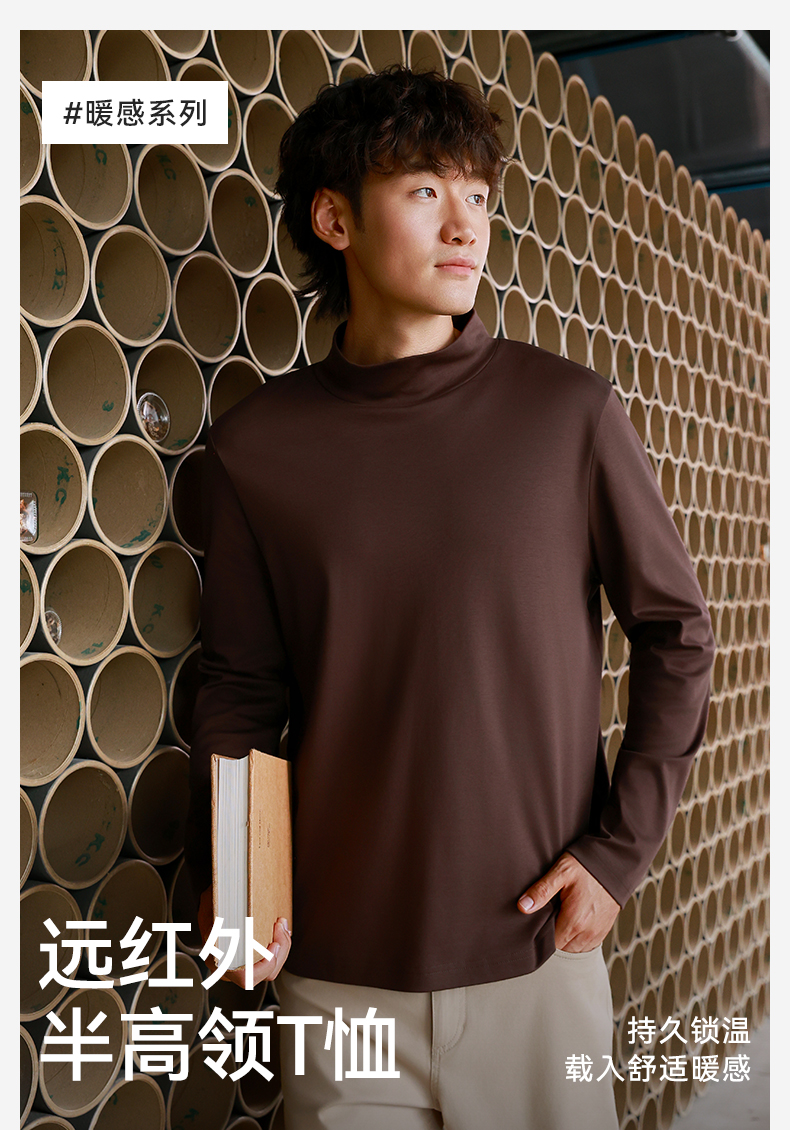 十如仕100%新疆长绒棉远红外保暖半高领长袖T恤-T16-02