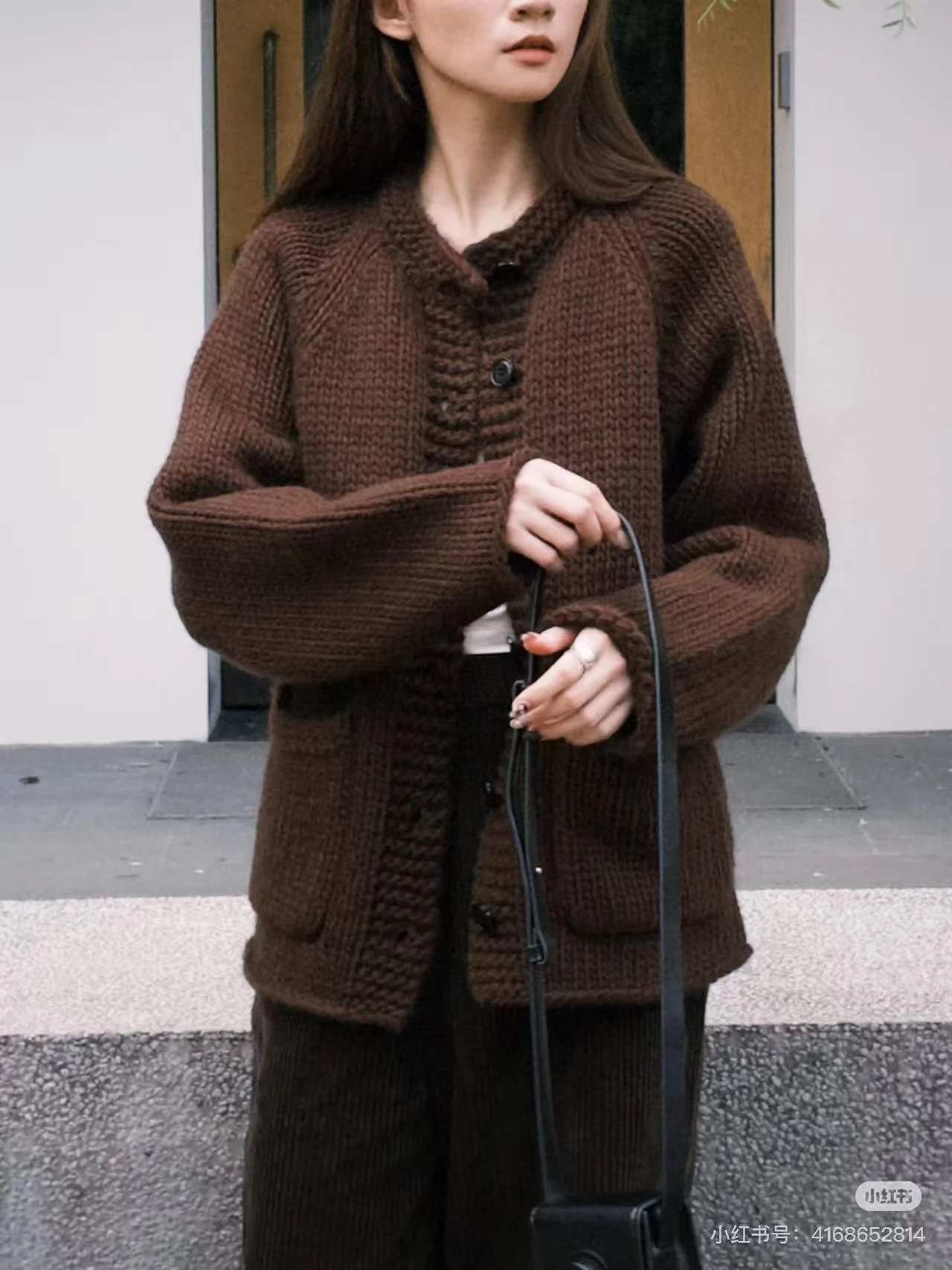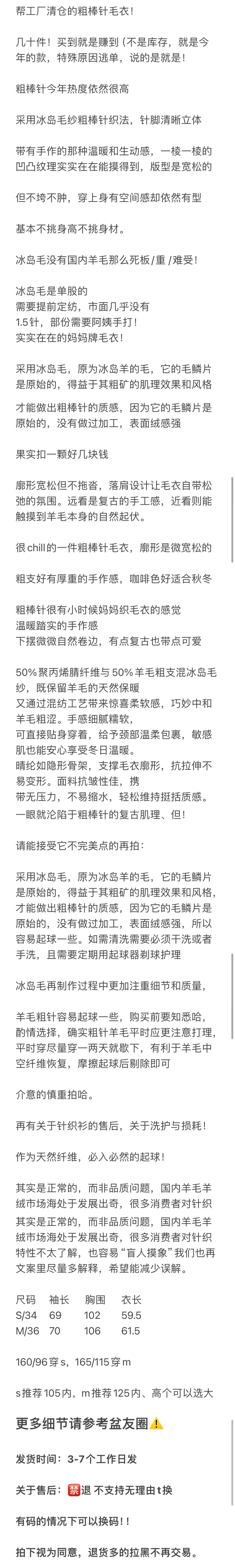 福利特价 粗棒针手工毛衣 不退换! 妈妈牌冰岛毛高克重毛衣外套