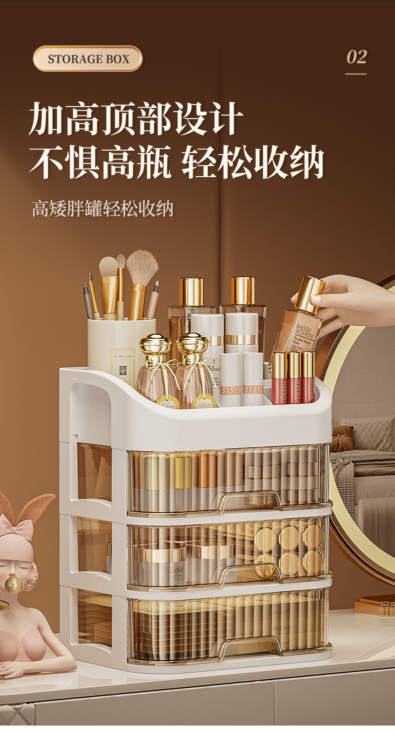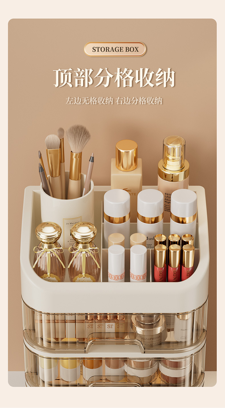 「ins级优雅!梳妆仪式感」化妆品收纳盒 桌面梳妆台化妆镜护肤品置物架口红整理箱桌上抽屉式 商品图4