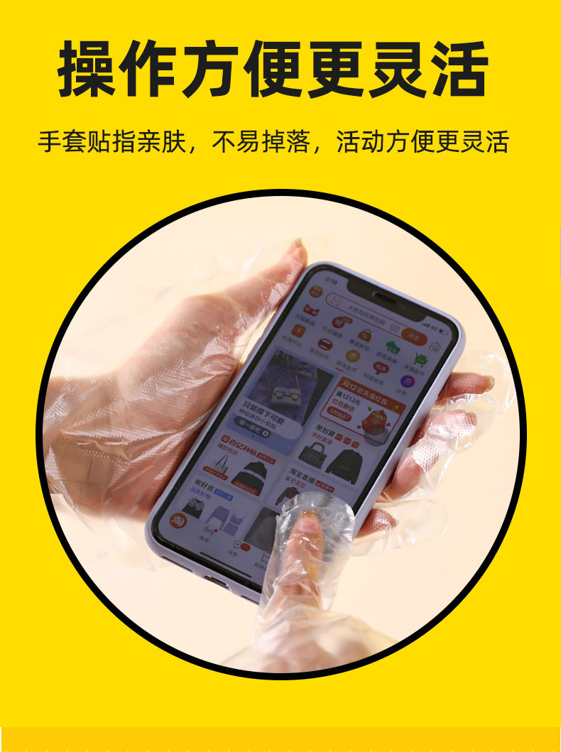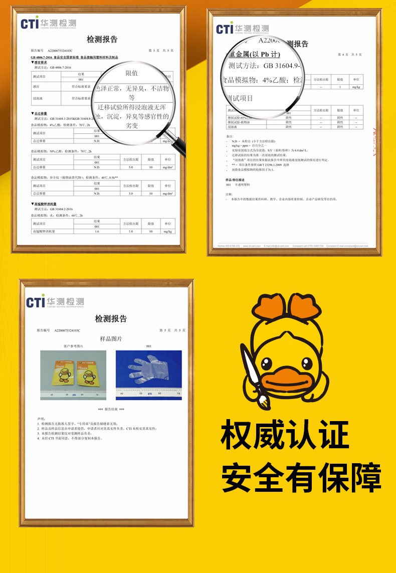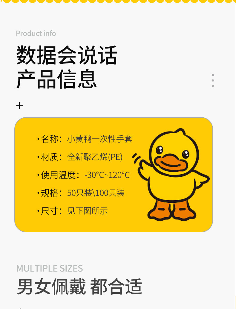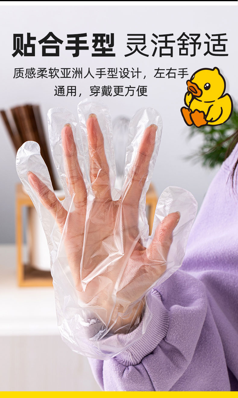 B.Duck小黄鸭一次性手套PE材质加厚防漏卫生手套透明薄膜家用夜宵野餐龙虾手套