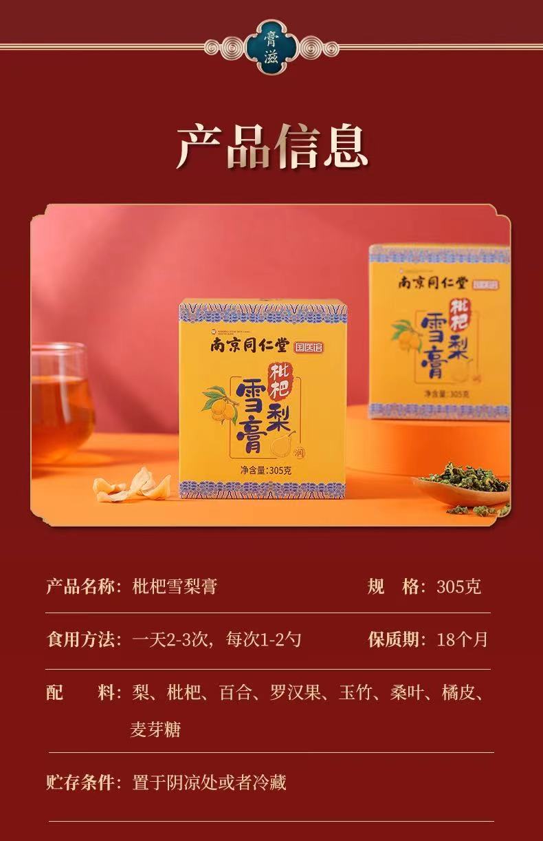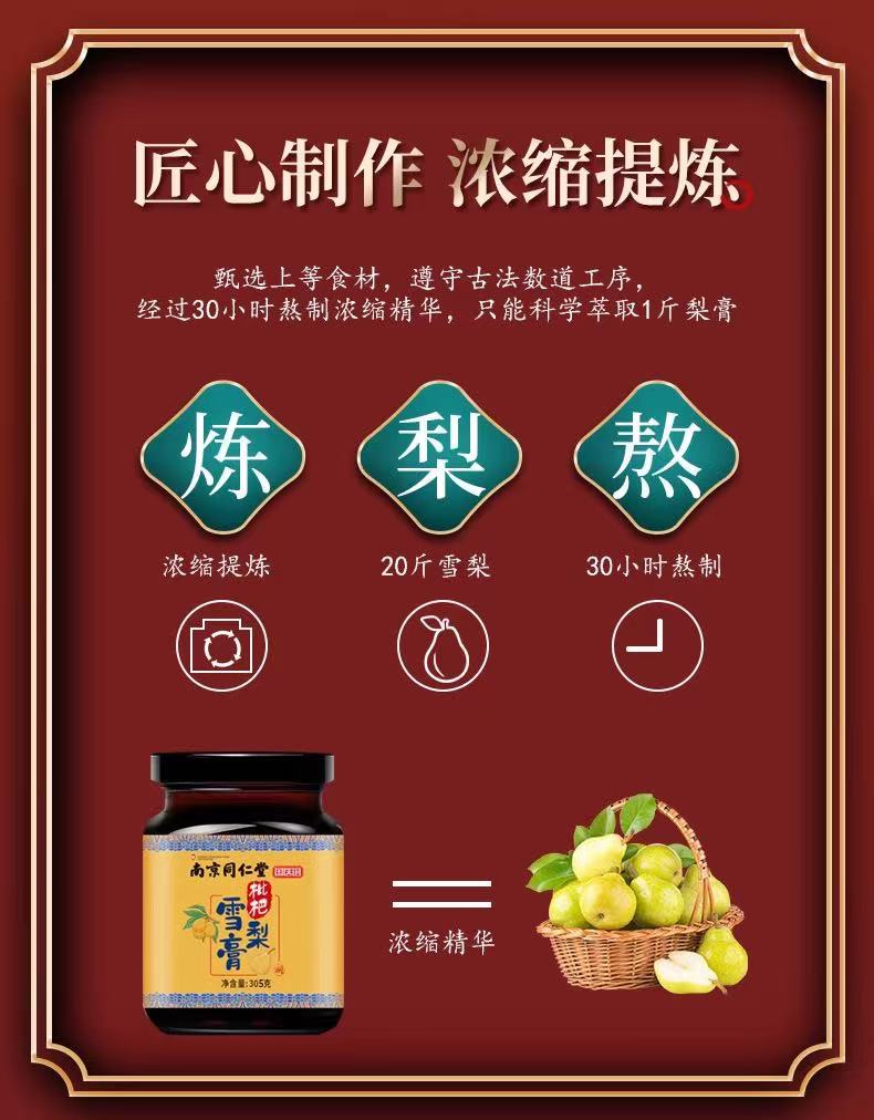 【两件立减20 买三送一】南京同仁堂枇杷秋梨膏砀山雪梨纯手工熬制古法清润儿童老人营养膏滋