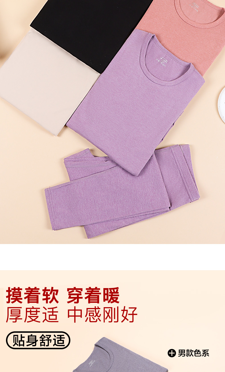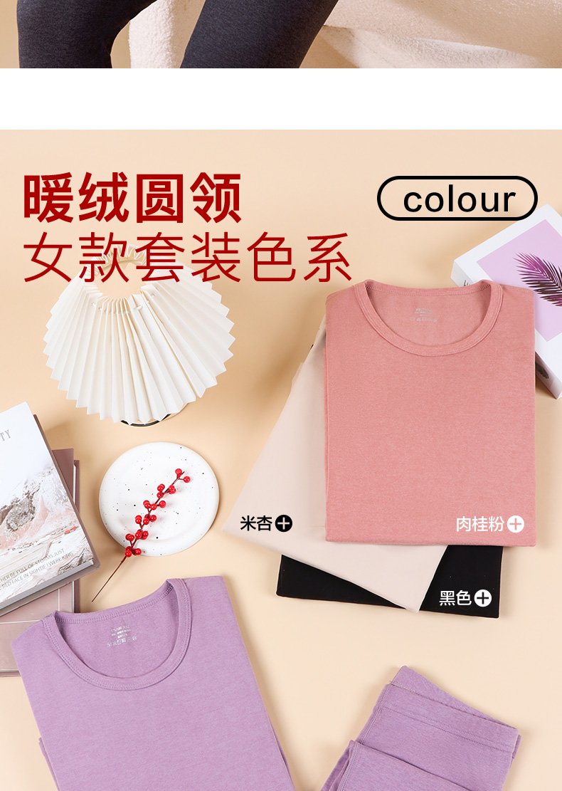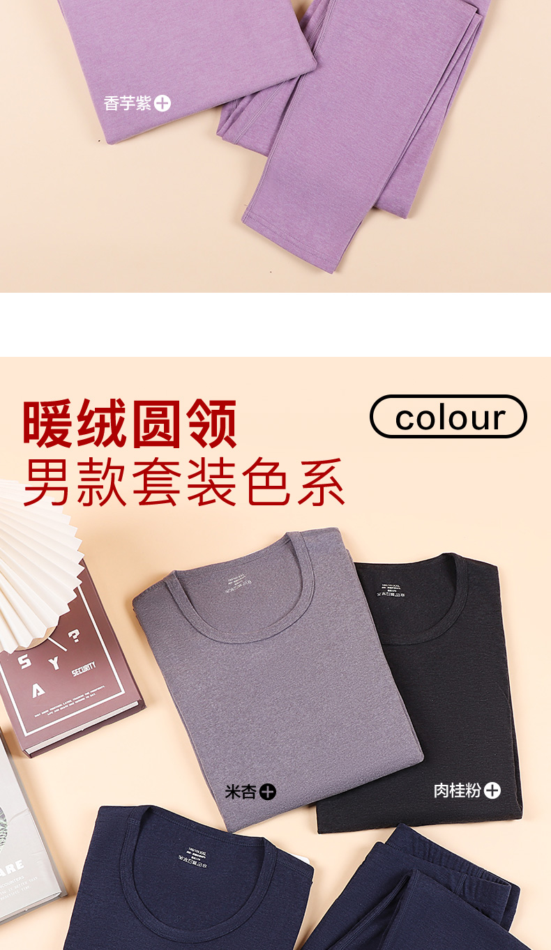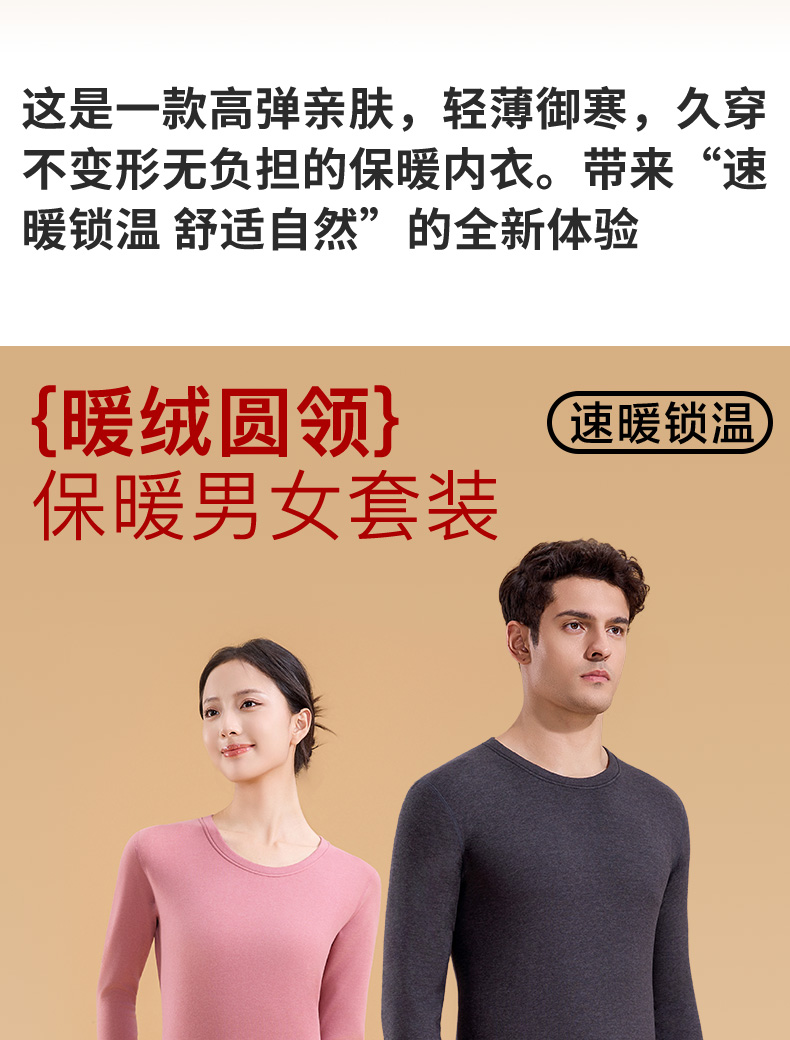 秋冬男女暖绒圆领秋衣秋裤套装打底双面磨毛保暖内衣冬款