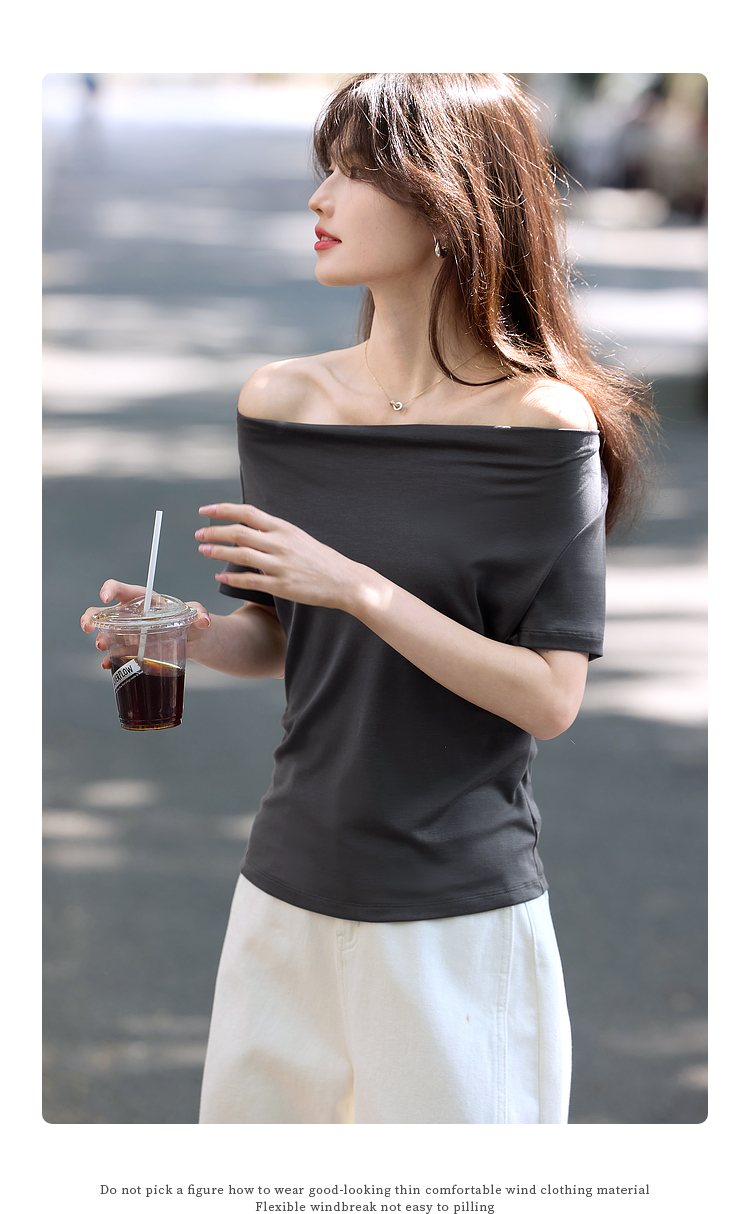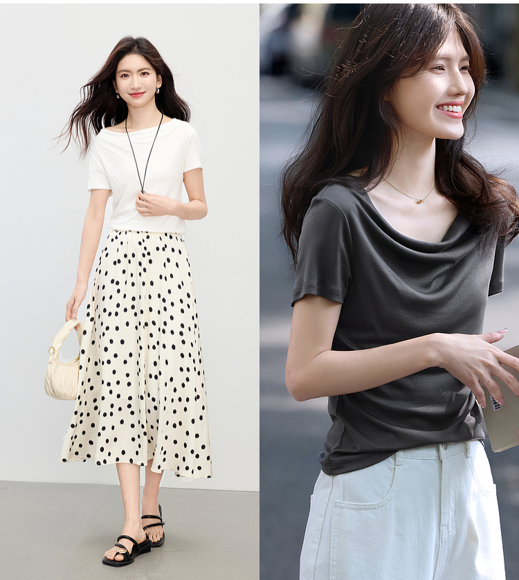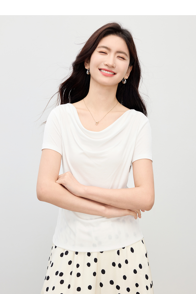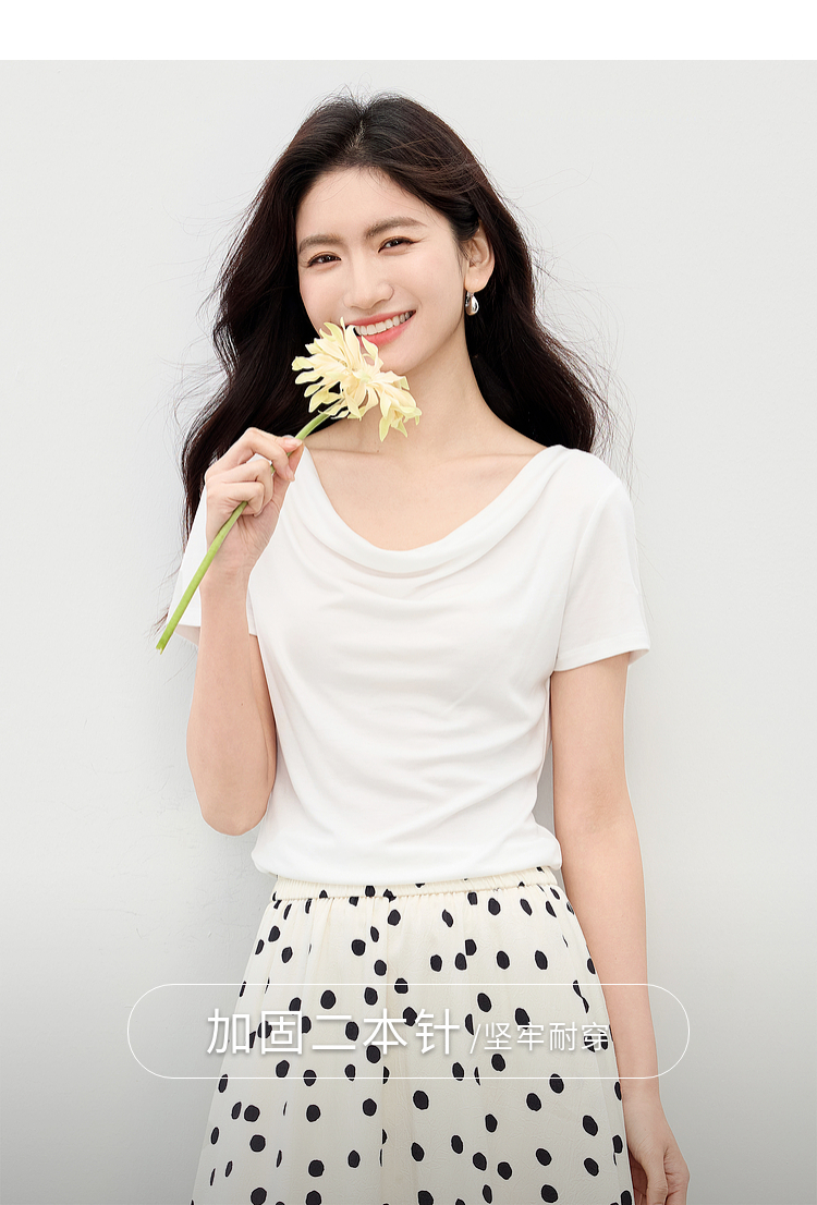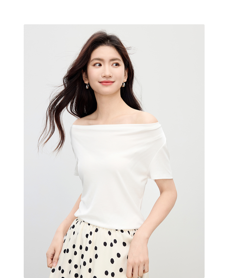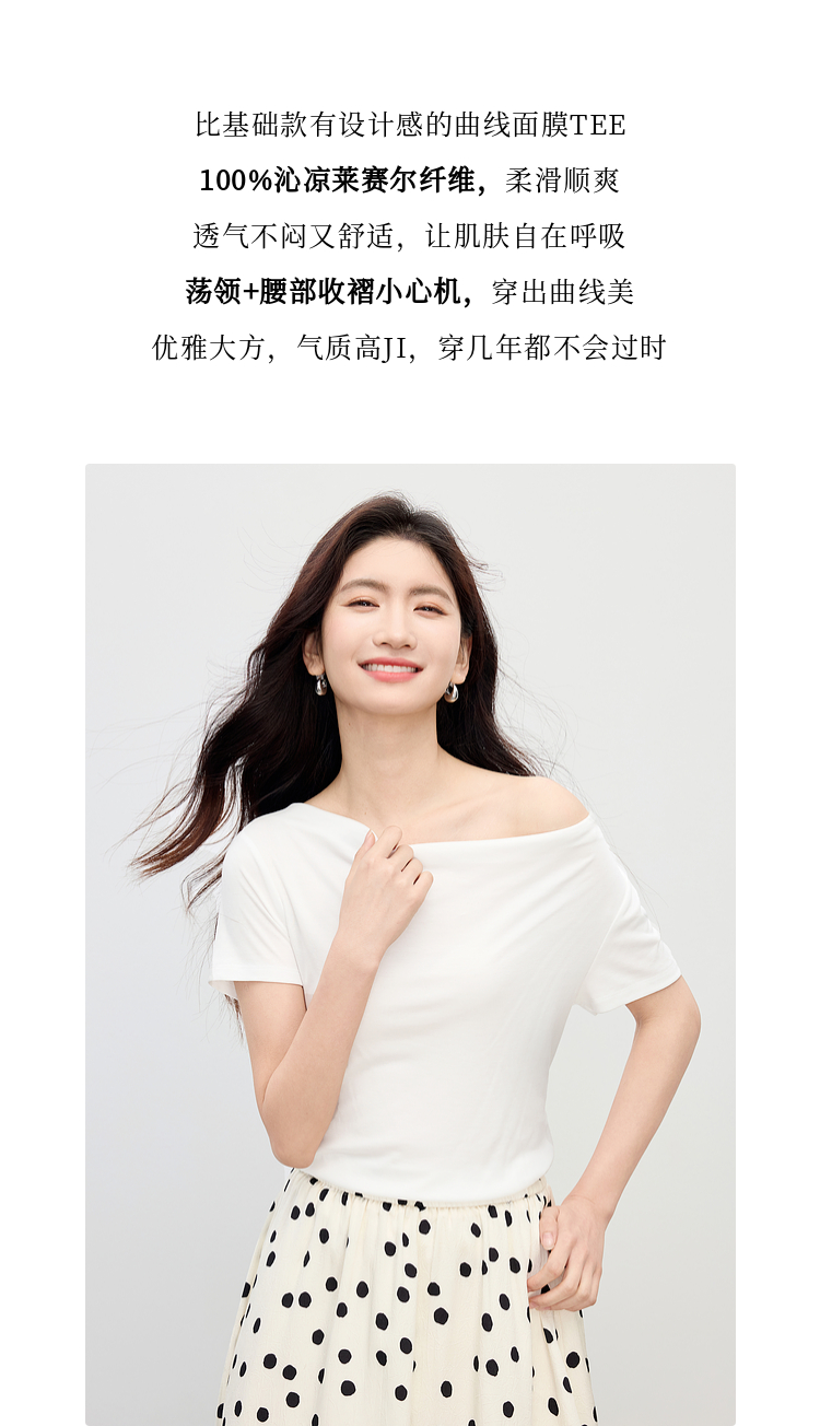 【夏日新品】熙世界一字荡领白色t恤女短袖2025年夏季新款气质莱赛尔天丝上衣