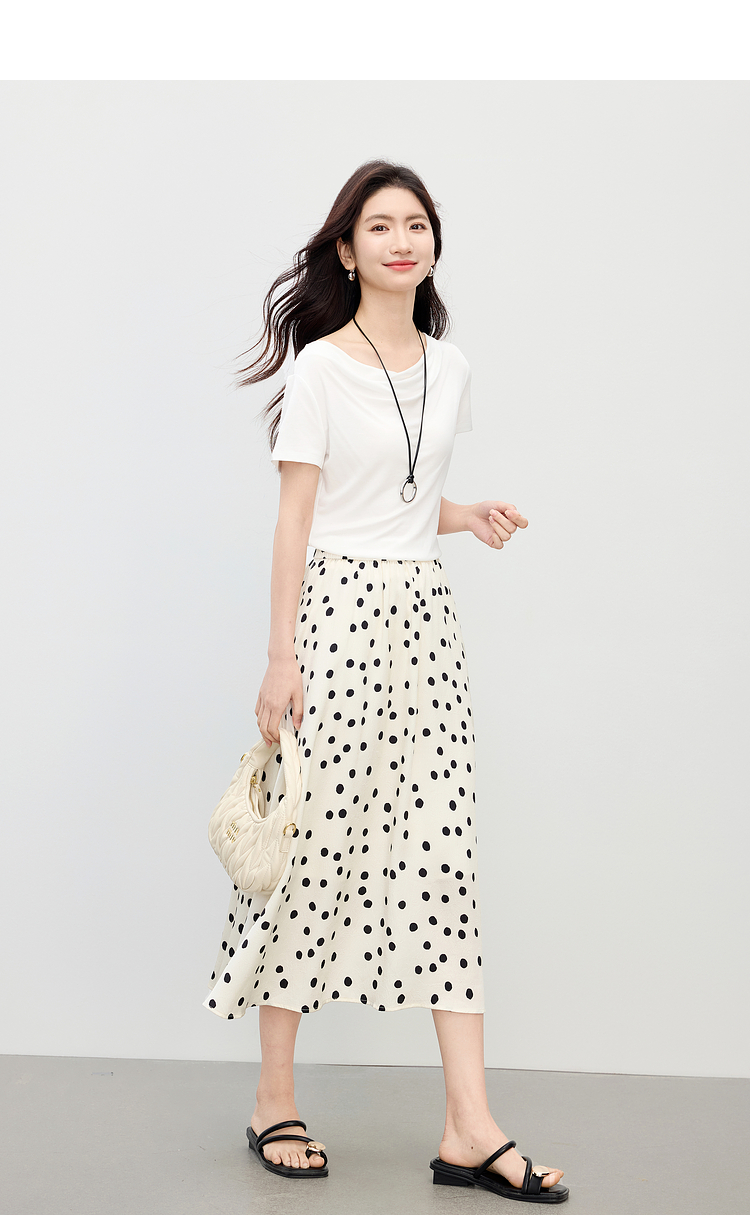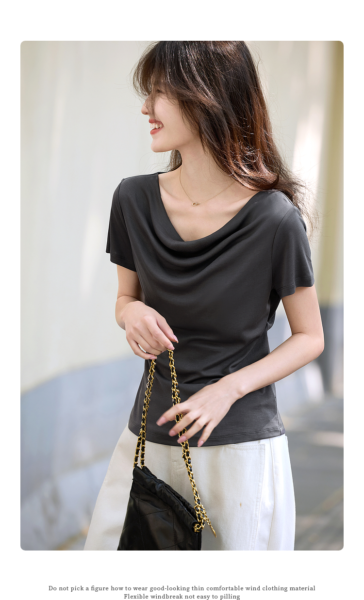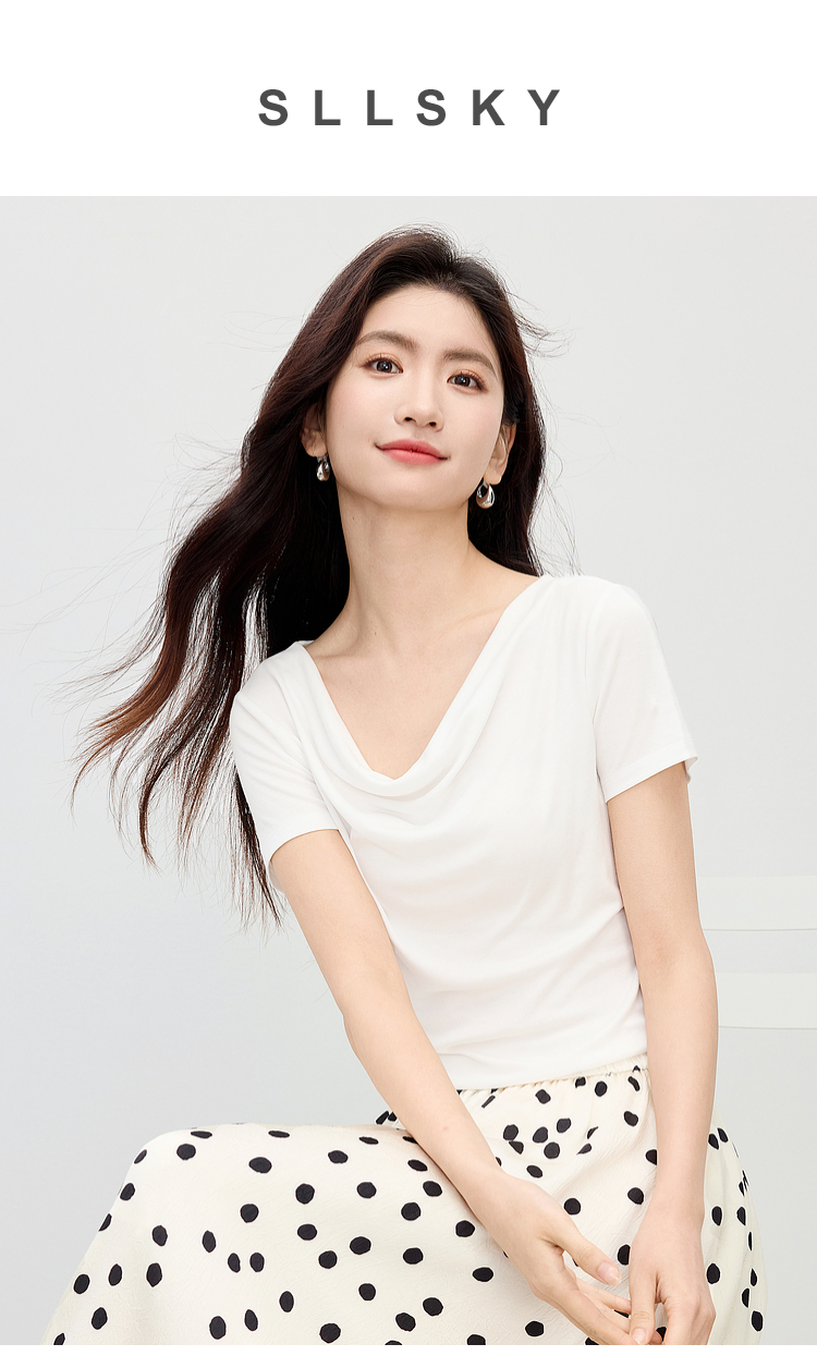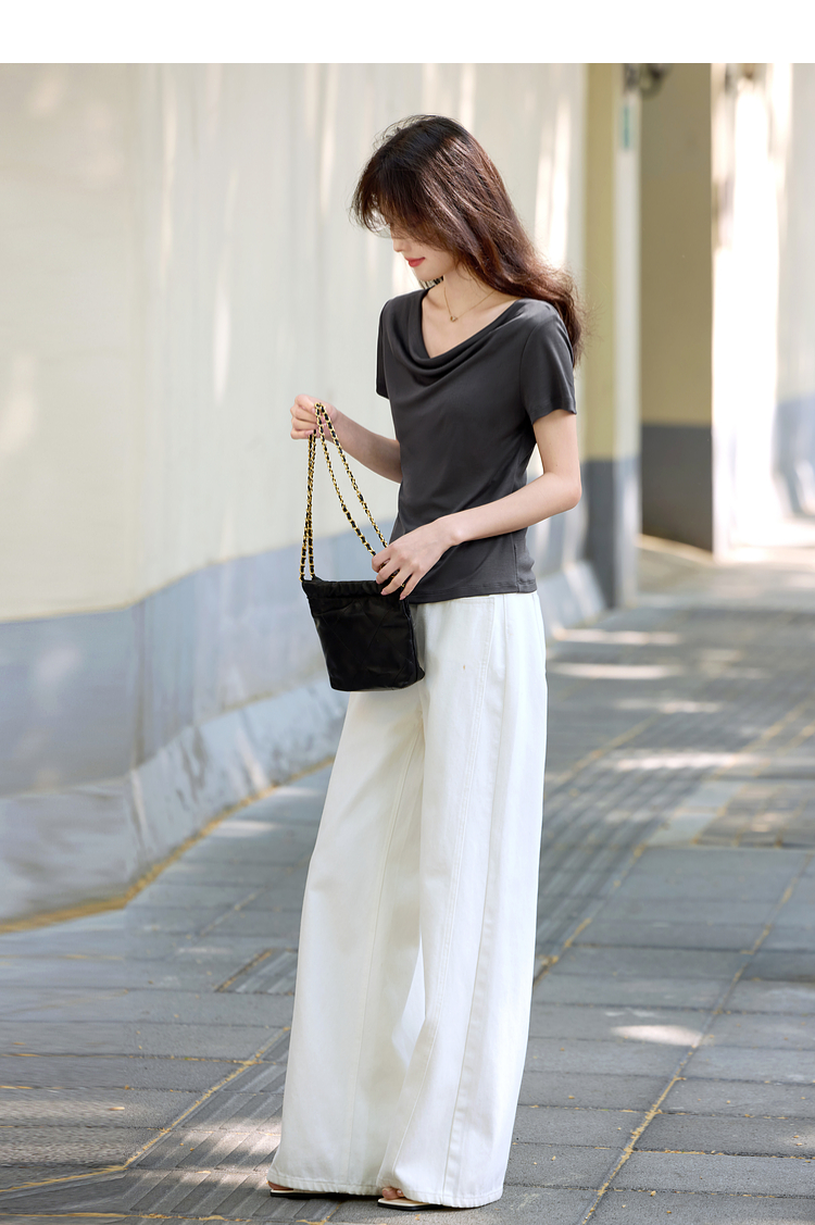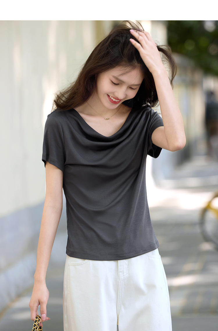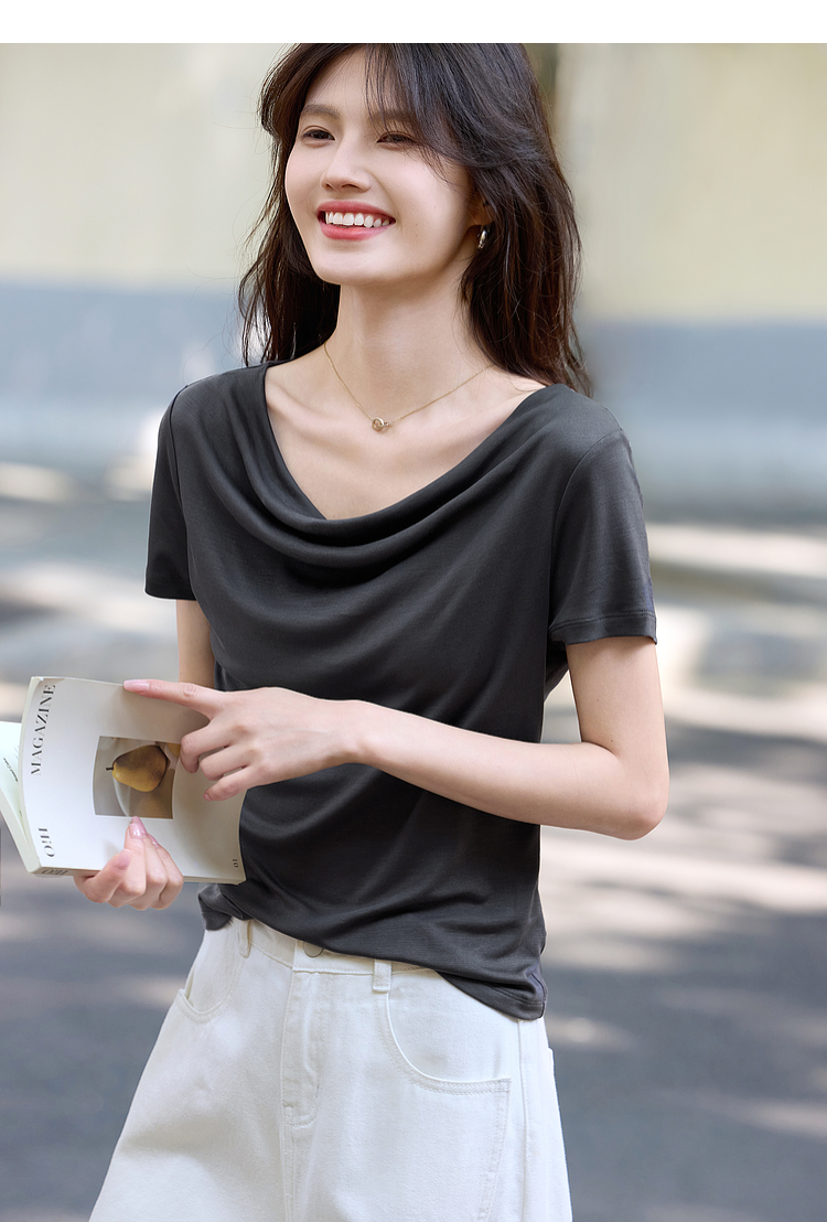 【夏日新品】熙世界一字荡领白色t恤女短袖2025年夏季新款气质莱赛尔天丝上衣