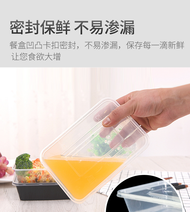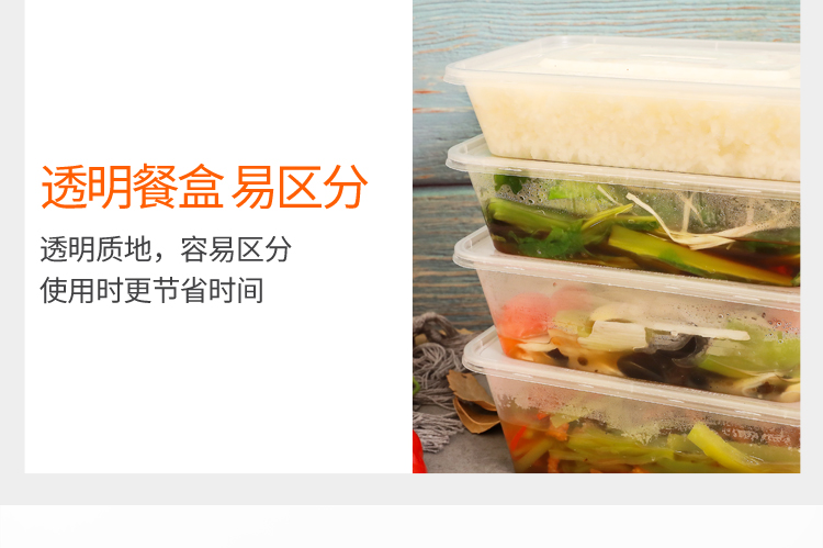 特美居 一次性饭盒长方形透明塑料快餐盒50只装1000ml带盖外卖打包盒水果盒子便当保鲜盒餐具 TMJ-654