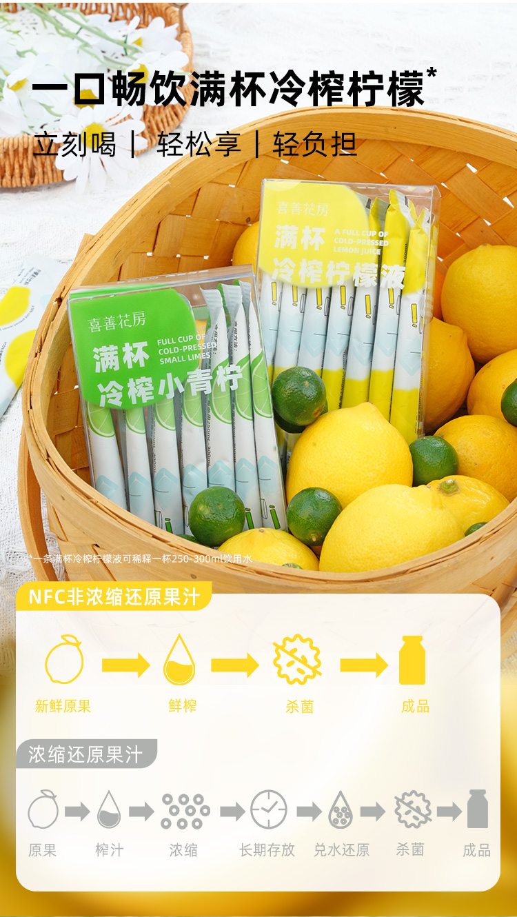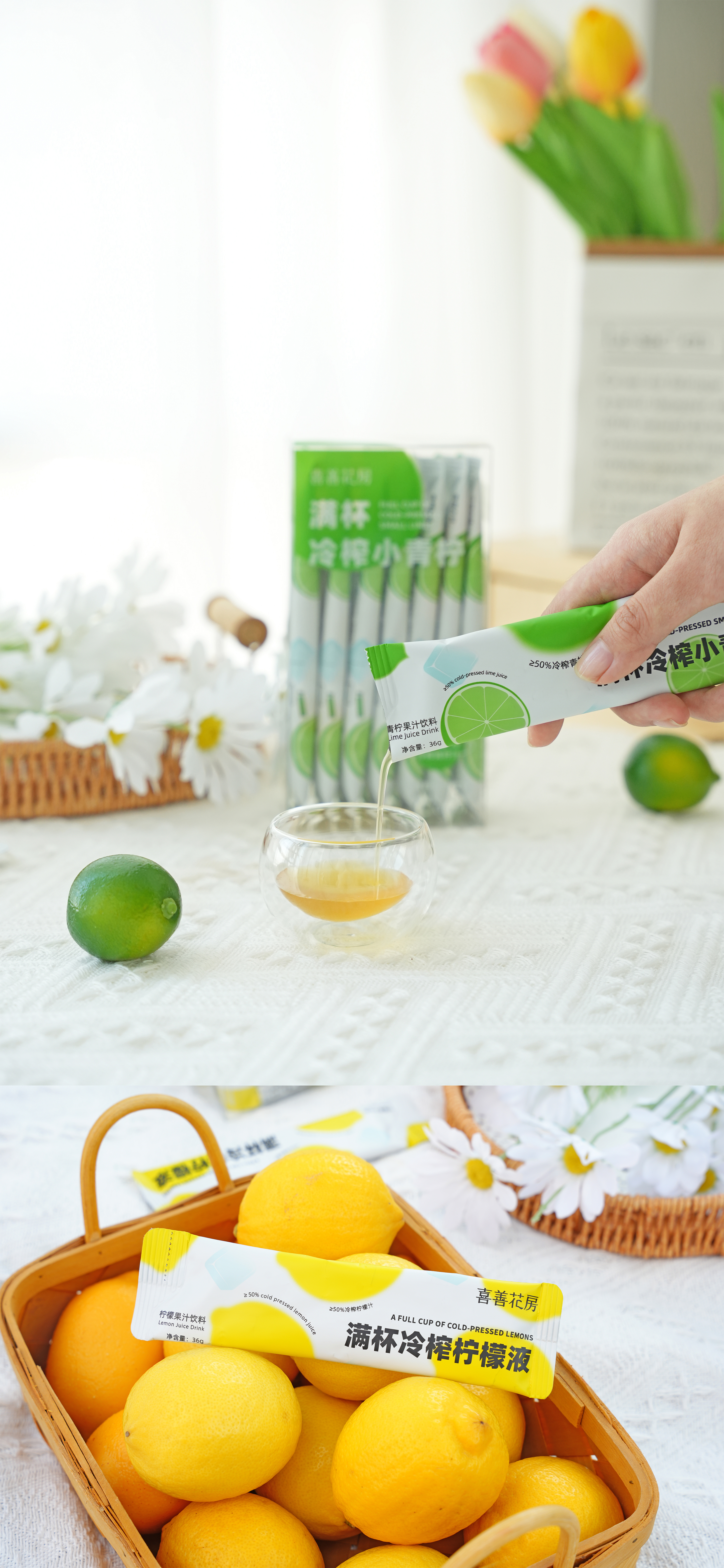 【分仓直发包邮】喜善花房|满杯冷榨柠檬液 &满杯冷榨小青柠3盒(36g×7条/盒)