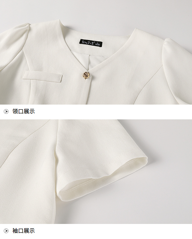 奢姿大码女装2026夏季气质V领两件套胖妹妹百褶设计时尚通勤套装9952990665