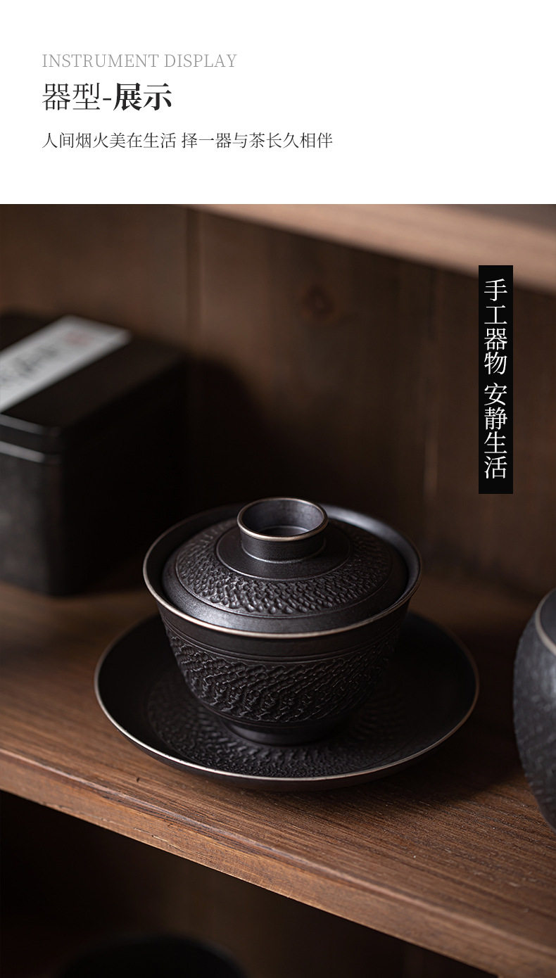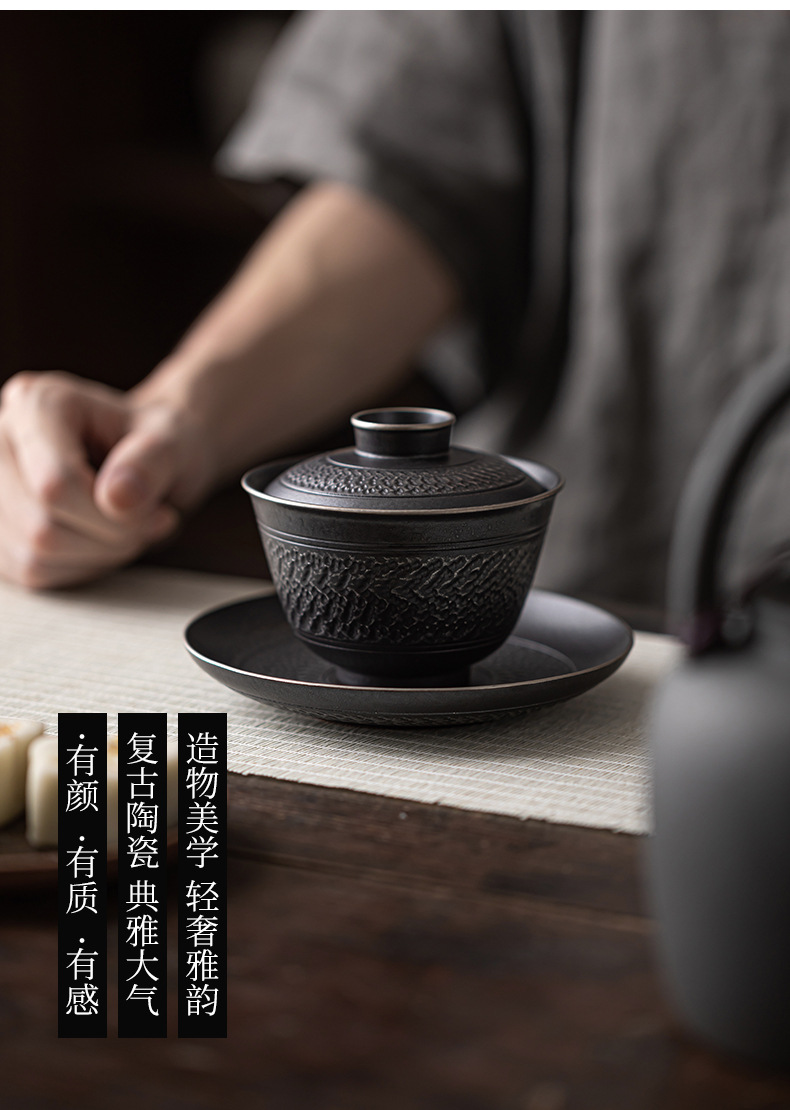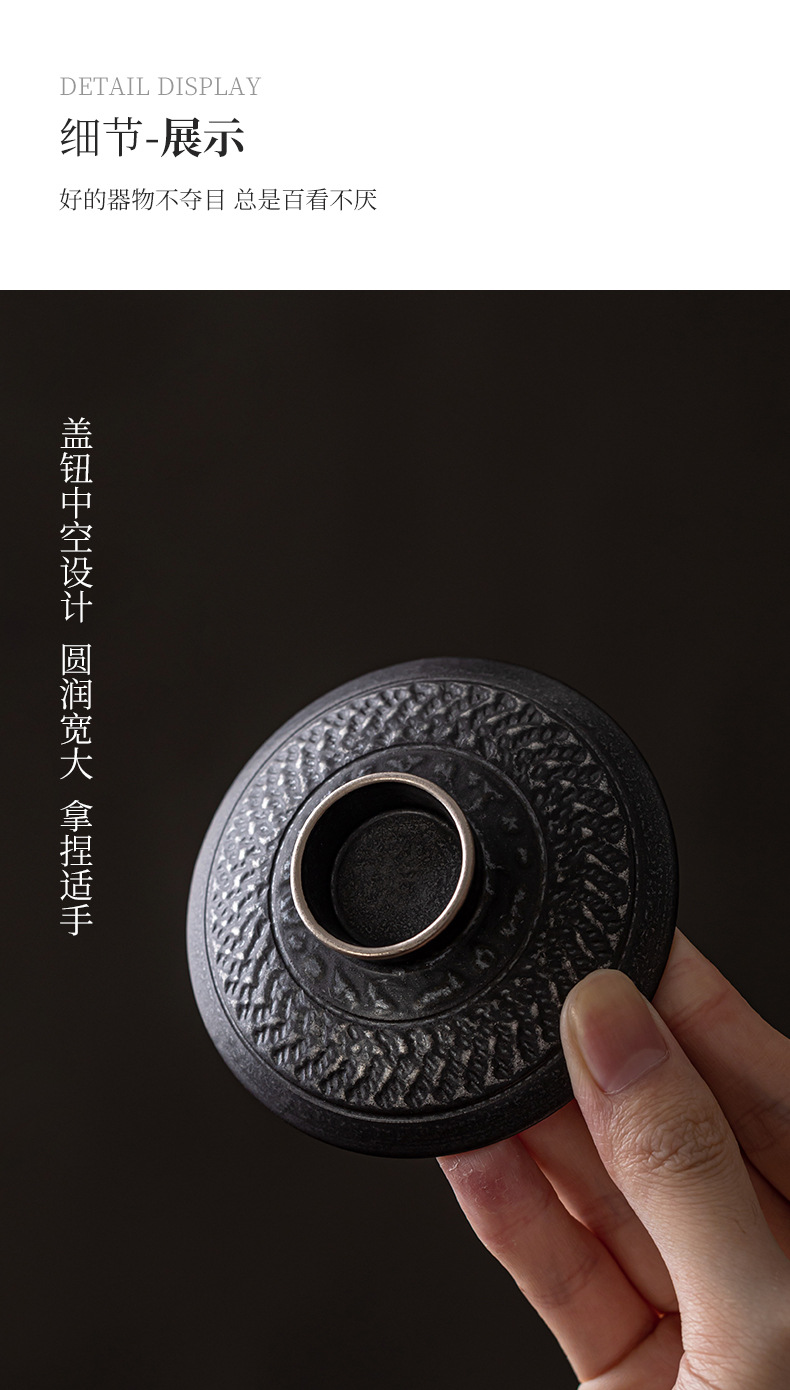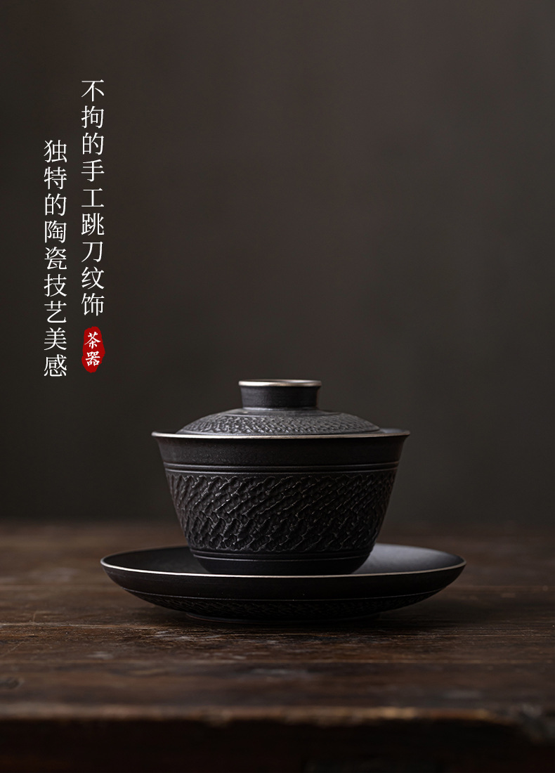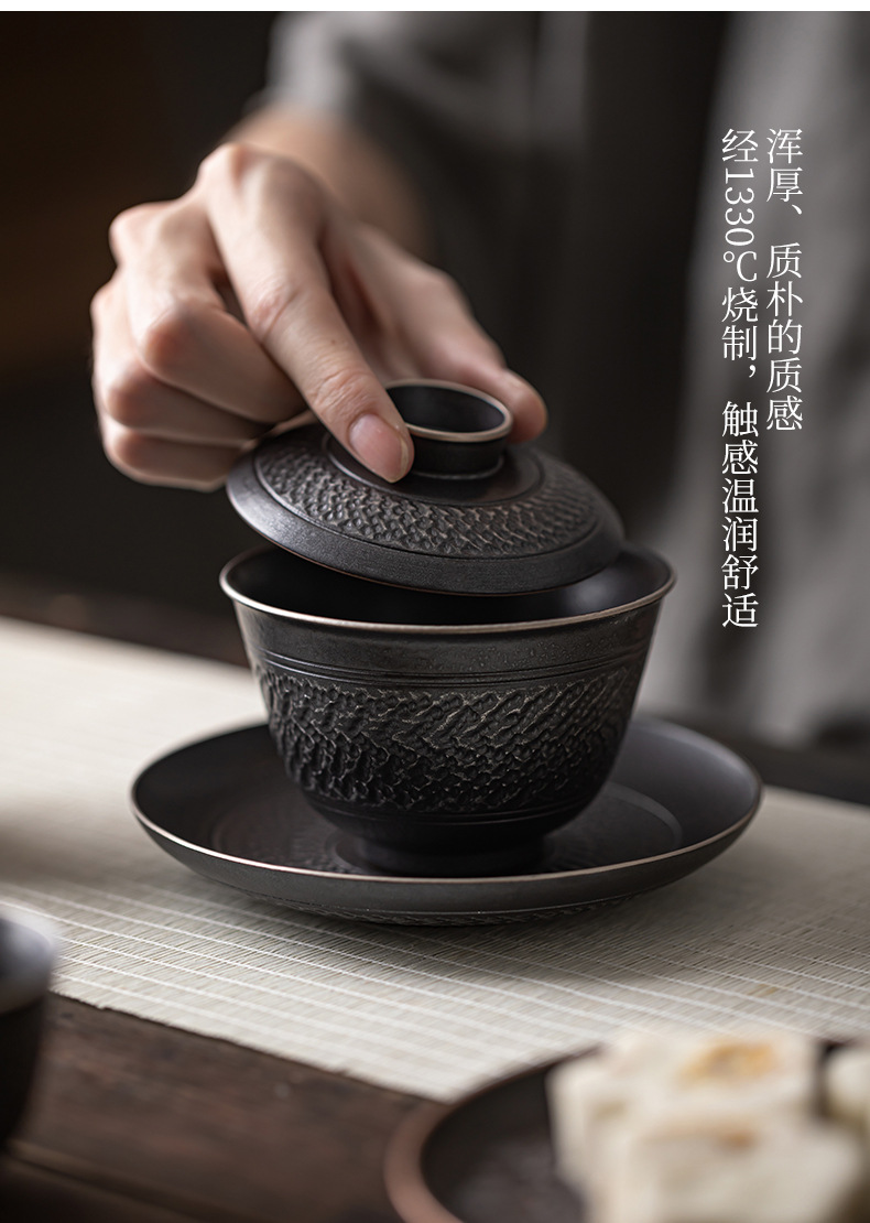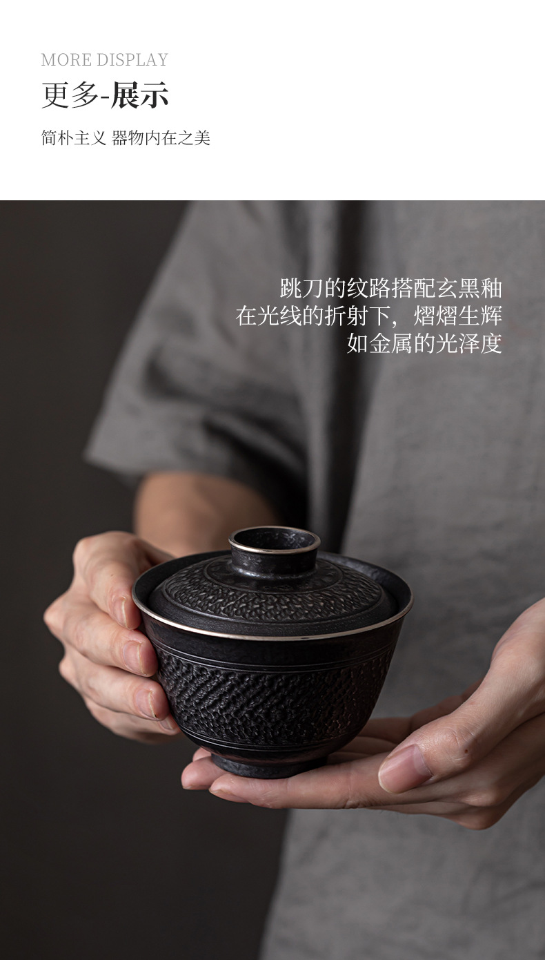 手工跳刀盖碗茶杯单个中式复古三才碗功夫茶具不烫手泡茶碗手抓壶