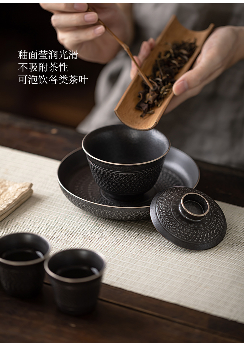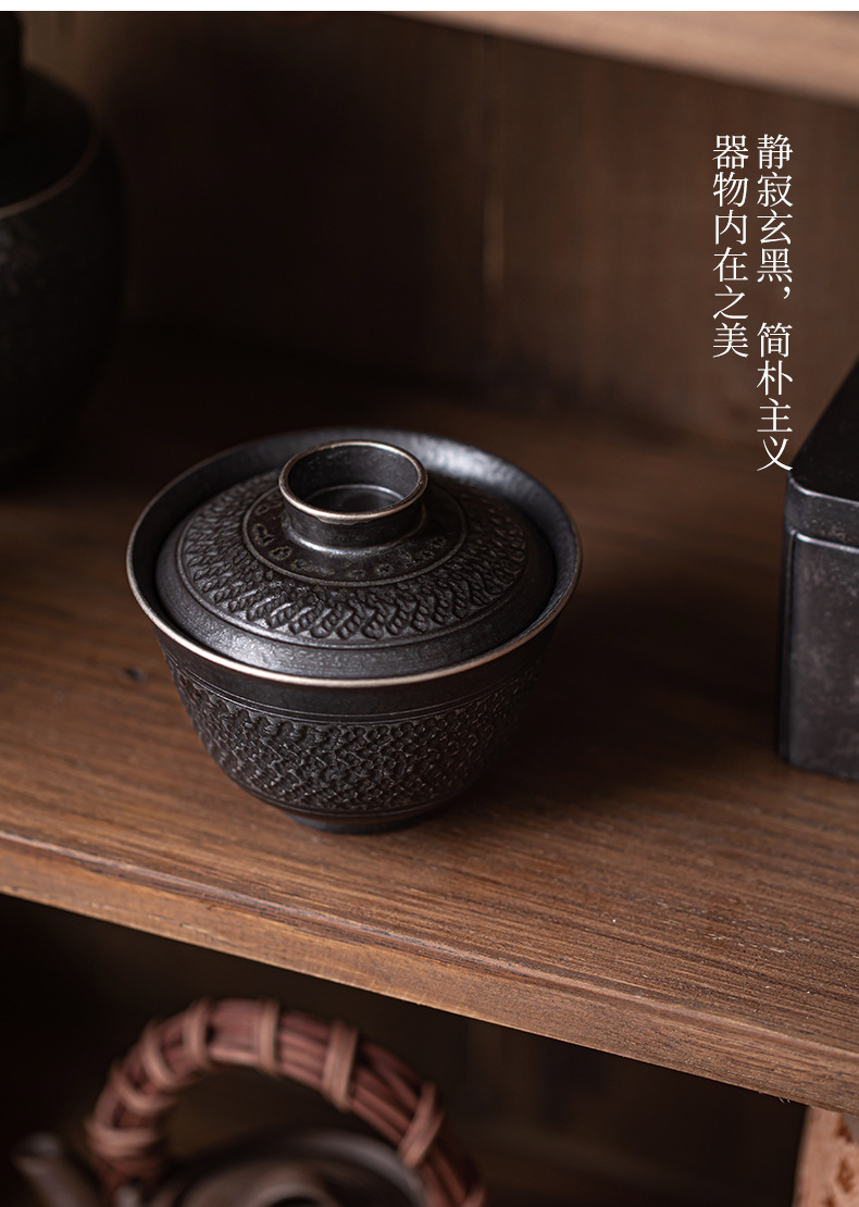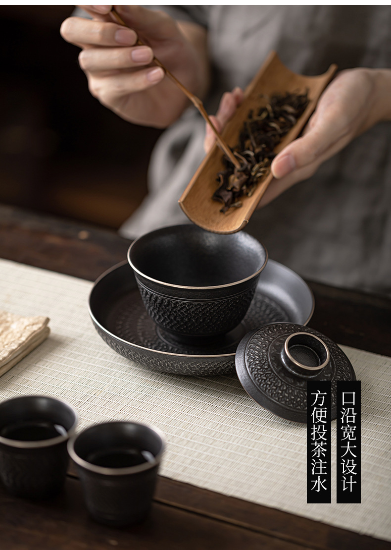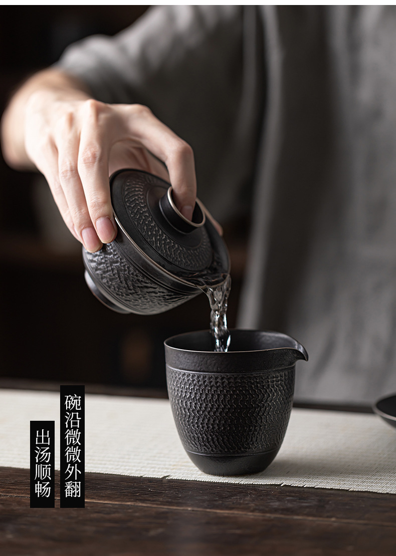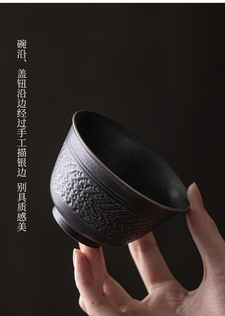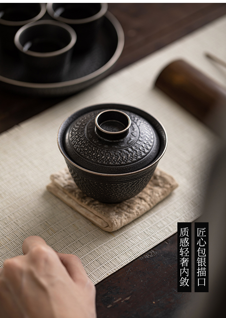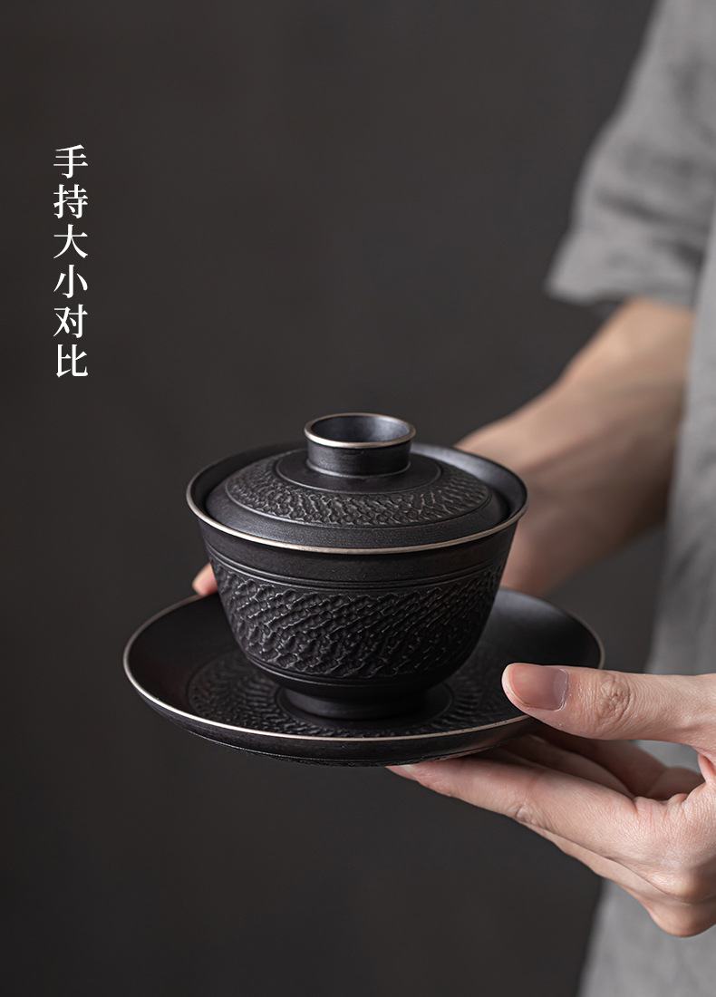 手工跳刀盖碗茶杯单个中式复古三才碗功夫茶具不烫手泡茶碗手抓壶