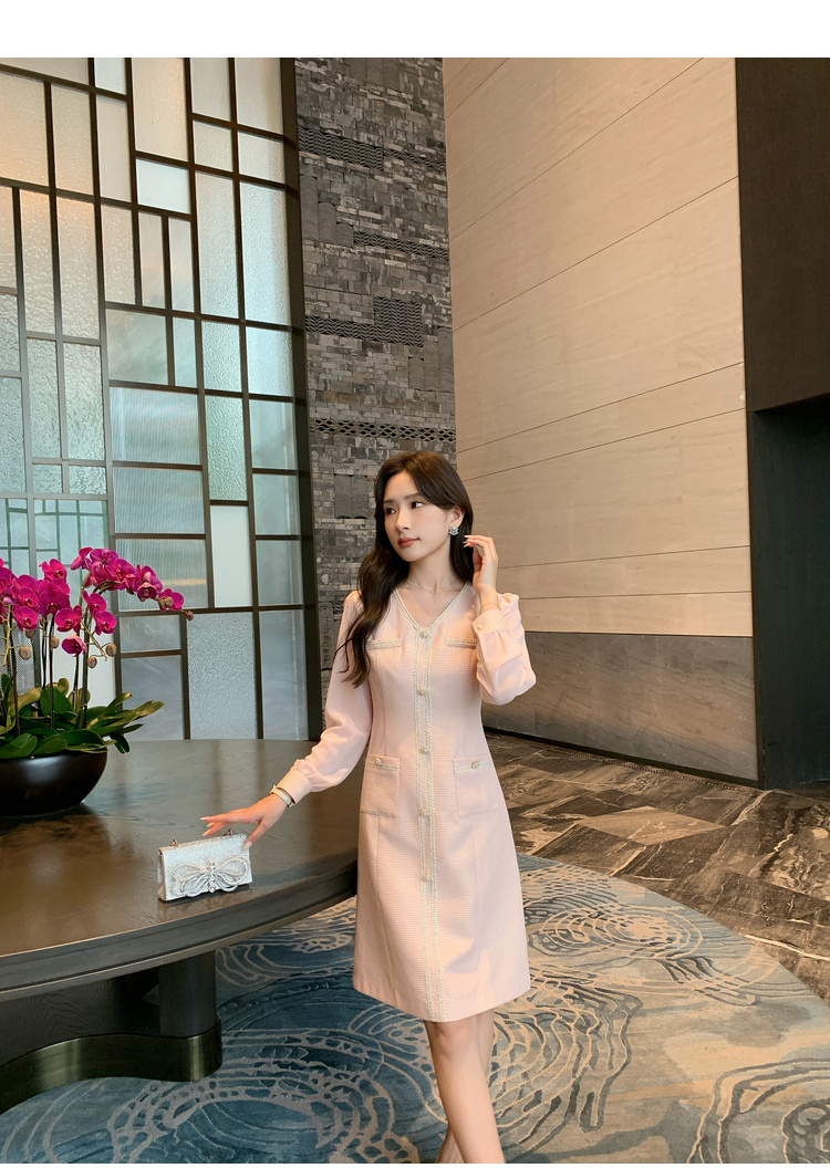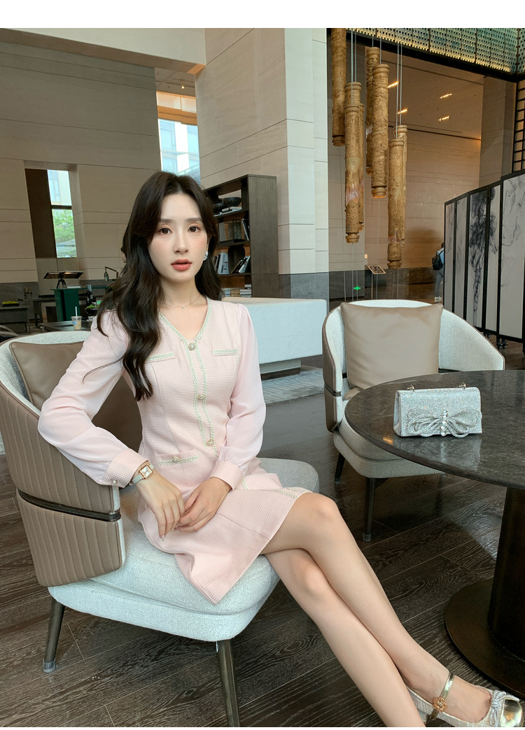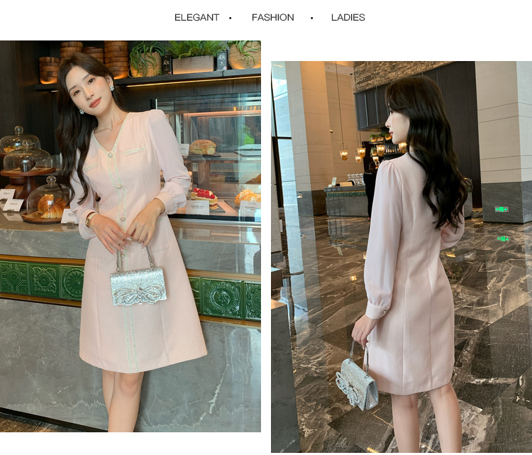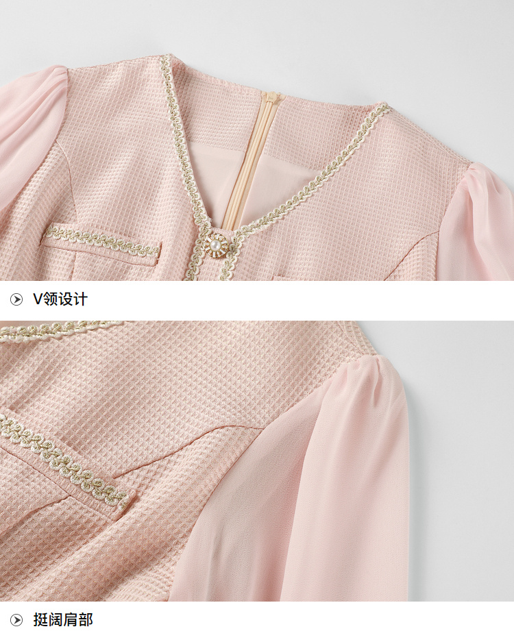 奢姿2025年春季新款大码女装拼接织带V领裙子胖妹妹小香风连衣裙9943826471