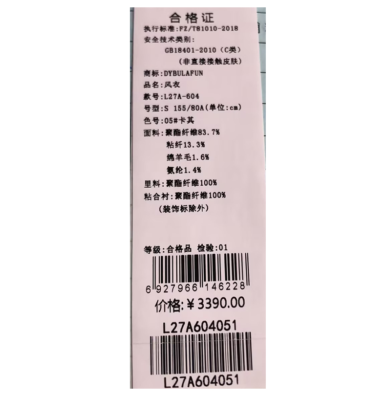 戴布拉芬风衣L27A604