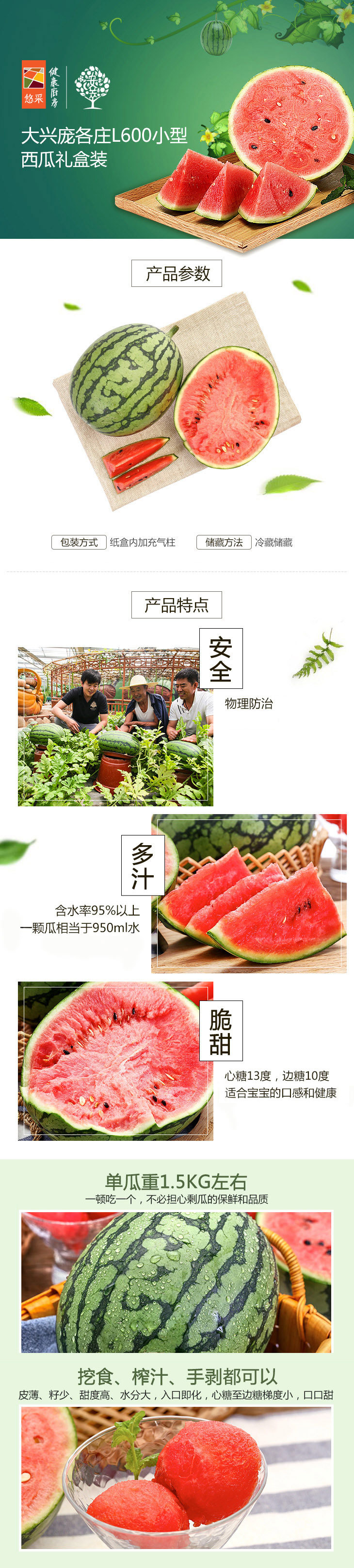 【分仓直发包邮】中粮安萃庞各庄小西瓜特级礼盒装6-7斤 共2粒(单粒3-3.5斤)