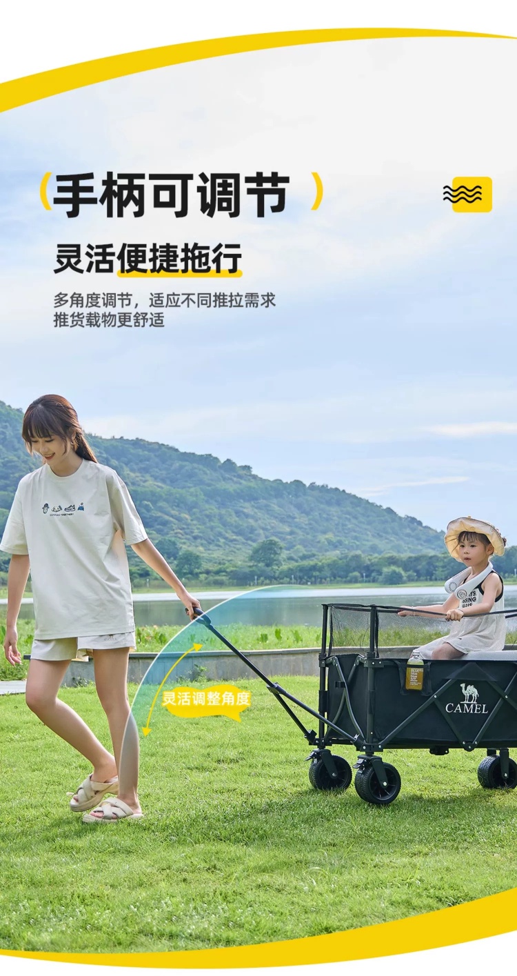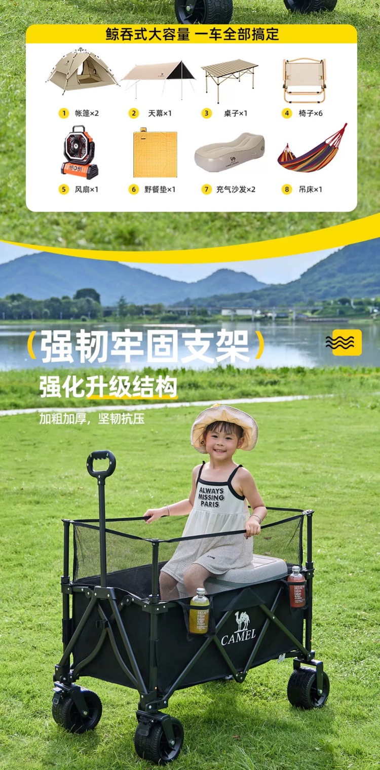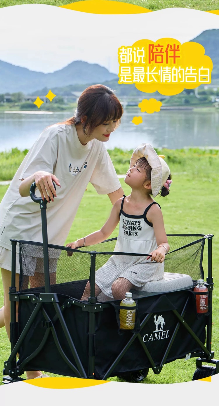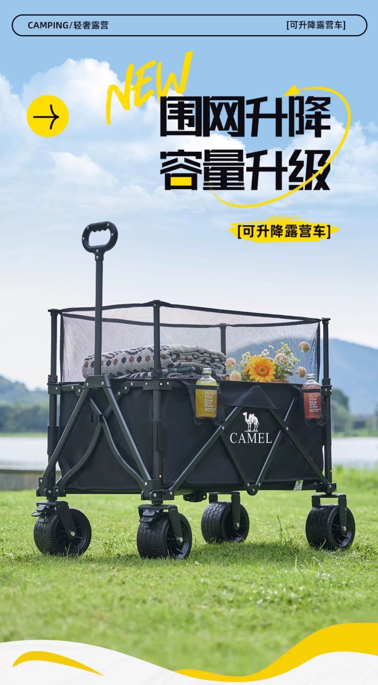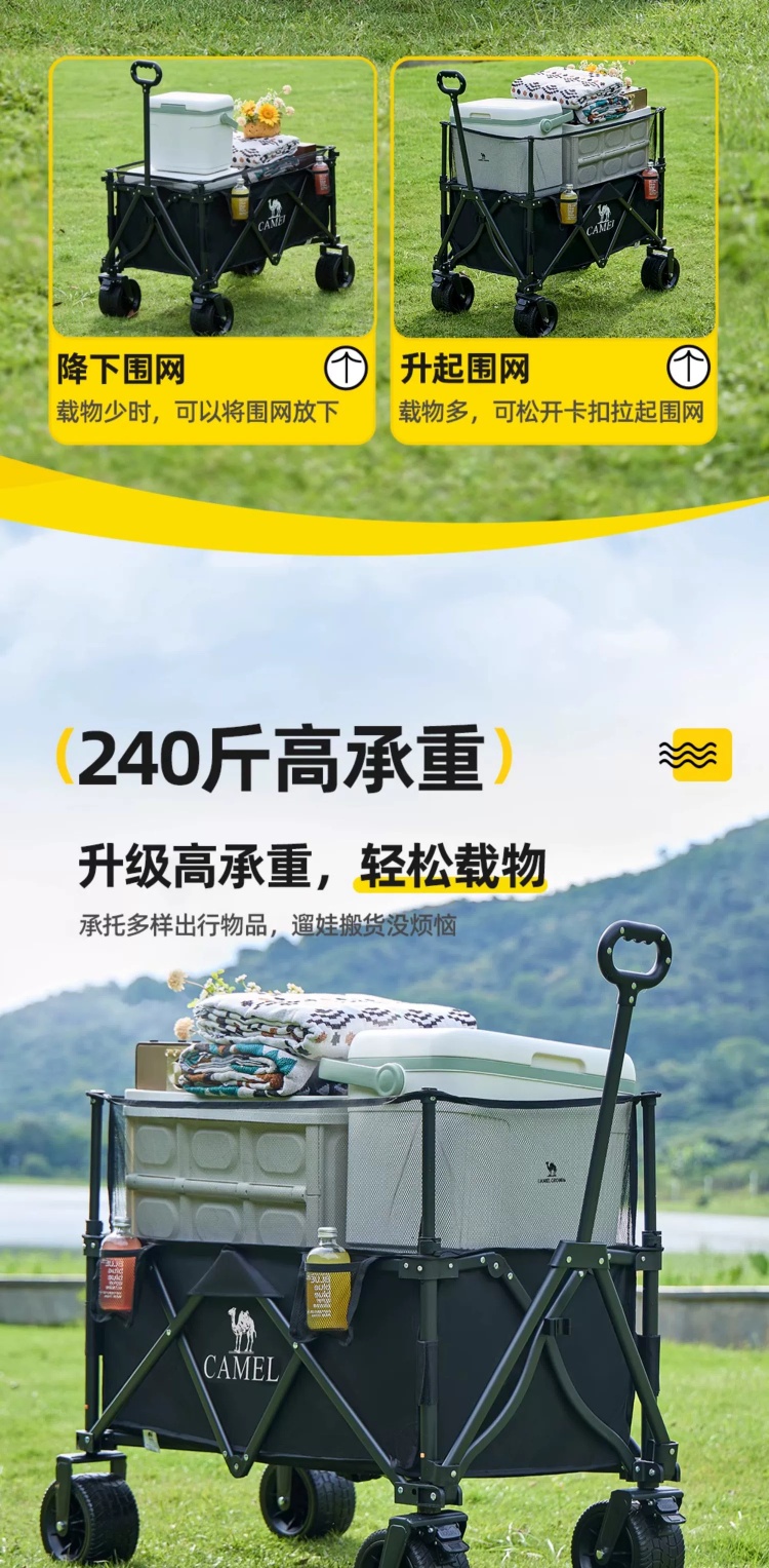 CAMEL户外露营车可升降围网手推车儿童可躺可折叠大容量减震营车 174BJ40751