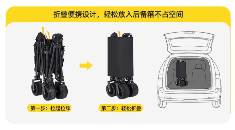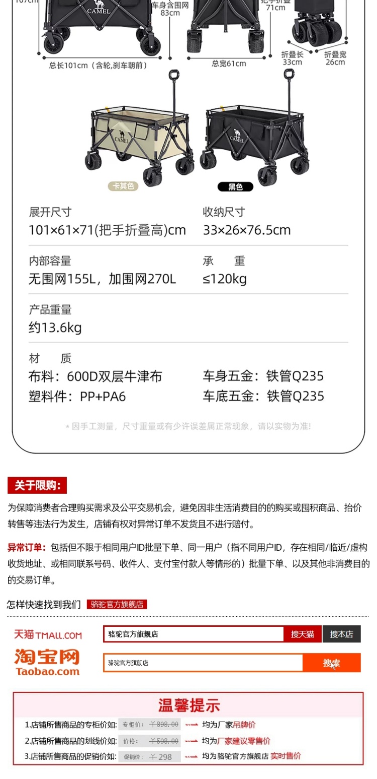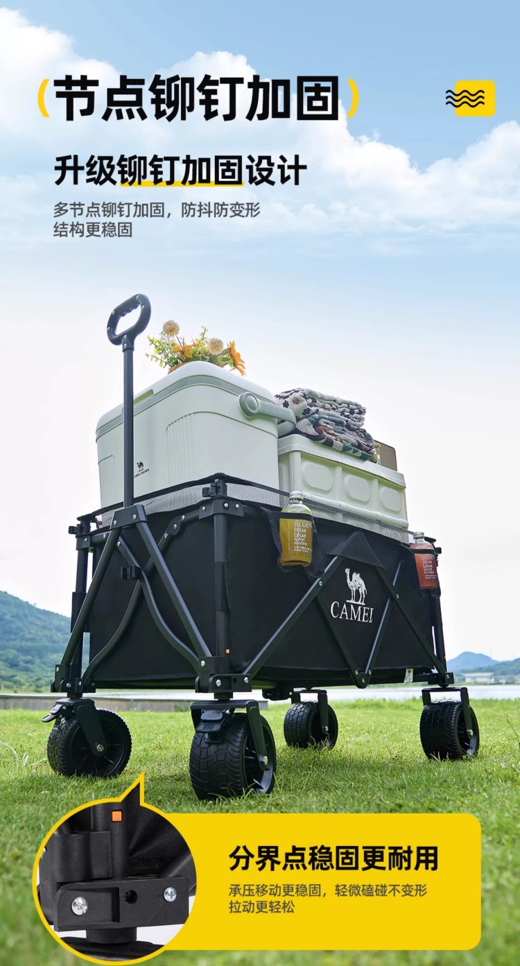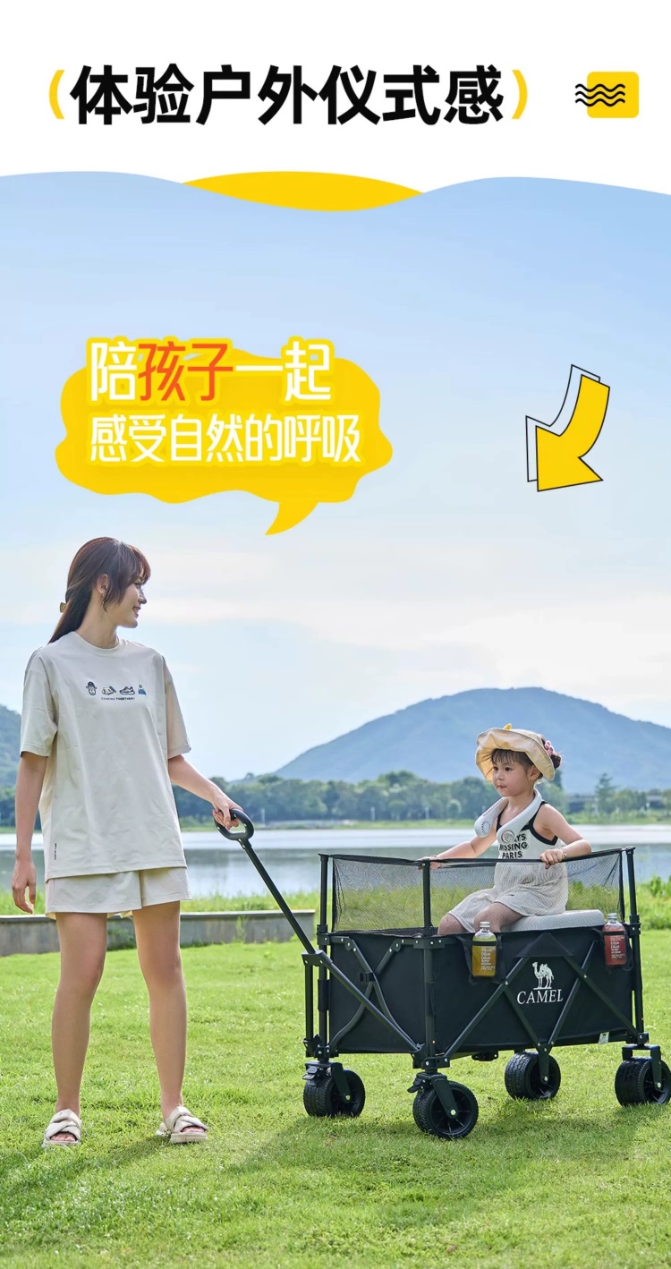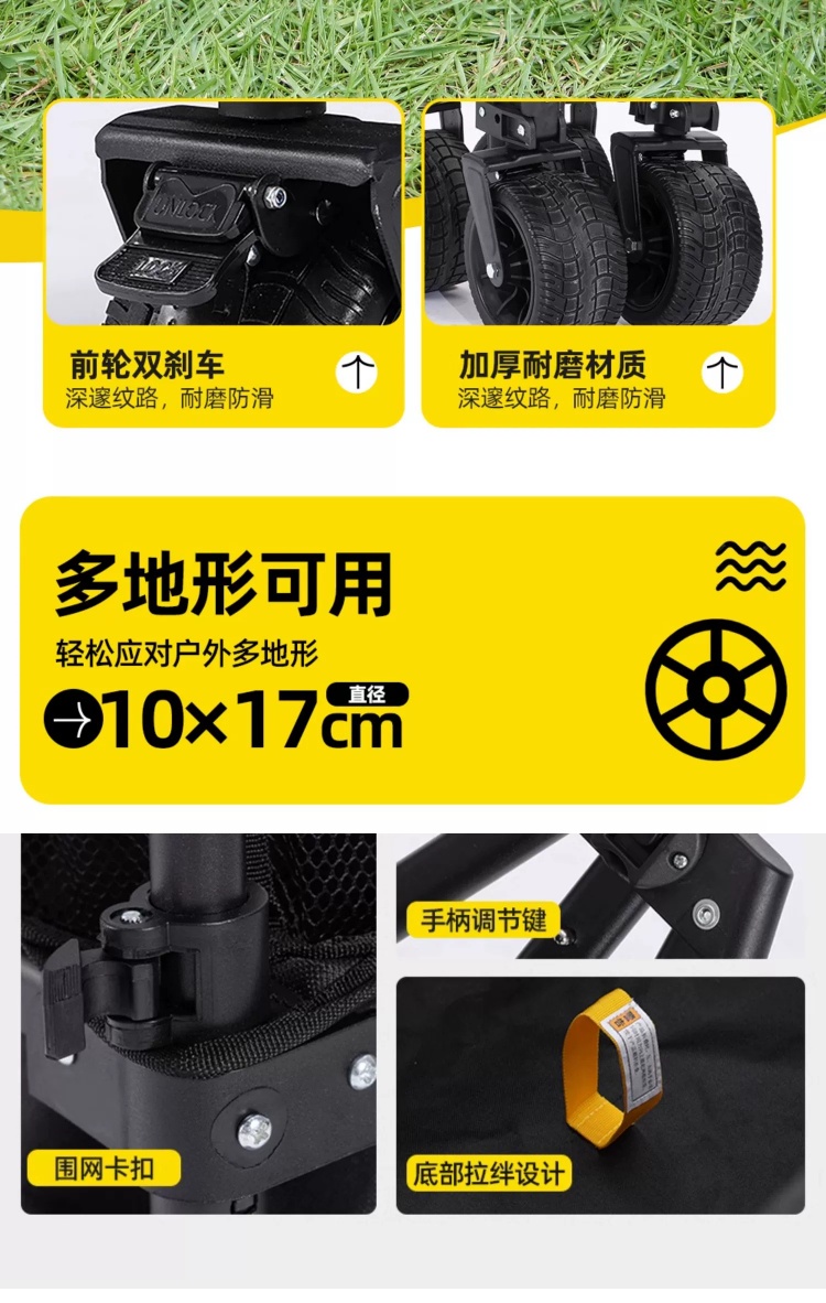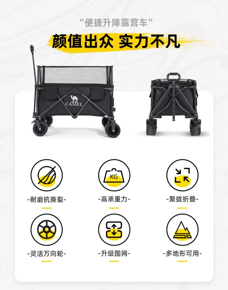 CAMEL户外露营车可升降围网手推车儿童可躺可折叠大容量减震营车 174BJ40751