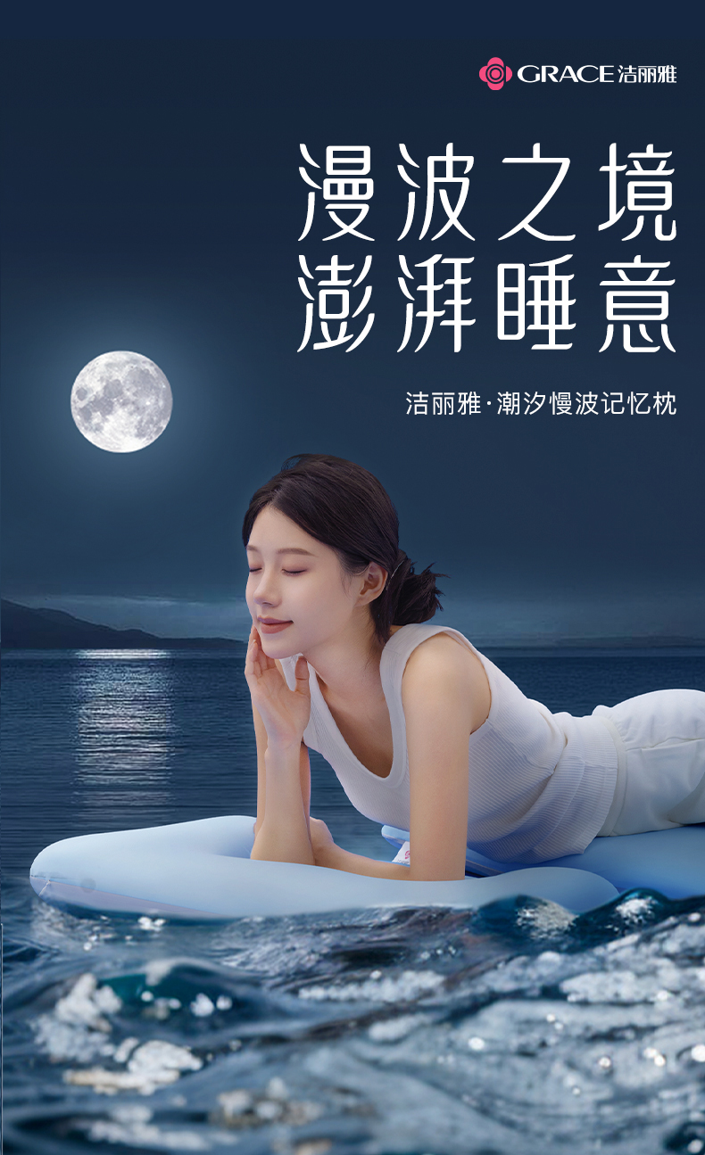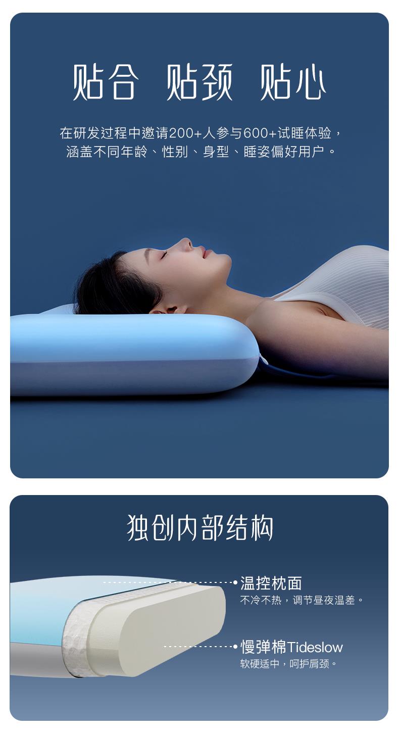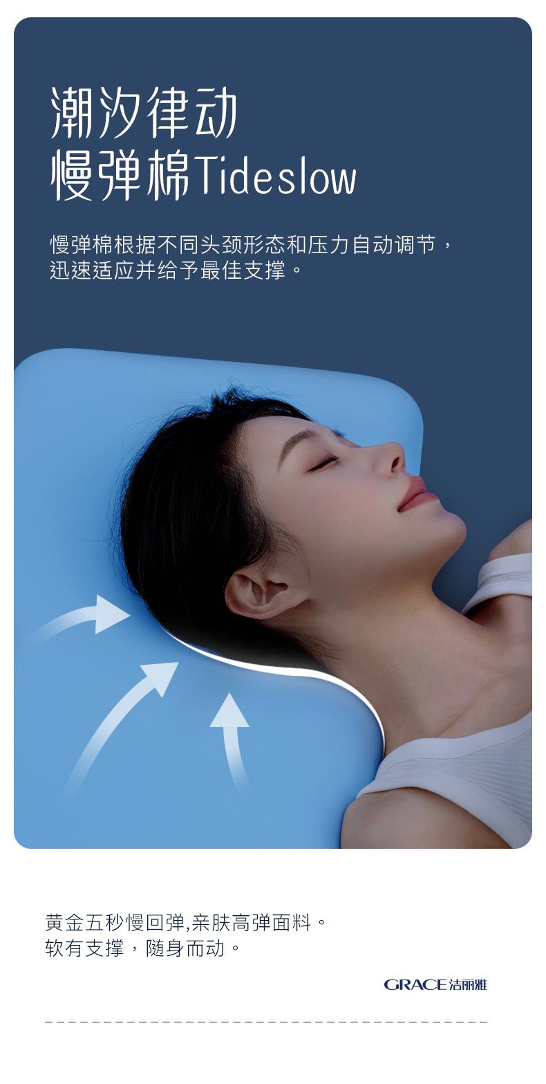 洁丽雅潮汐漫波记忆枕深睡眠零压慢回弹护颈独立烘焙一体深睡枕头
