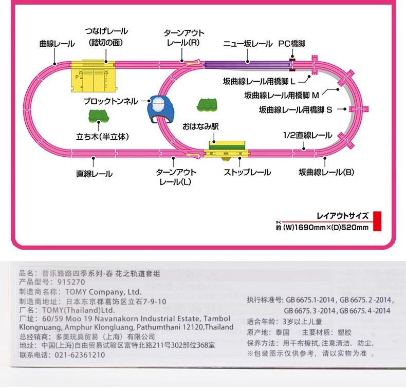 TOMY多美卡 普乐路四季系列套组春之花铁道火车轨道 3岁+