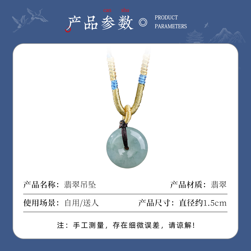 天然翡翠A货平安扣吊坠玉坠项链男女款挂绳百搭质感