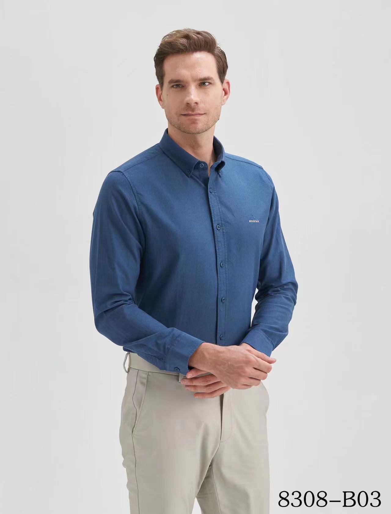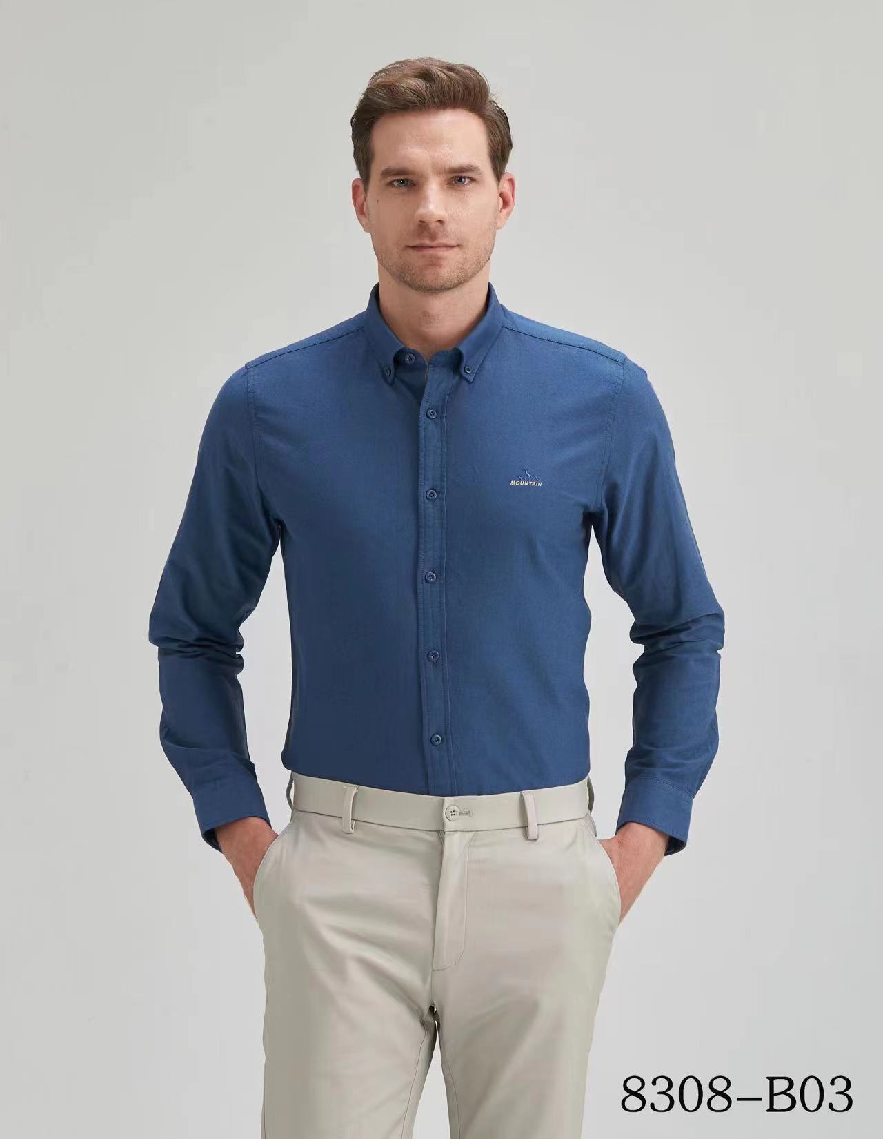 8308# 男士衬衫长袖纯全棉牛津纺挺阔休闲商务衬衣男 牛仔蓝 M~3xL