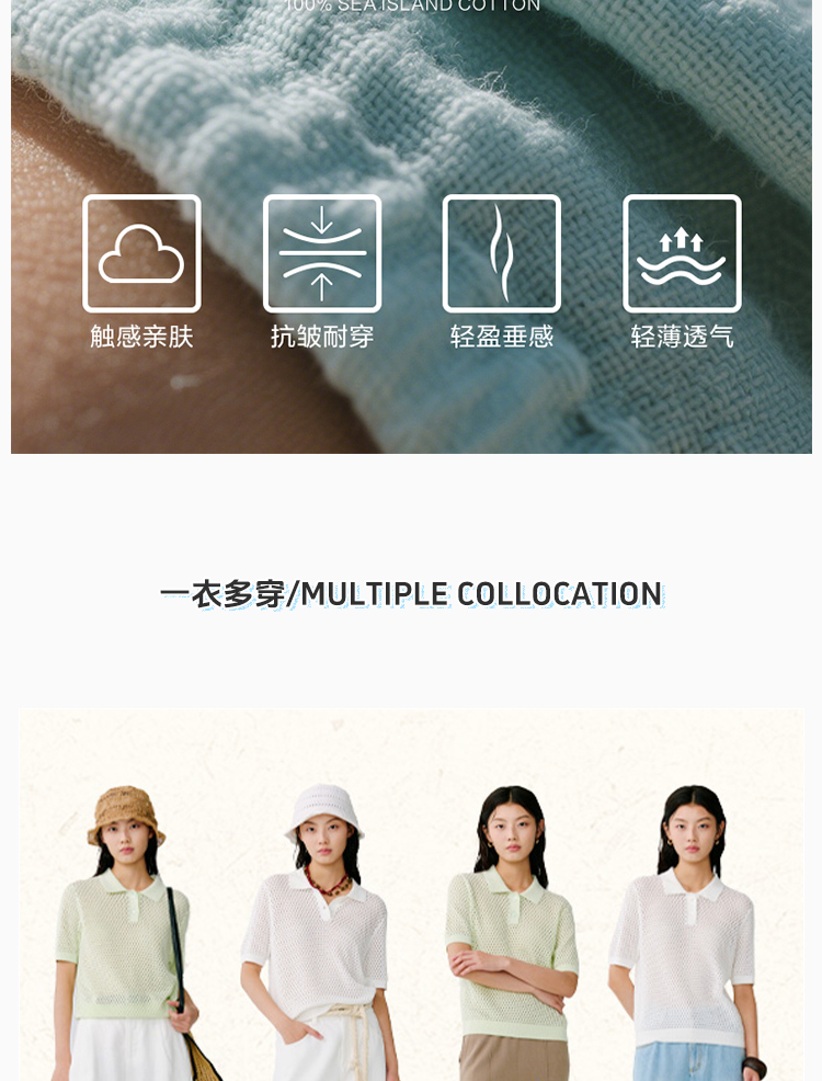 东黎 • 温柔的海风 珊瑚岛-POLO 海岛棉女士T恤领短袖 5189