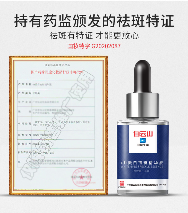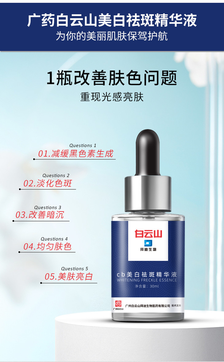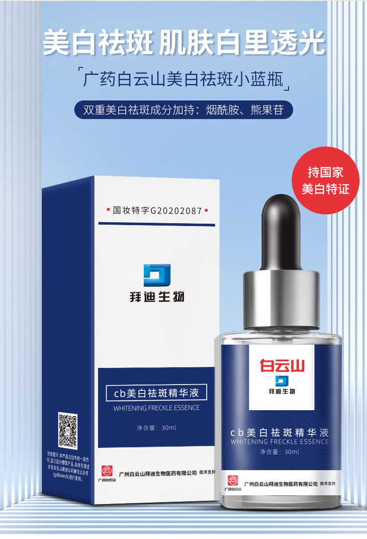 【买2送1,买3送2】广药出品 白云山美白淡斑精华液30ml