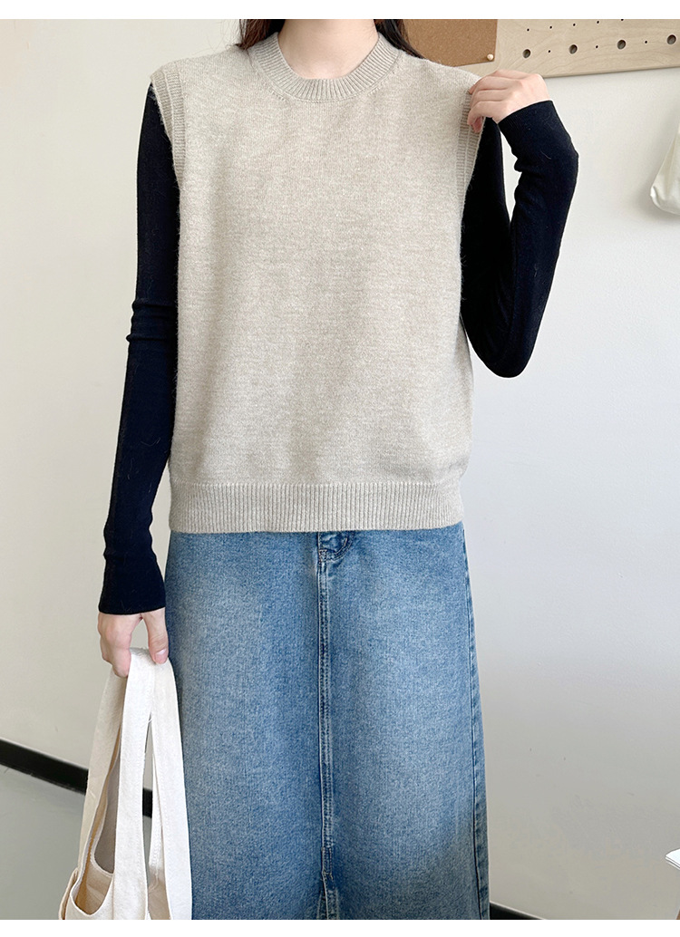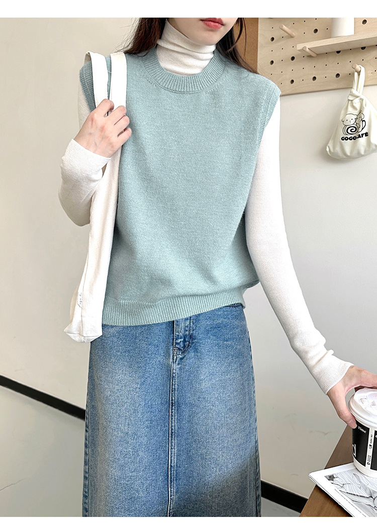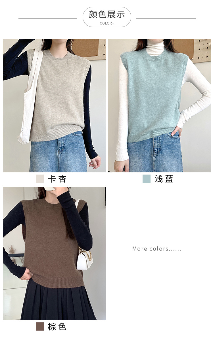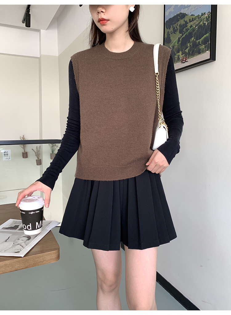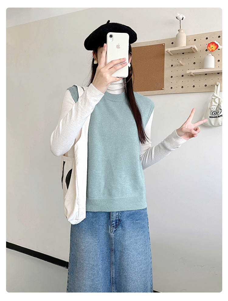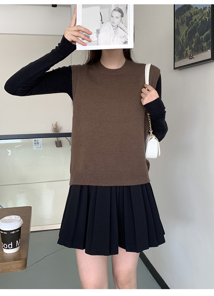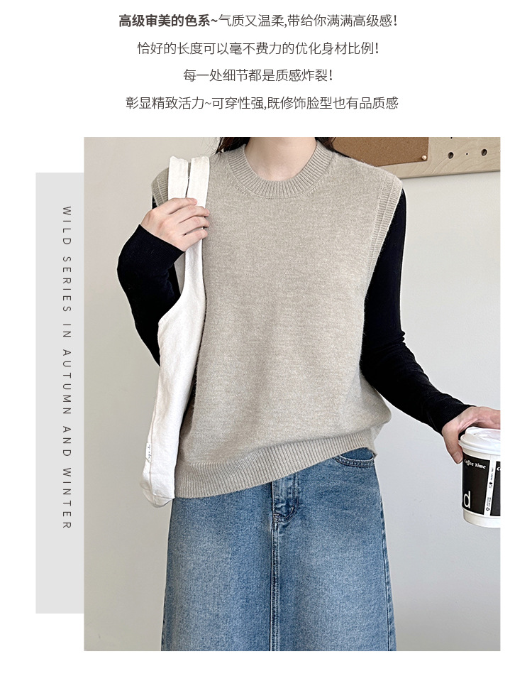 冬季小香风圆领针织马甲,女秋冬叠穿打底衫内搭毛衣背心两件套上衣SR-28766