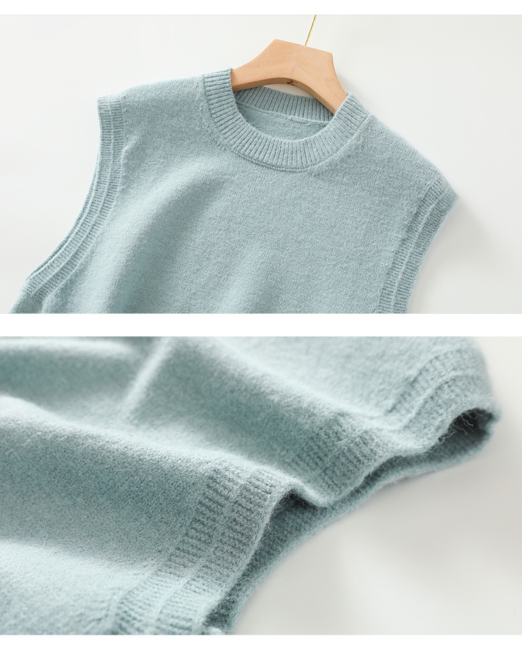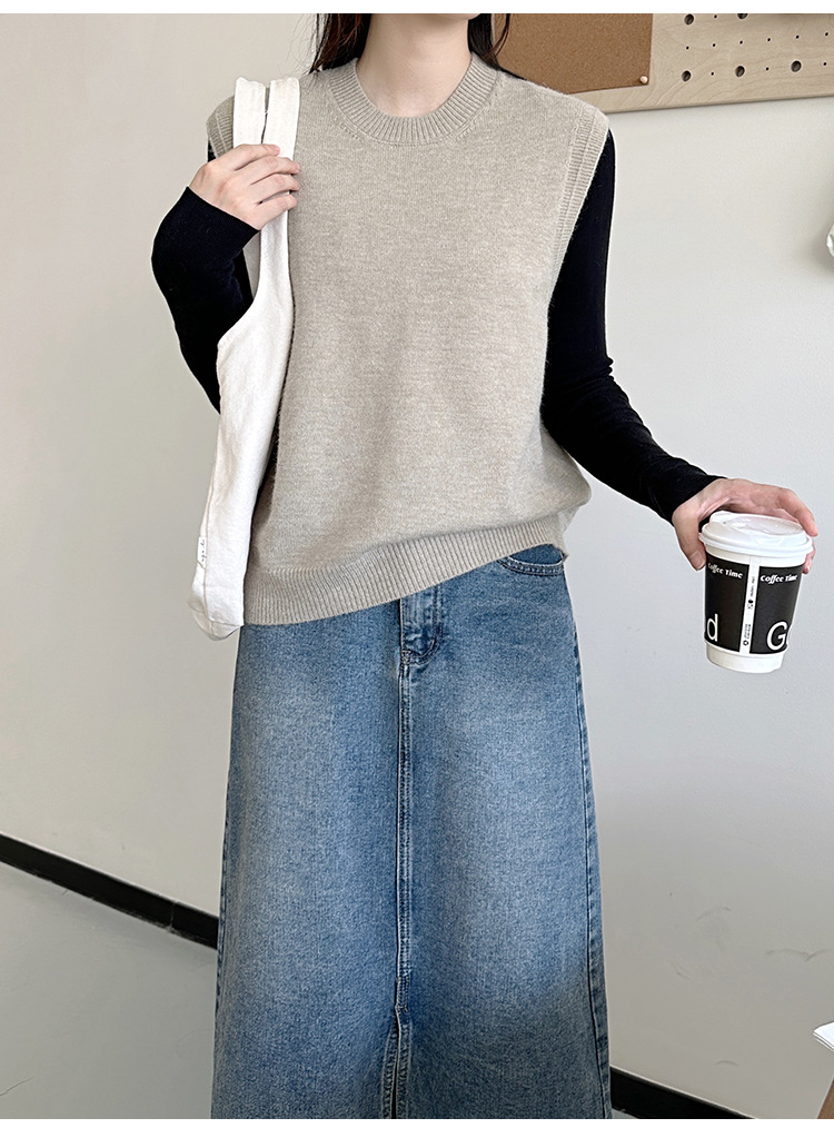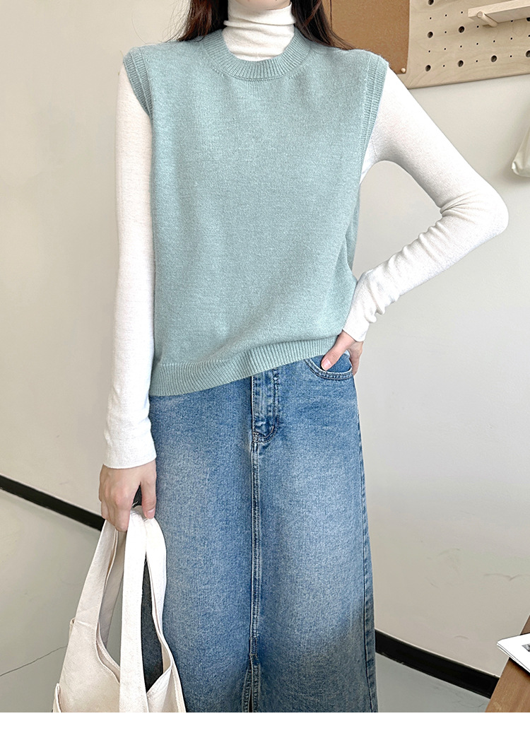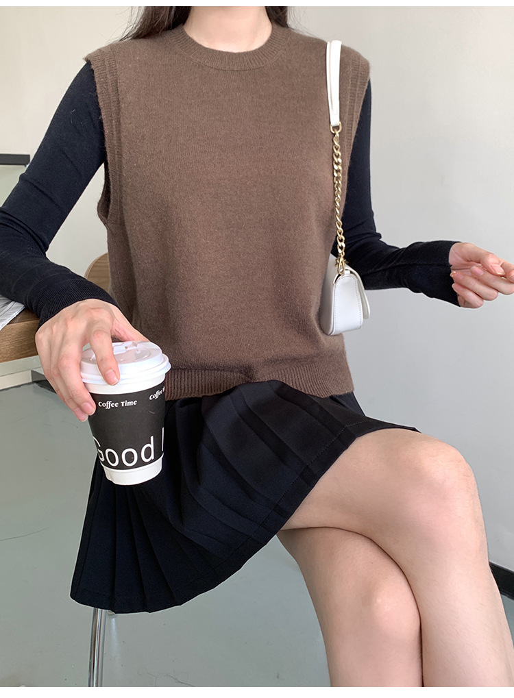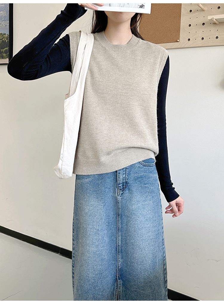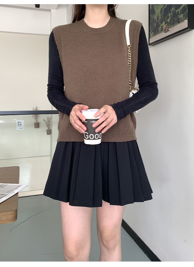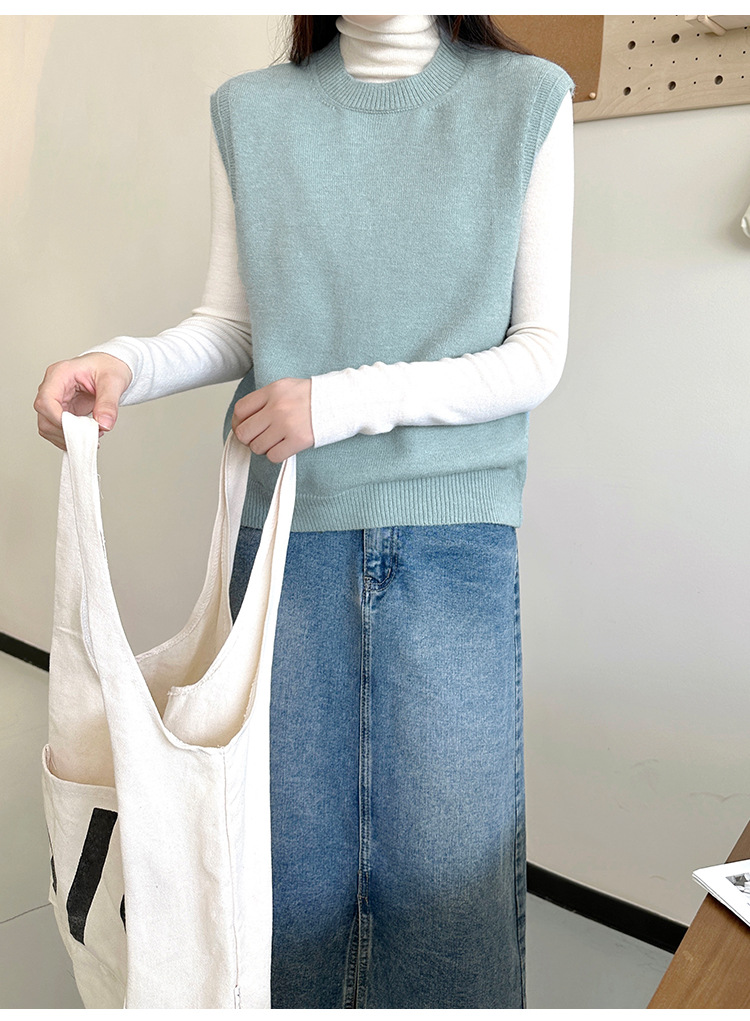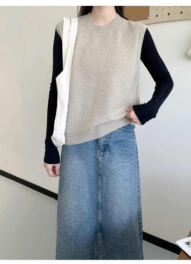 冬季小香风圆领针织马甲,女秋冬叠穿打底衫内搭毛衣背心两件套上衣SR-28766