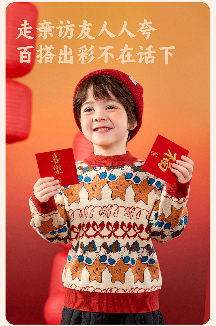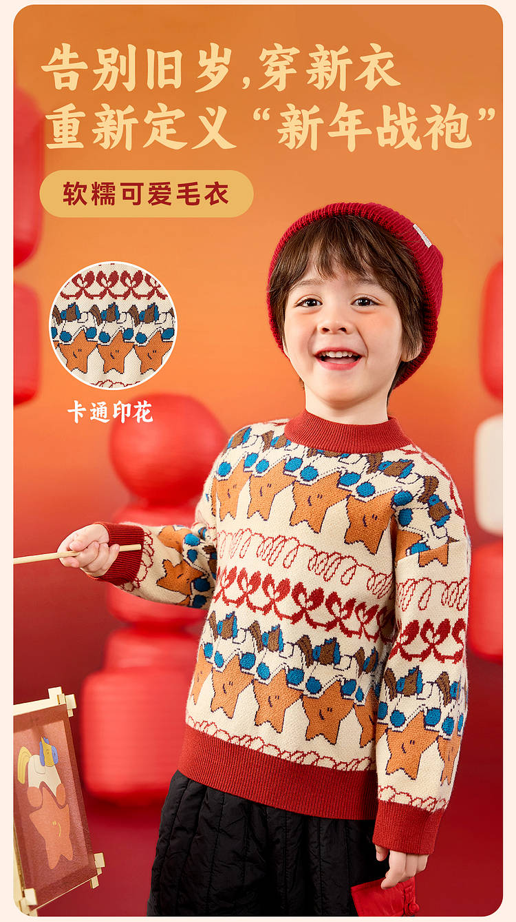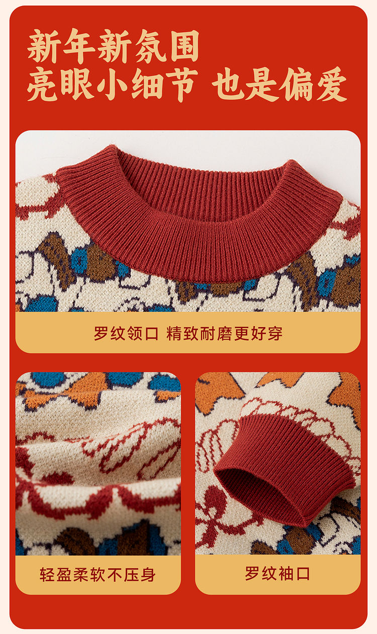 嘟嘟家宝宝唐装毛衣冬季儿童拜年服男童喜庆上衣童装
