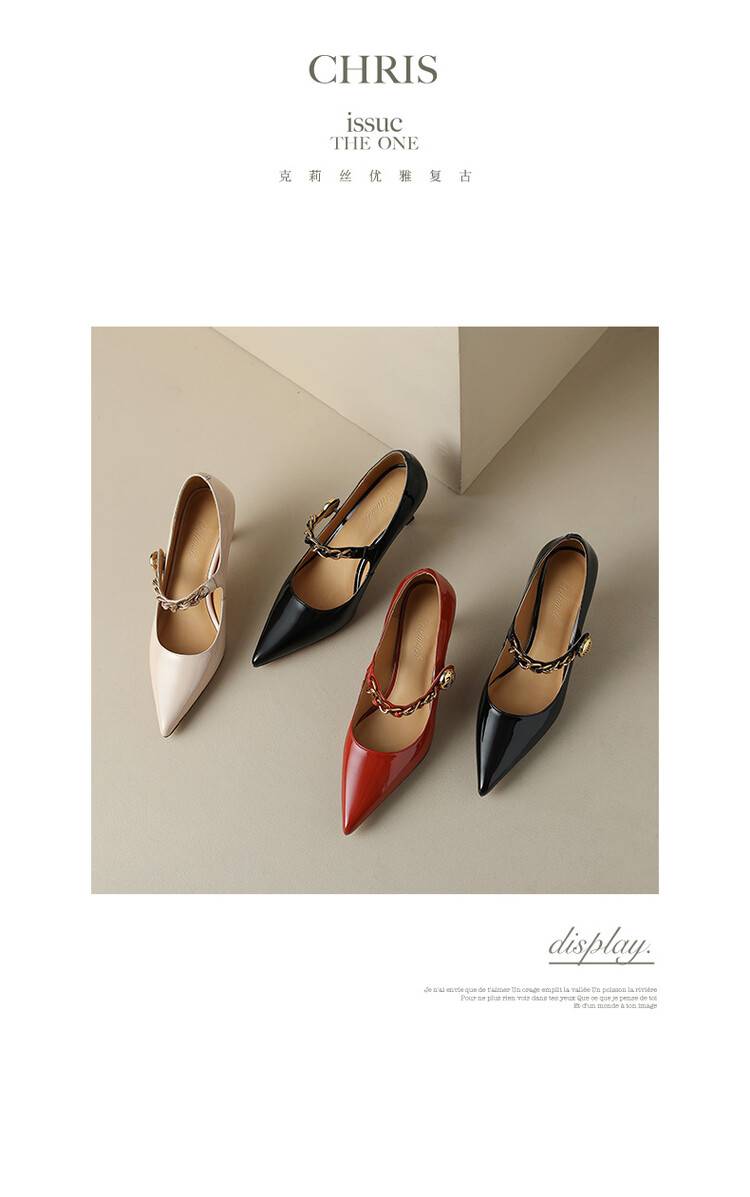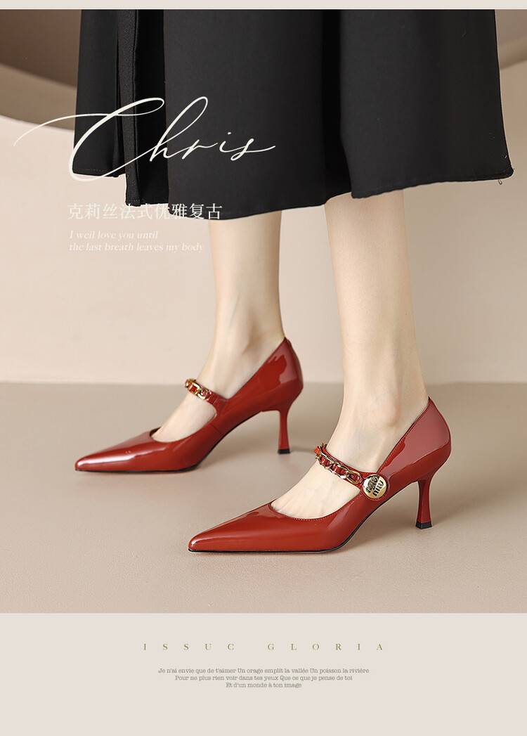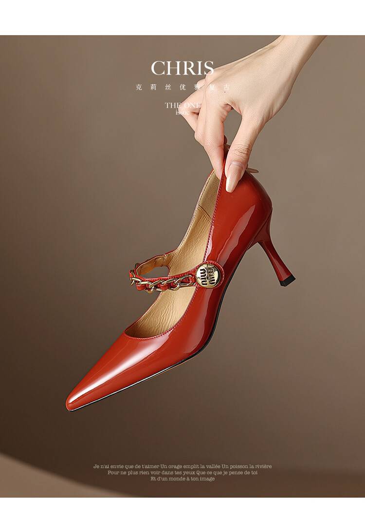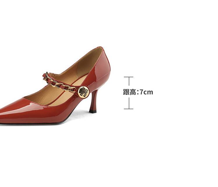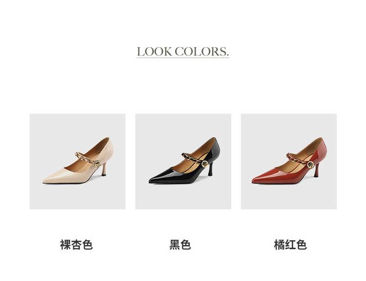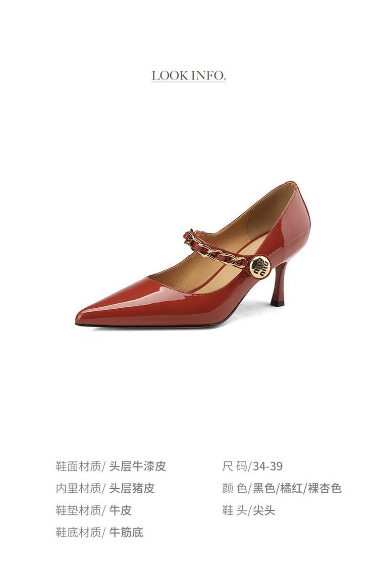 内里材质:头层猪皮鞋垫材质:牛皮鞋底材质:牛筋底颜色:黑色/裸杏/橘红跟高:7CM掌宽:8CM尺码:34-39