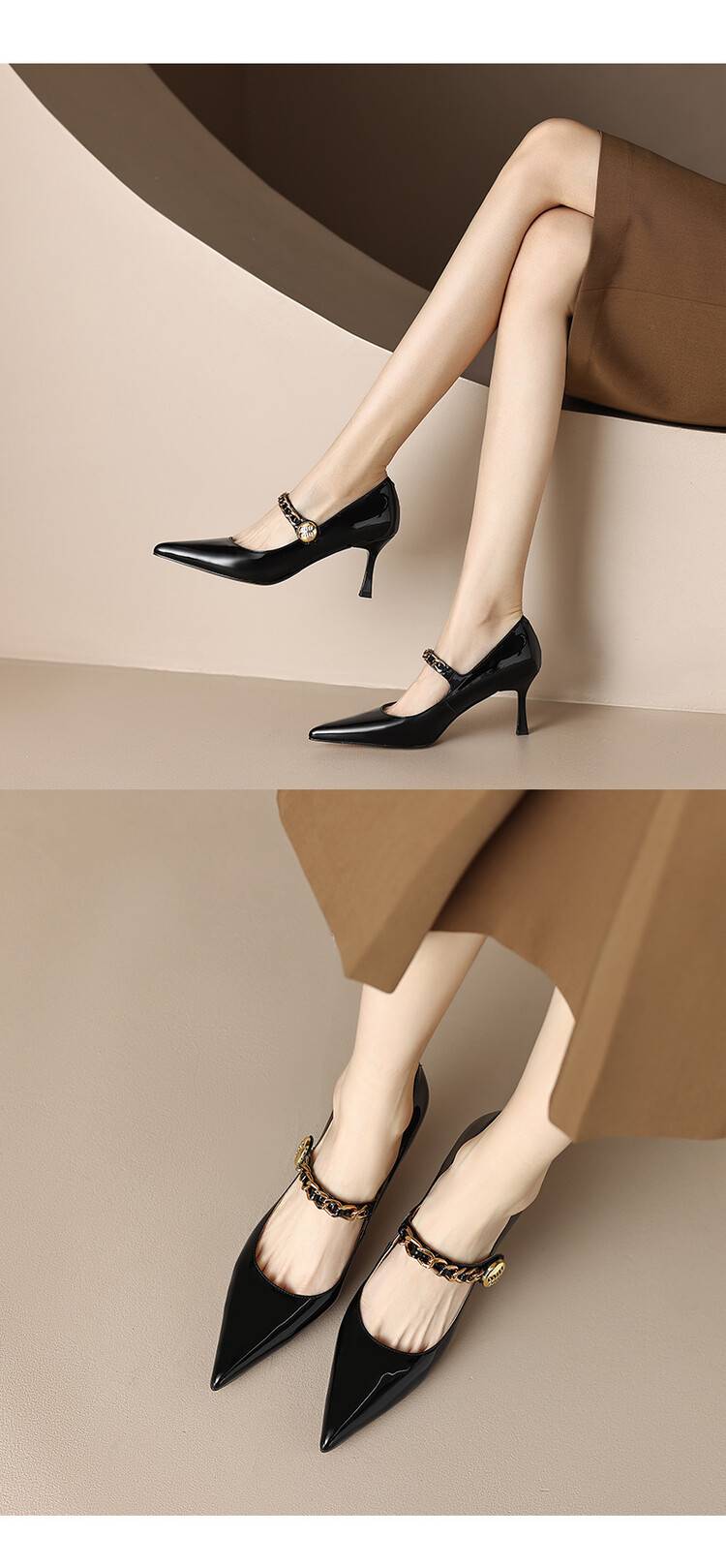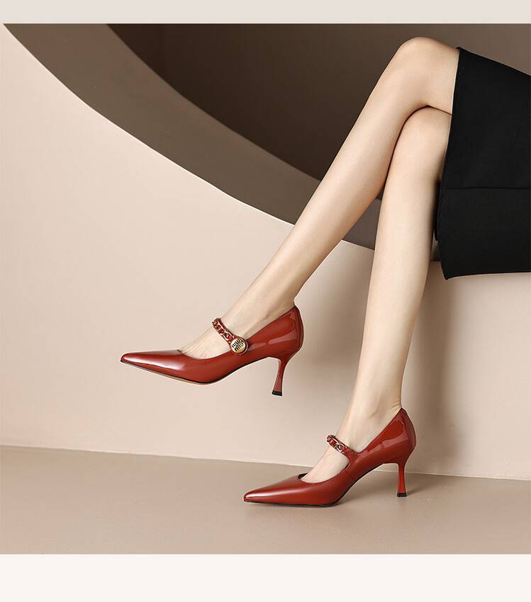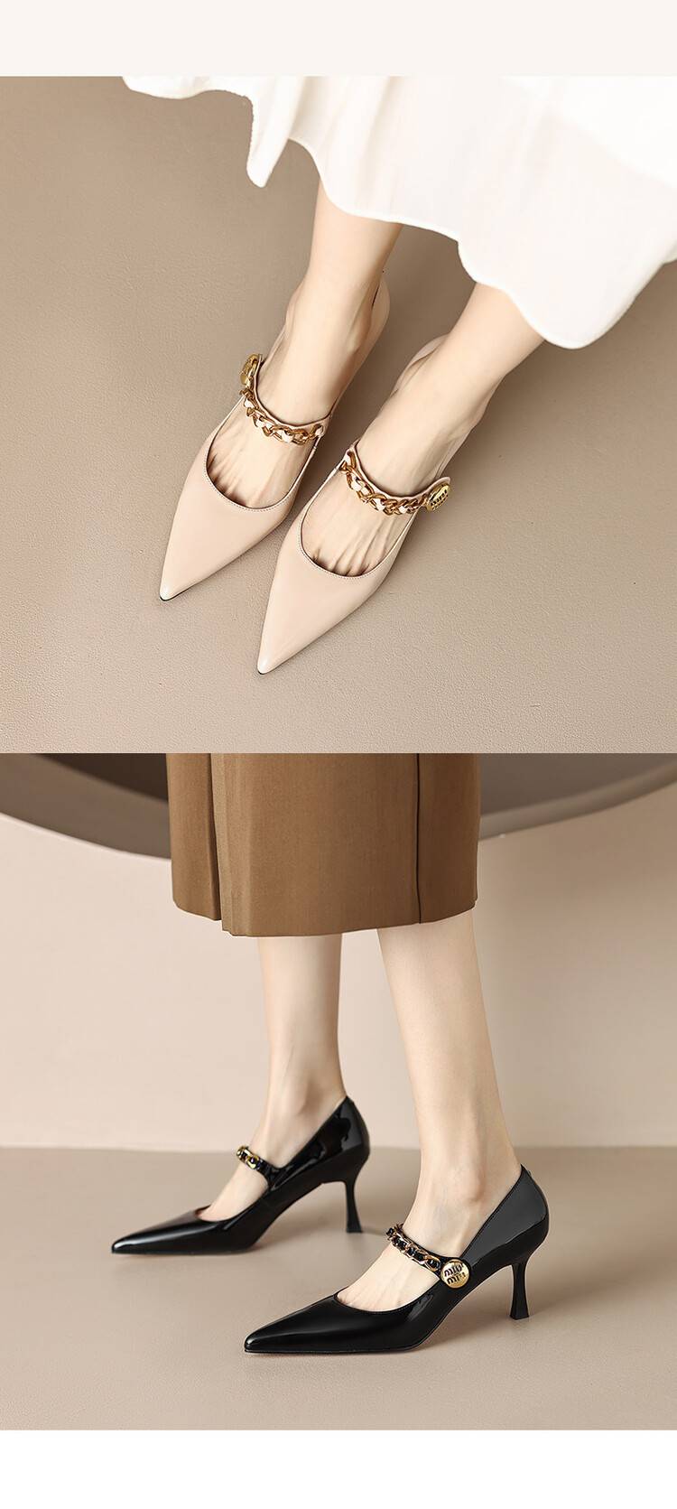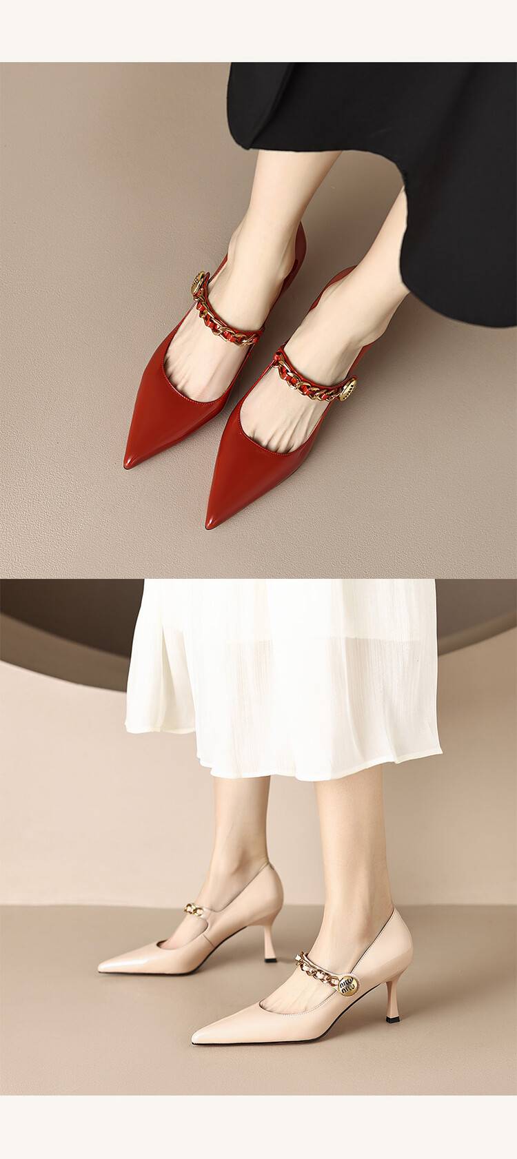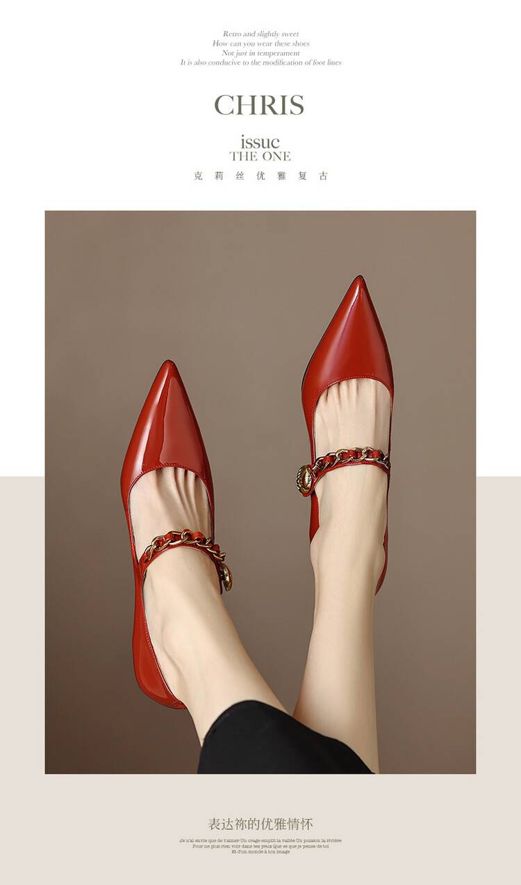 内里材质:头层猪皮鞋垫材质:牛皮鞋底材质:牛筋底颜色:黑色/裸杏/橘红跟高:7CM掌宽:8CM尺码:34-39
