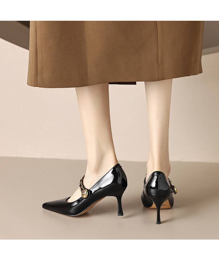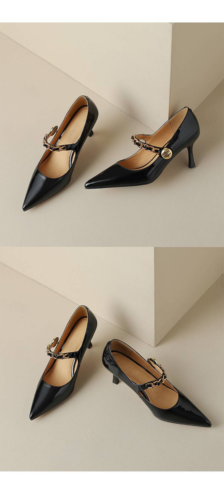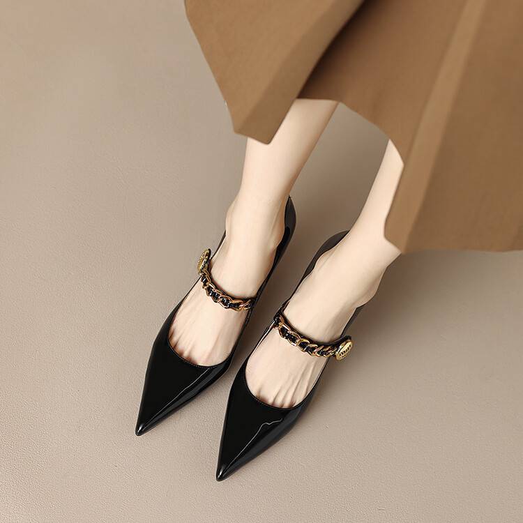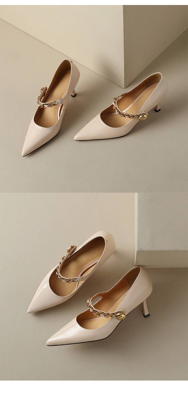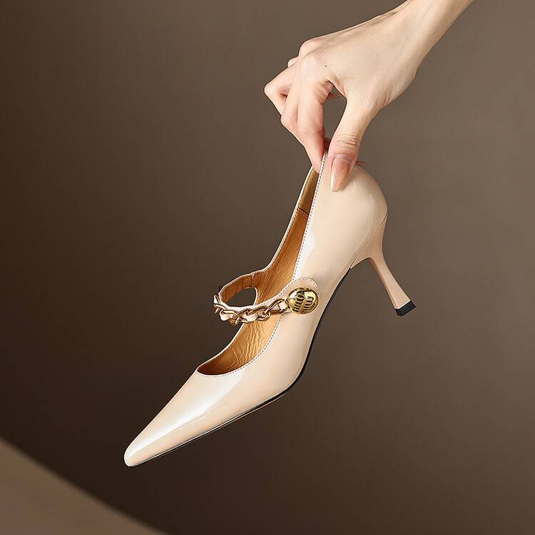 内里材质:头层猪皮鞋垫材质:牛皮鞋底材质:牛筋底颜色:黑色/裸杏/橘红跟高:7CM掌宽:8CM尺码:34-39