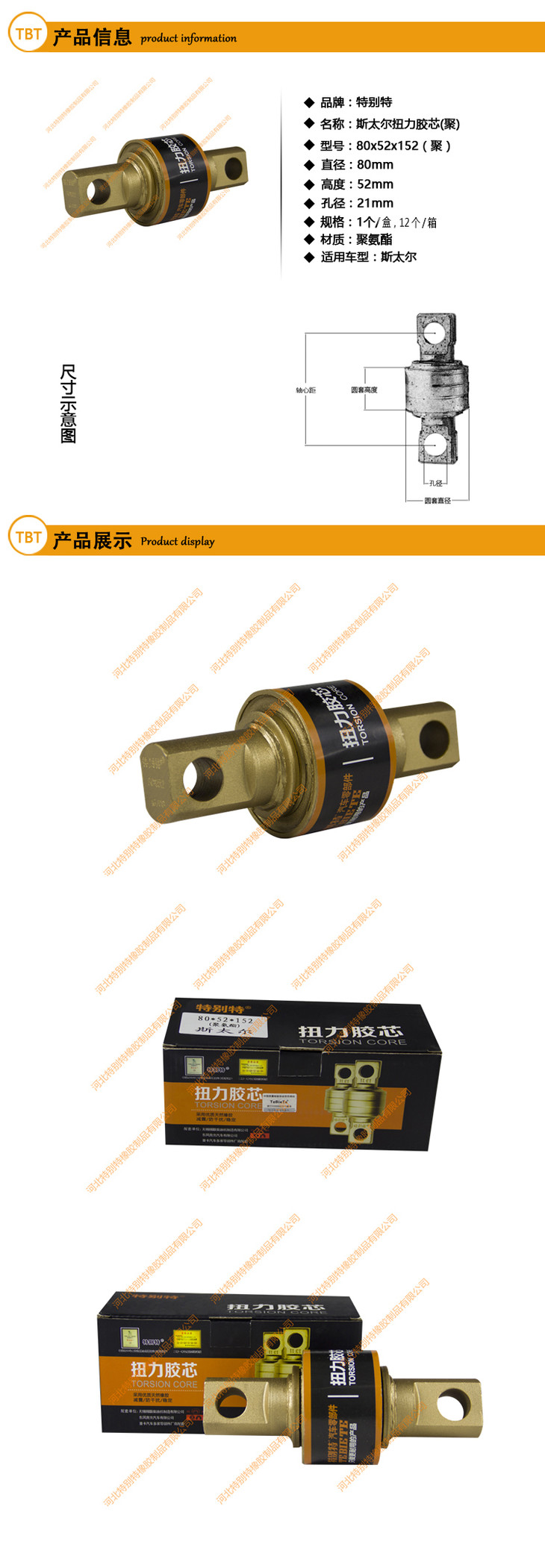 | 斯太尔扭力胶芯80*52*152(聚)/斯太尔拉臂套/斯太尔拉力套80x52x152(8052152)(单价=1个,12个=1箱) |