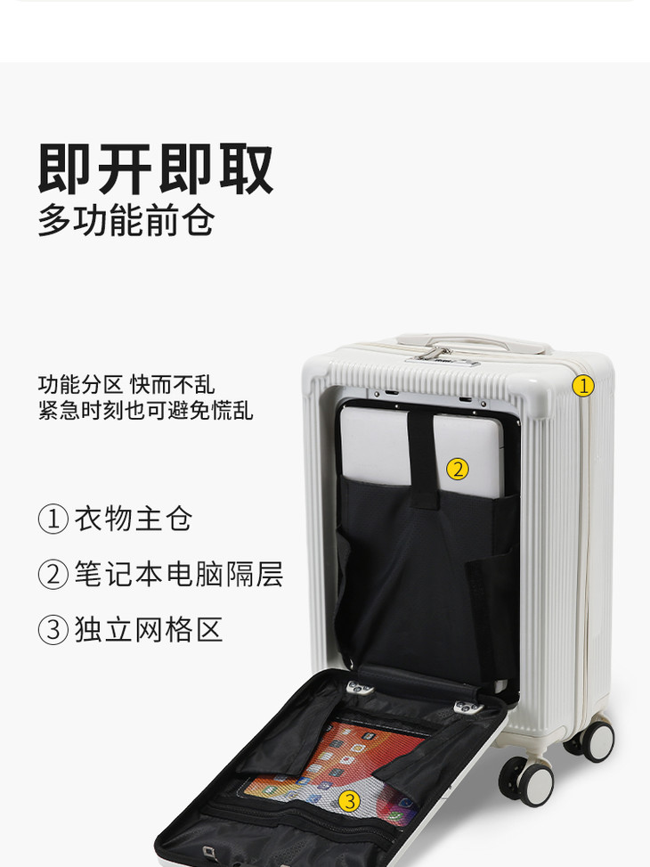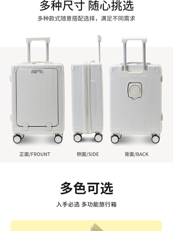 蕉众Banana travel青春简约多功能前开盖拉杆箱L-WES506 可托运行李箱包 简约旅行箱登机箱子耐用结实