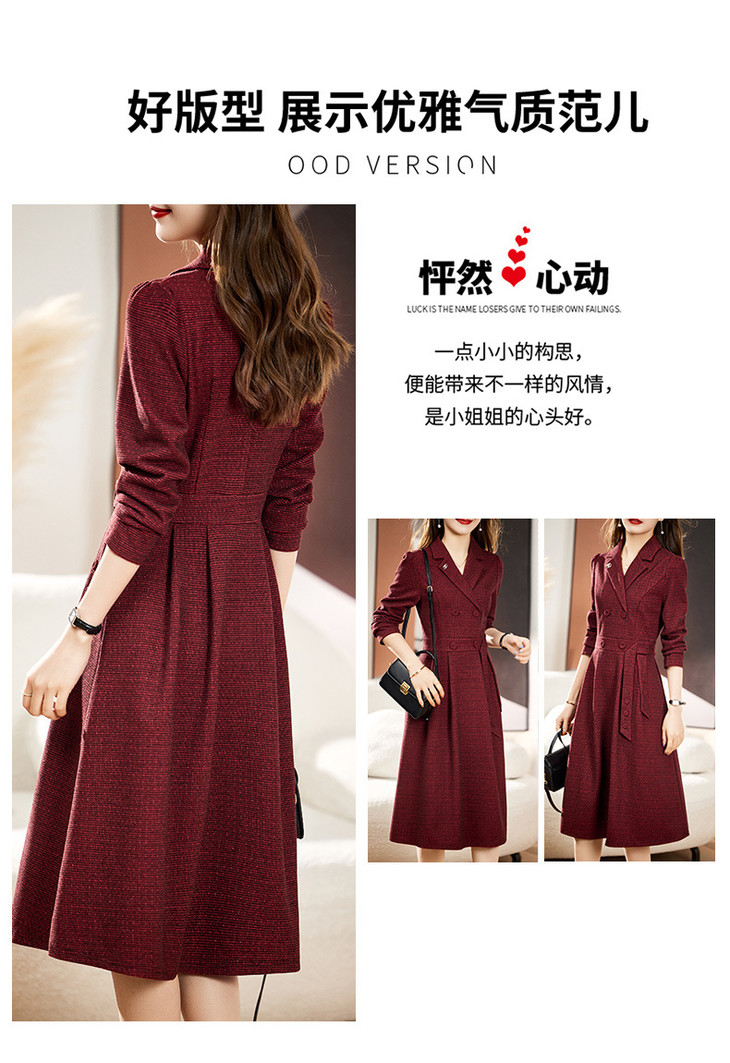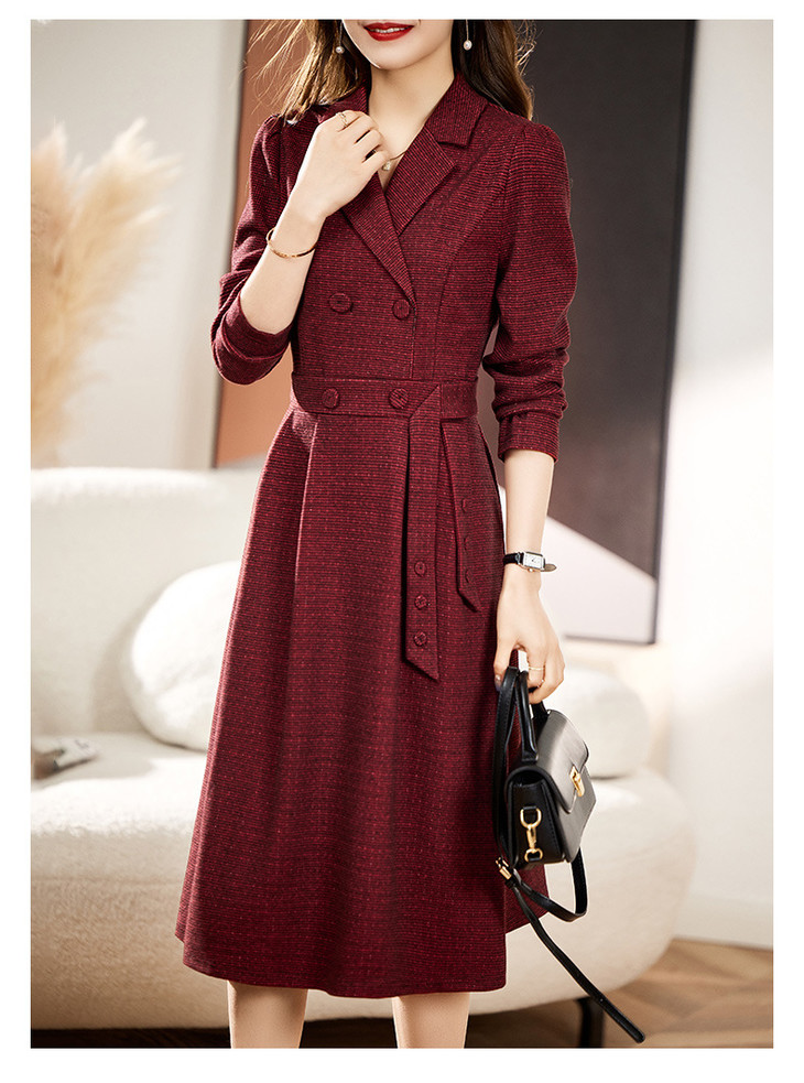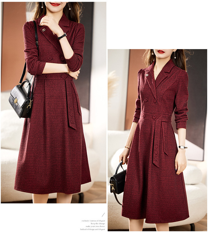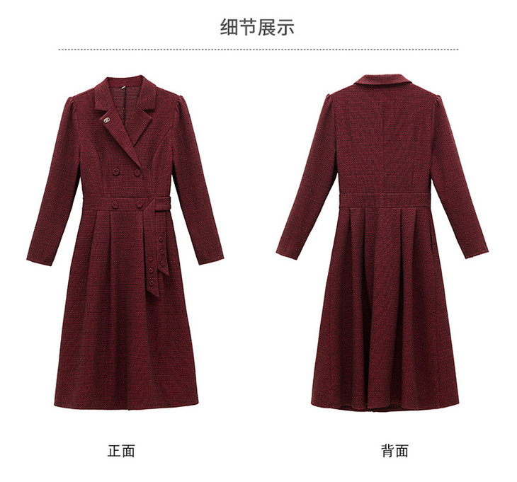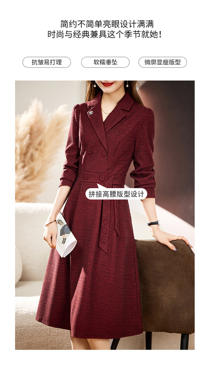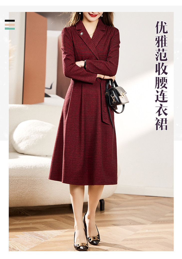 单件修身通勤简约西装领长袖中长款西装裙HR-WA23029