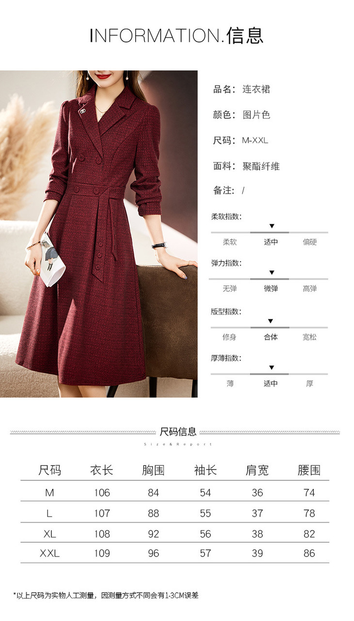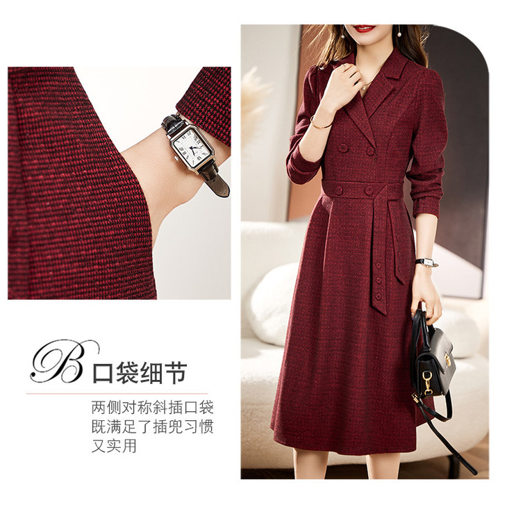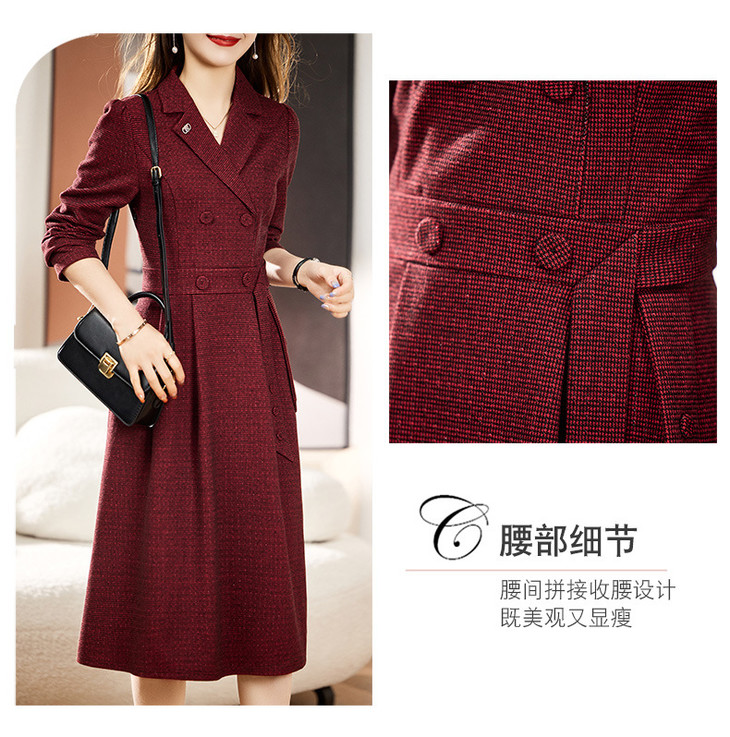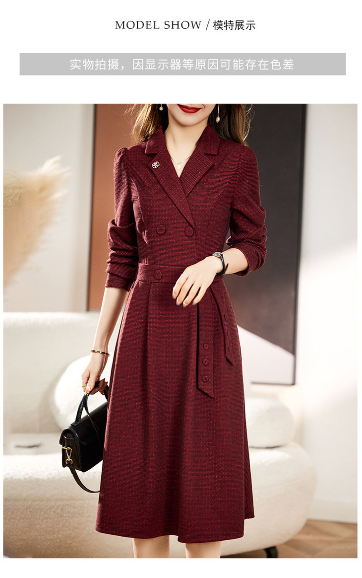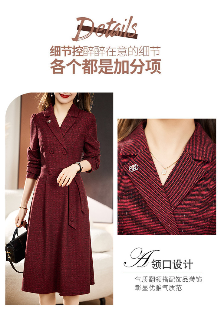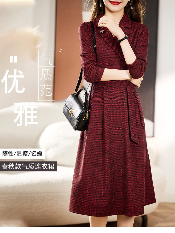 单件修身通勤简约西装领长袖中长款西装裙HR-WA23029