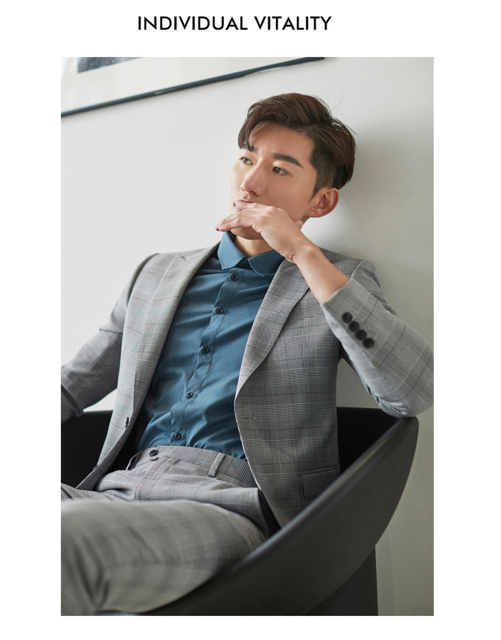 贝纳川男装春季格纹西装修身男士外套100025031118