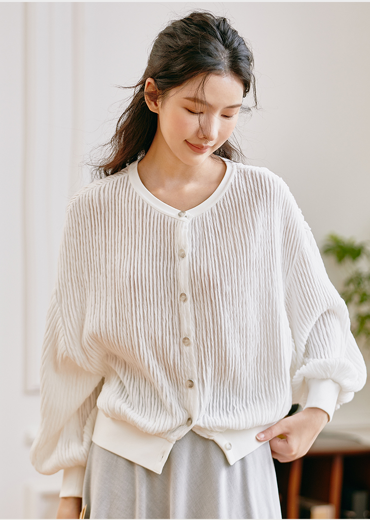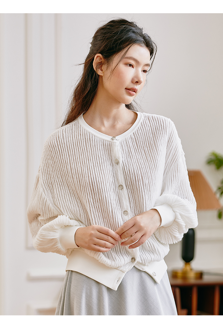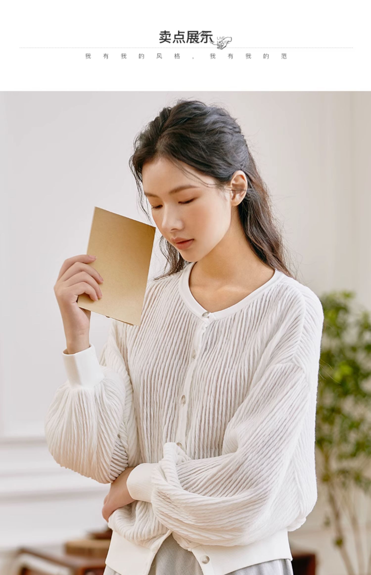 famecoco范可儿短款针织开衫女士秋款长袖圆领落肩宽松毛衫上衣D221DA300