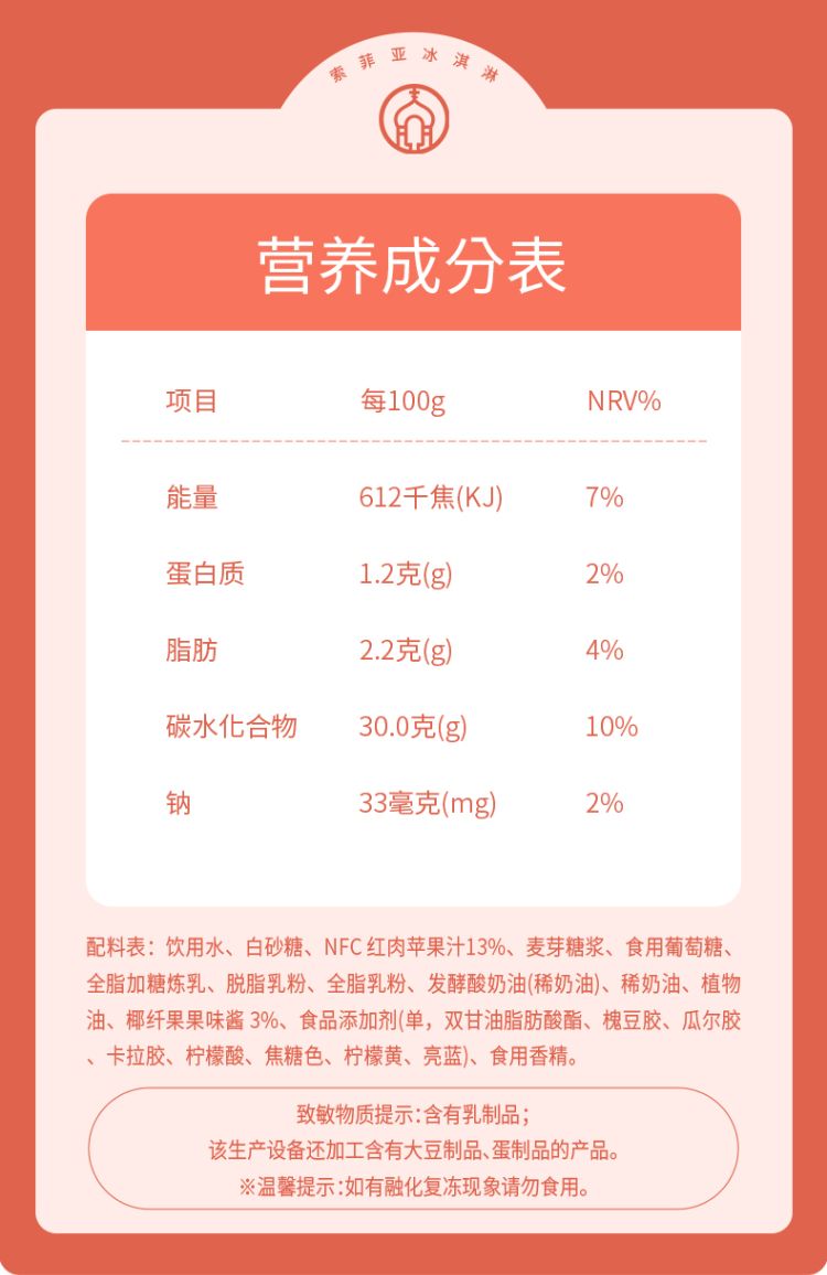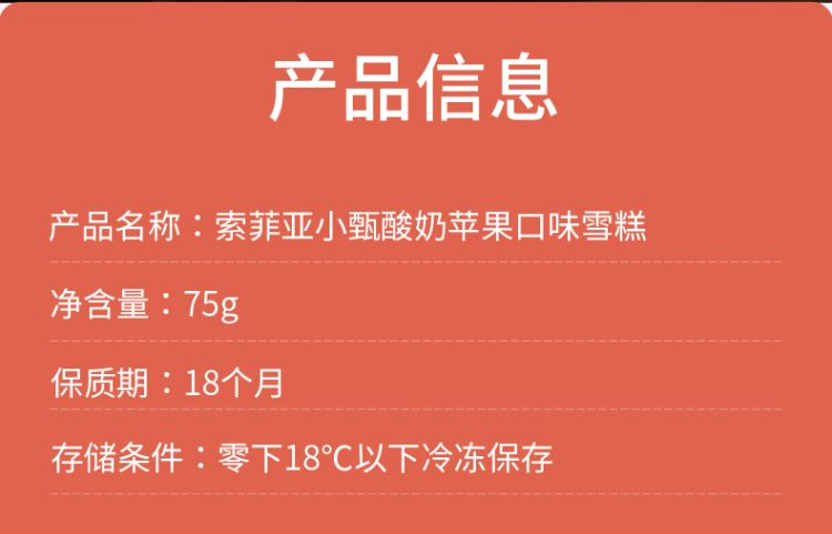 索菲亚小甄酸奶苹果口味雪糕75g/支