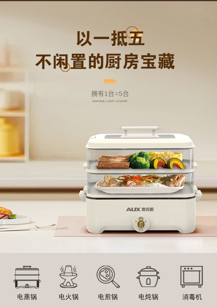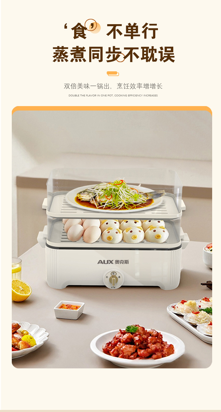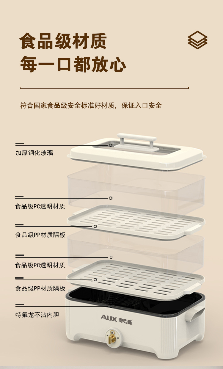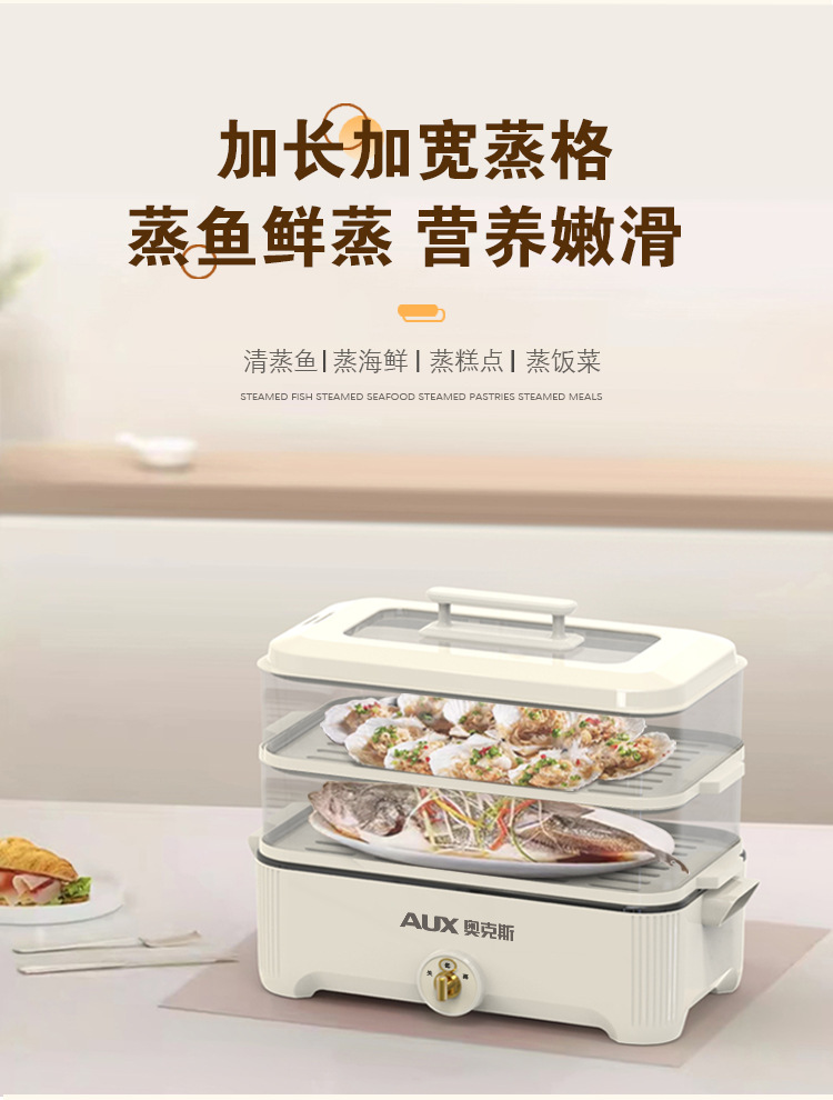 【可蒸可火锅❗️双层大容量】AUX-奥克斯电蒸火锅家用多功能电火锅5L大容量透明三层电蒸锅。jc