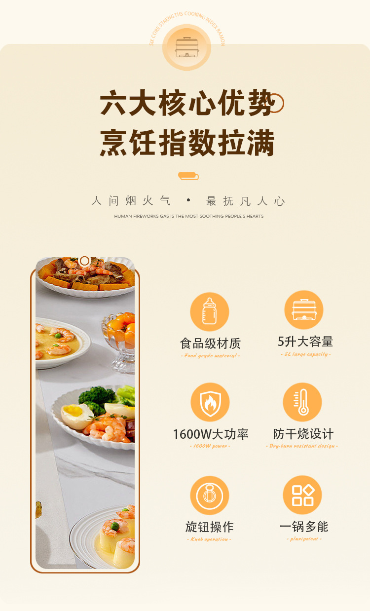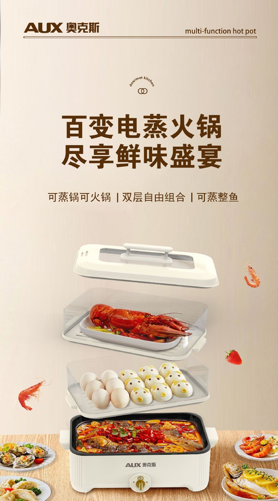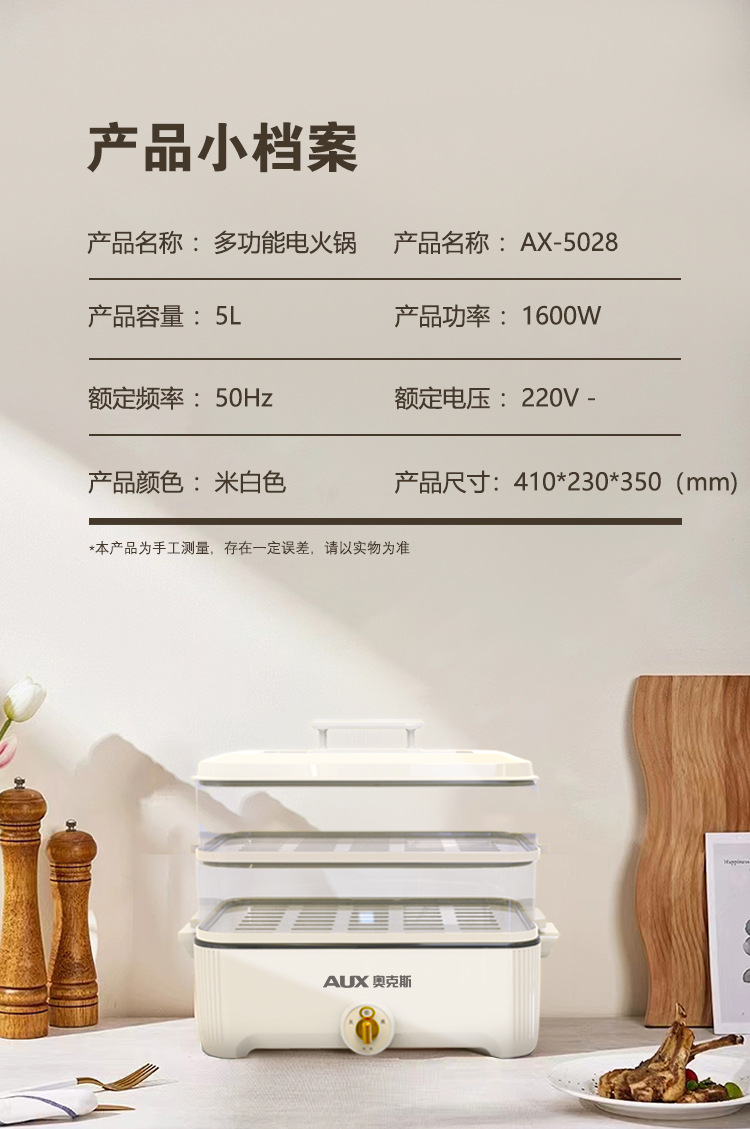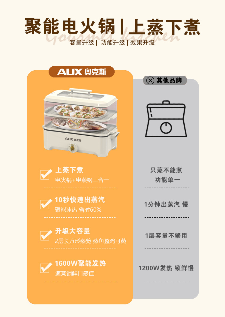 【可蒸可火锅❗️双层大容量】AUX-奥克斯电蒸火锅家用多功能电火锅5L大容量透明三层电蒸锅。jc