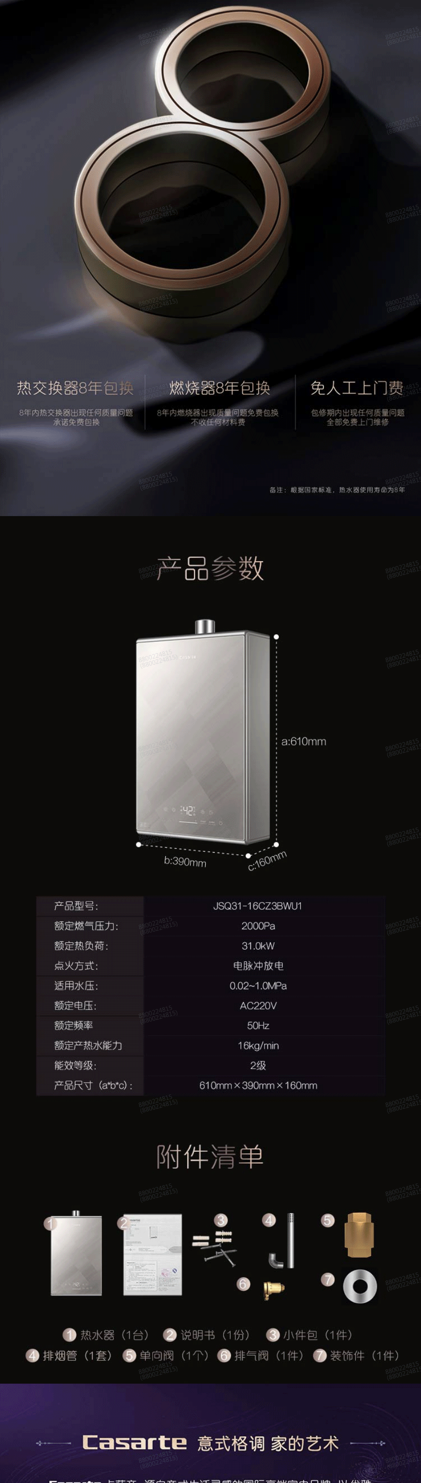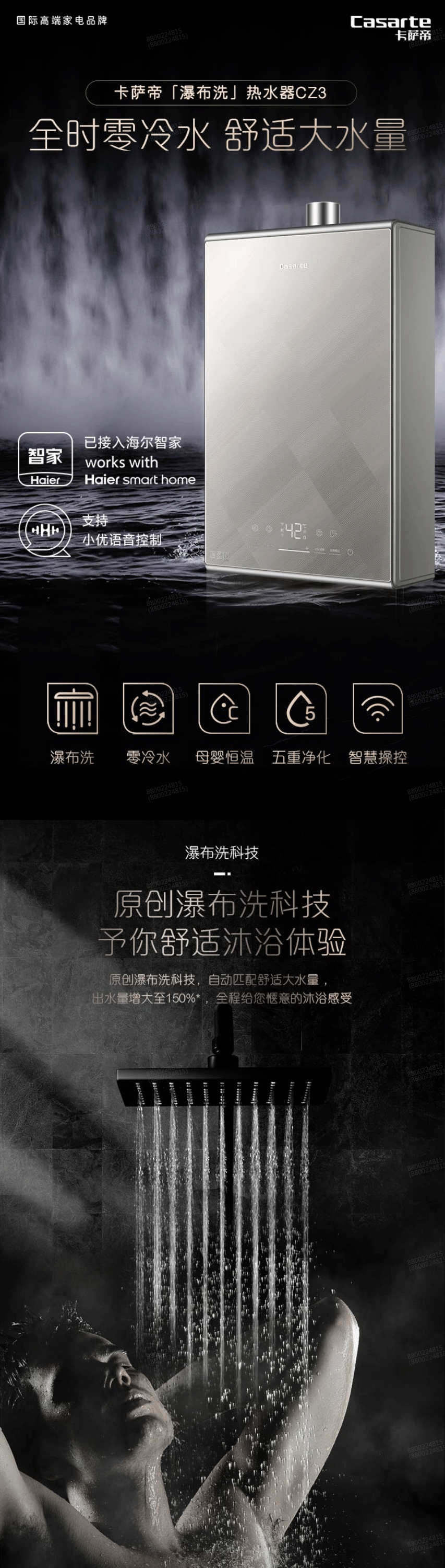 卡萨帝 16升 燃气热水器 全时零冷水 母婴恒温 五重净化 智慧WIFI语音操控 JSQ31-16CZ3BWU1天然气