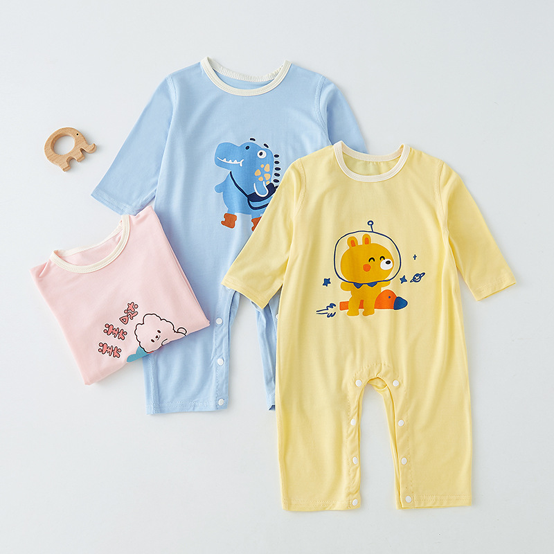 夏季薄款长袖宝宝莫代尔哈衣空调服夏装新生儿衣服睡衣