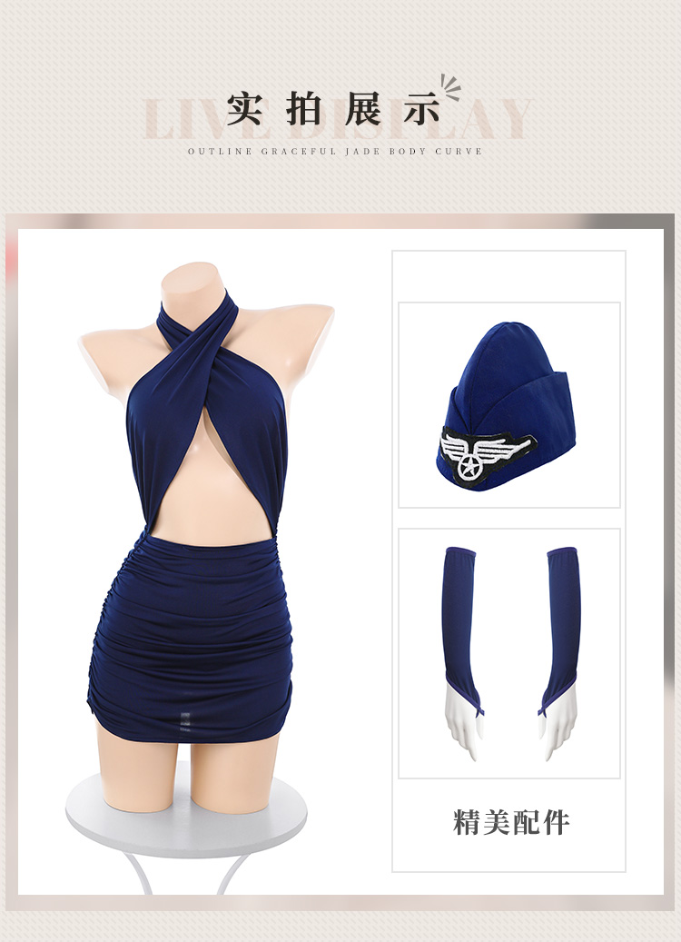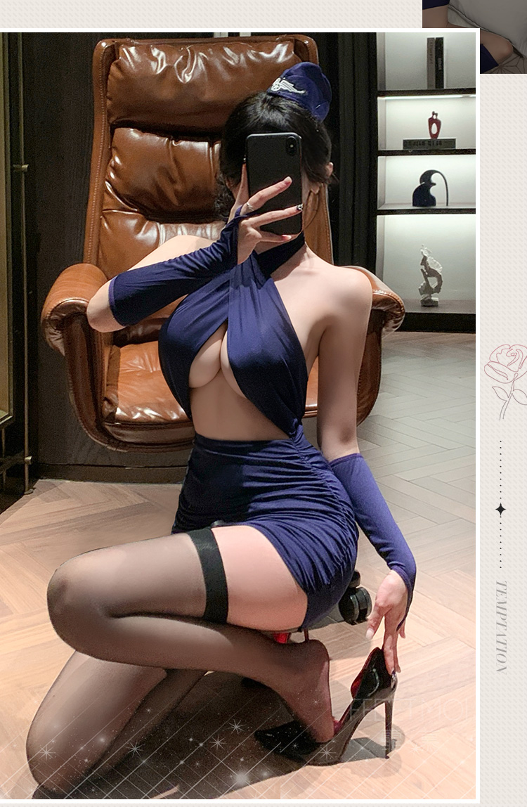 霏慕 交叉裹胸包臀燃情空姐装6406 情趣内衣制服诱惑黑丝性感