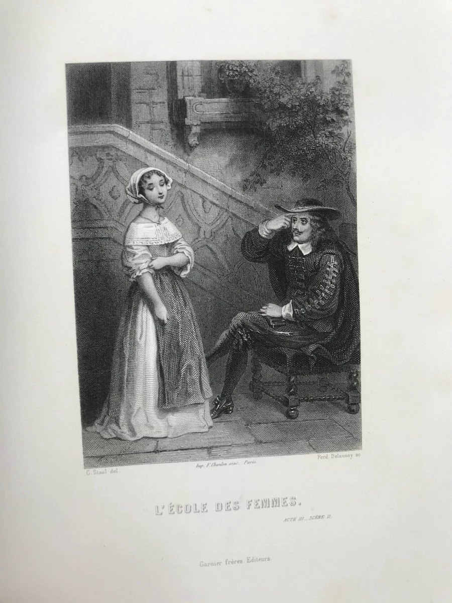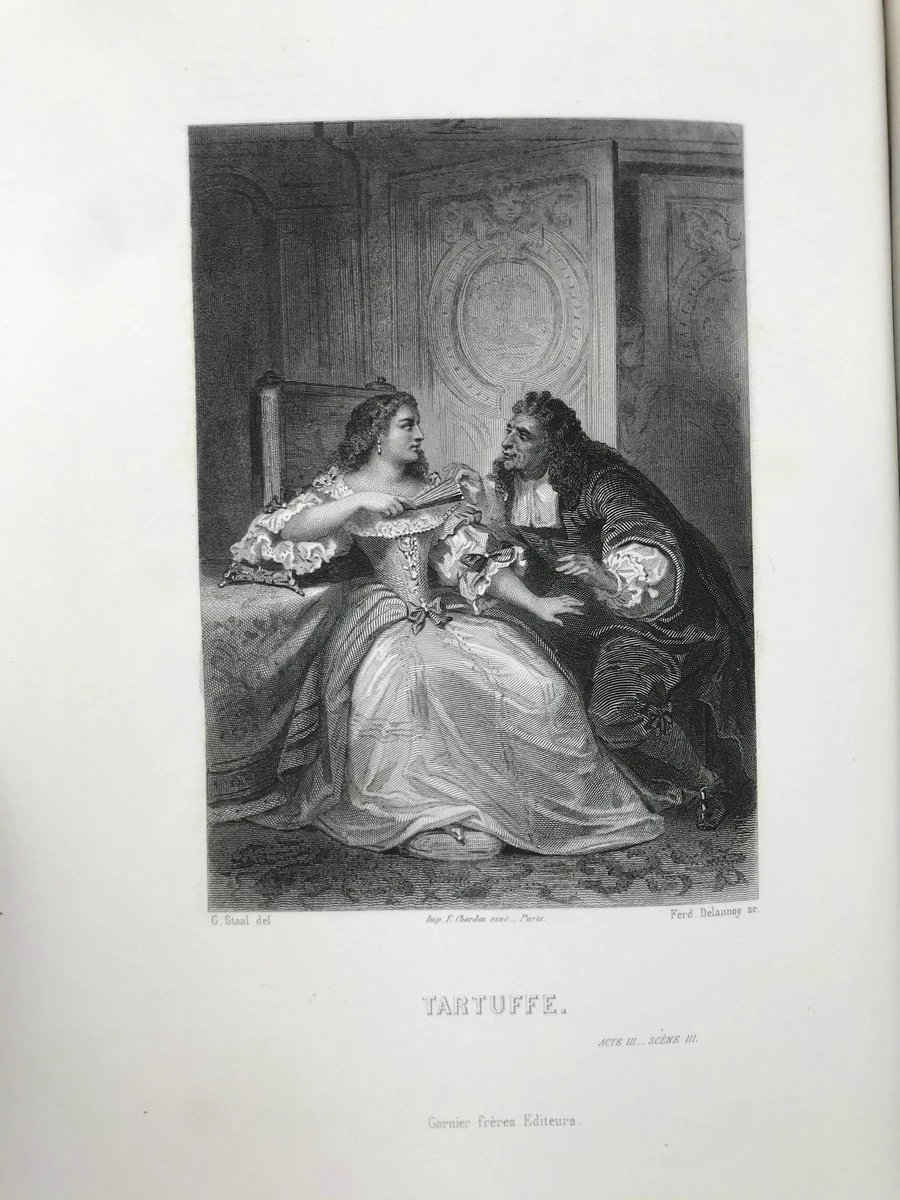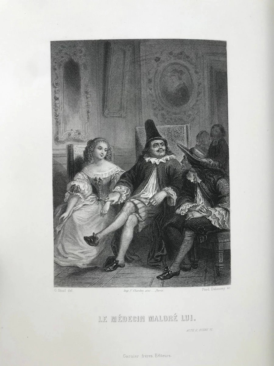 【法语】1869年 莫里哀作品全集 约10幅插图 真皮精装16开