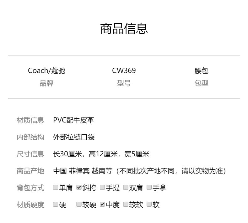 COACH 奥莱款男士PVC配皮斜挎腰包CW369QBMI5