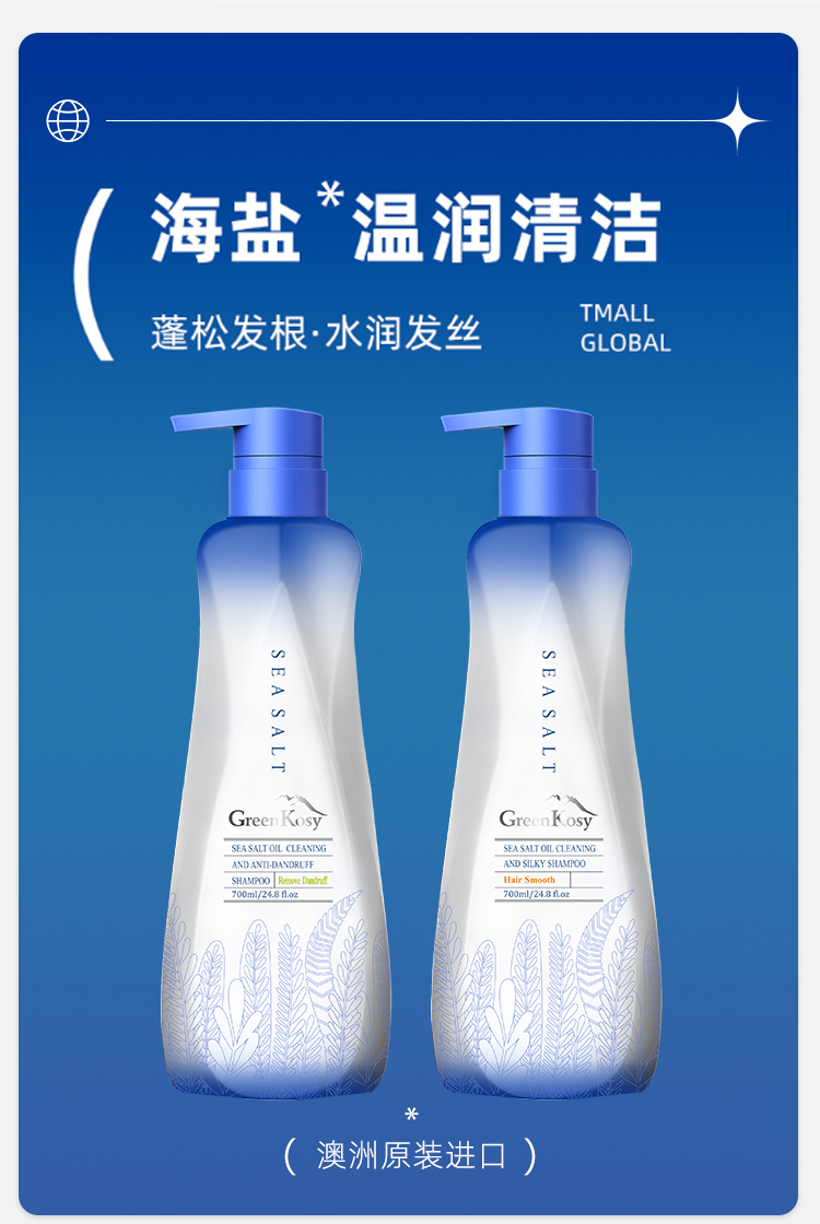 绿色溪谷海盐净油去屑/净油丝滑洗发水控油蓬松洗发乳700ml大瓶装