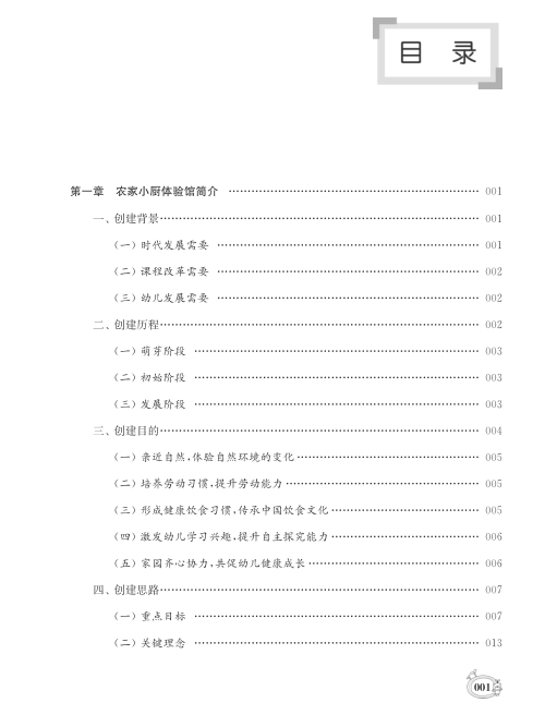 幼儿园农家小厨体验馆是立足于幼儿园丰富的农场种植资源,开展幼儿厨房体验活动的场所。作为“幼儿园共用活动室研究丛书”中的一本,《幼儿园农家小厨体验馆》是践行陈鹤琴先生“活教育”思想的教育实践成果之一,书稿内容丰富,主要叙述了农家小厨体验馆创建的意义与价值以及农场和农家小厨体验馆之间的联系,介绍了农家小厨体验馆的环境、材料等设施设备的投放、教师设计各年段幼儿体验活动的内容,以及儿童获得的经验,梳理了体验馆的具体运行策略和方法,并对农家小厨体验馆活动进行了客观的评价。书中的活动案例富有生活性、游戏性、操作性、科学性、可持续性,从幼儿需求出发,让儿童亲历与厨房饮食相关的实际体验过程,满足了幼儿想做事的愿望,发展了幼儿多方面的能力,与此同时,本书可为幼师在幼儿园的日常活动提供很好的实践参考指导。