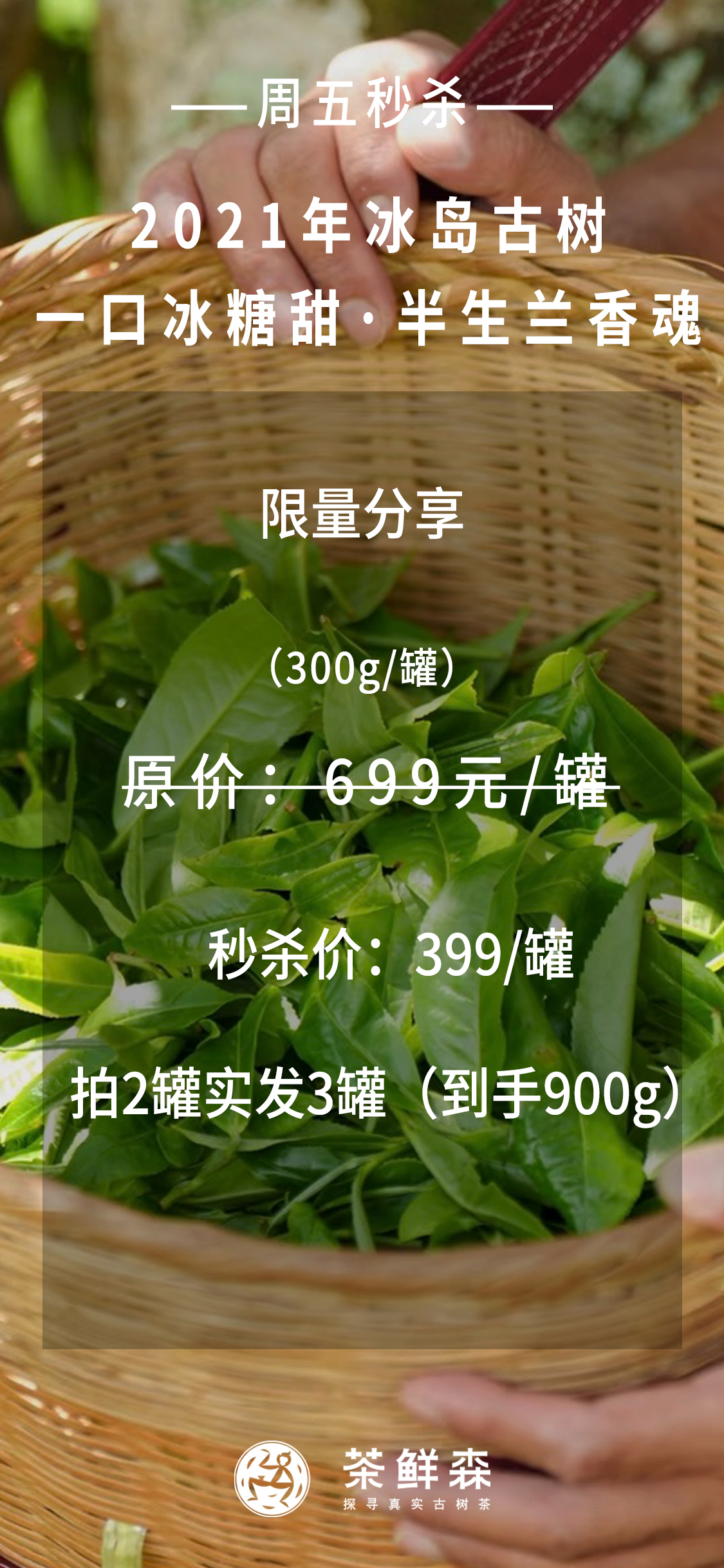 周五秒杀/ 2021年冰岛古树散茶 一口冰糖甜 半生兰香魂 300克/罐 拍2罐直接发3罐 (数量有限)