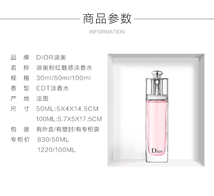 【中欧班列精选】 Dior迪奥Addict粉红魅惑淡香水50 100ML 1LPY